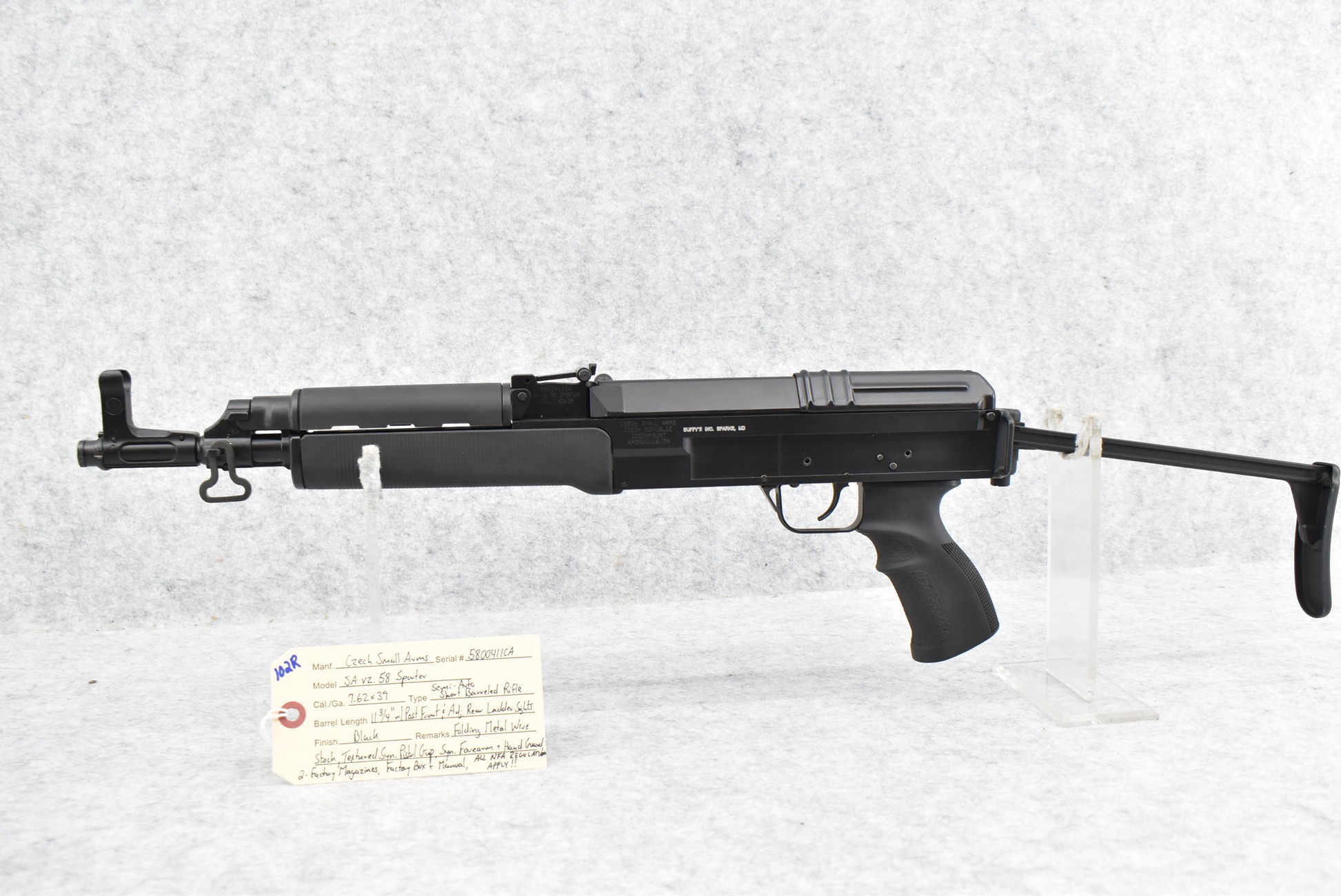 102R. Czech Small Arms – Mod. SA VZ.58 Sporter – 7.62×39 Cal. Semi-Auto Short Barreled Rifle (SBR) – w/11 ¾” Barrel w/Post Front & Adj. Rear Ladder Sights – Matte Black Finish – w/Folding Metal Wire Stock, Textured Synthetic Pistol Grip, Synthetic Forearm & Hand Guard – w/2 Factory Magazines – w/Factory Box & Manual – Gun is on RAS Inc. NFA Book E-File Form 3 & Form 4 – Fully Transferable Please Check Your State & Local Laws For Legality Before Attempting to Purchase This Firearm!