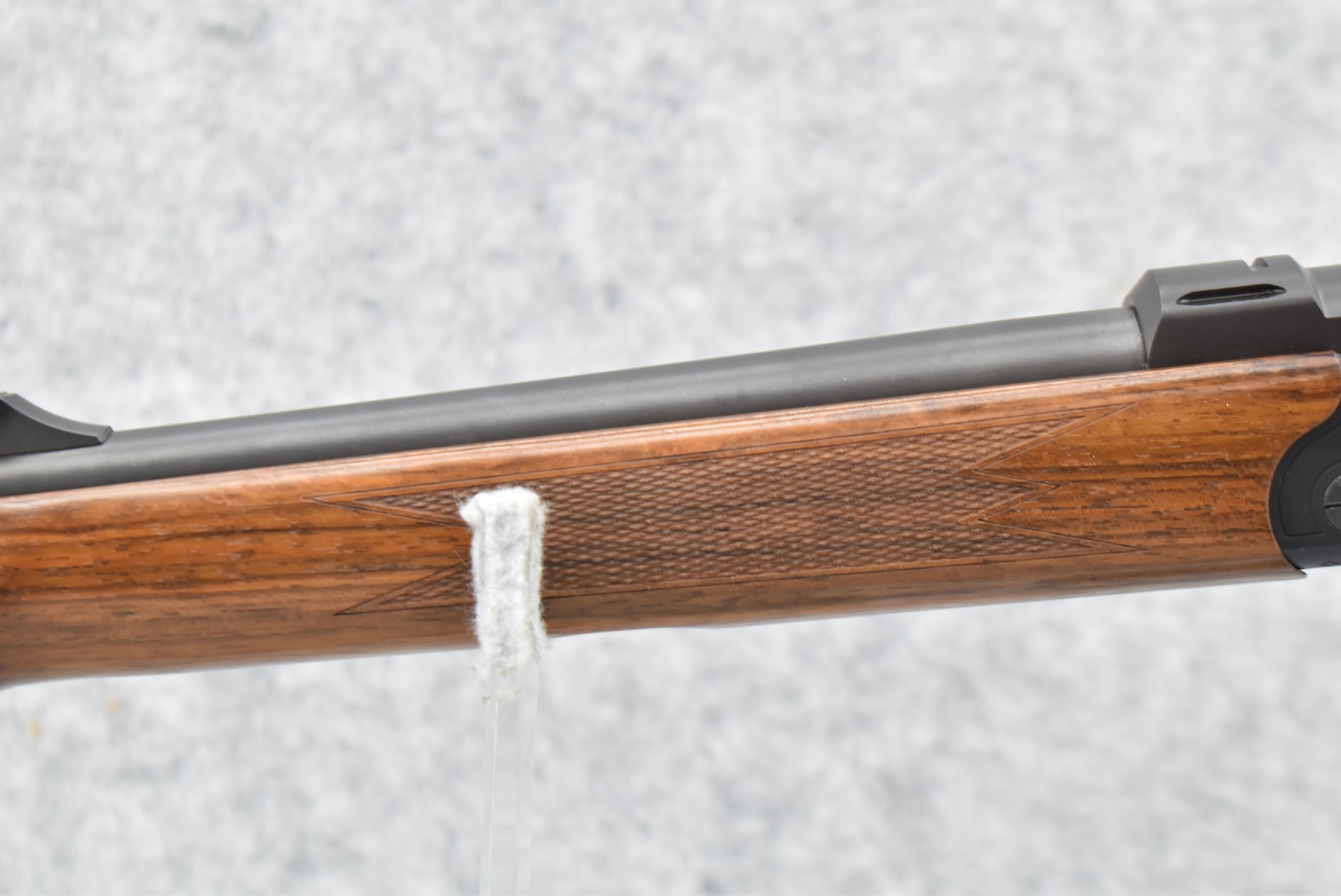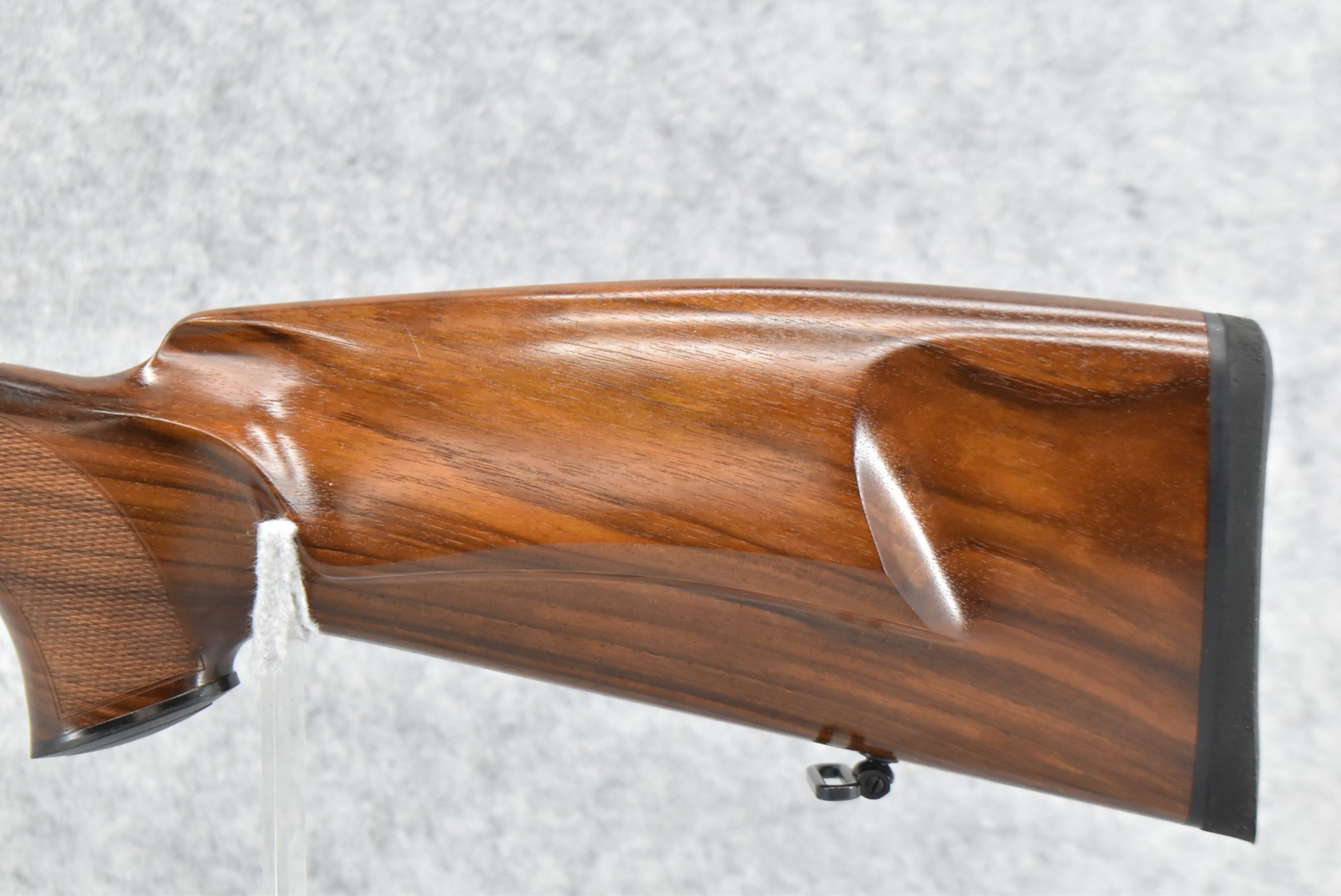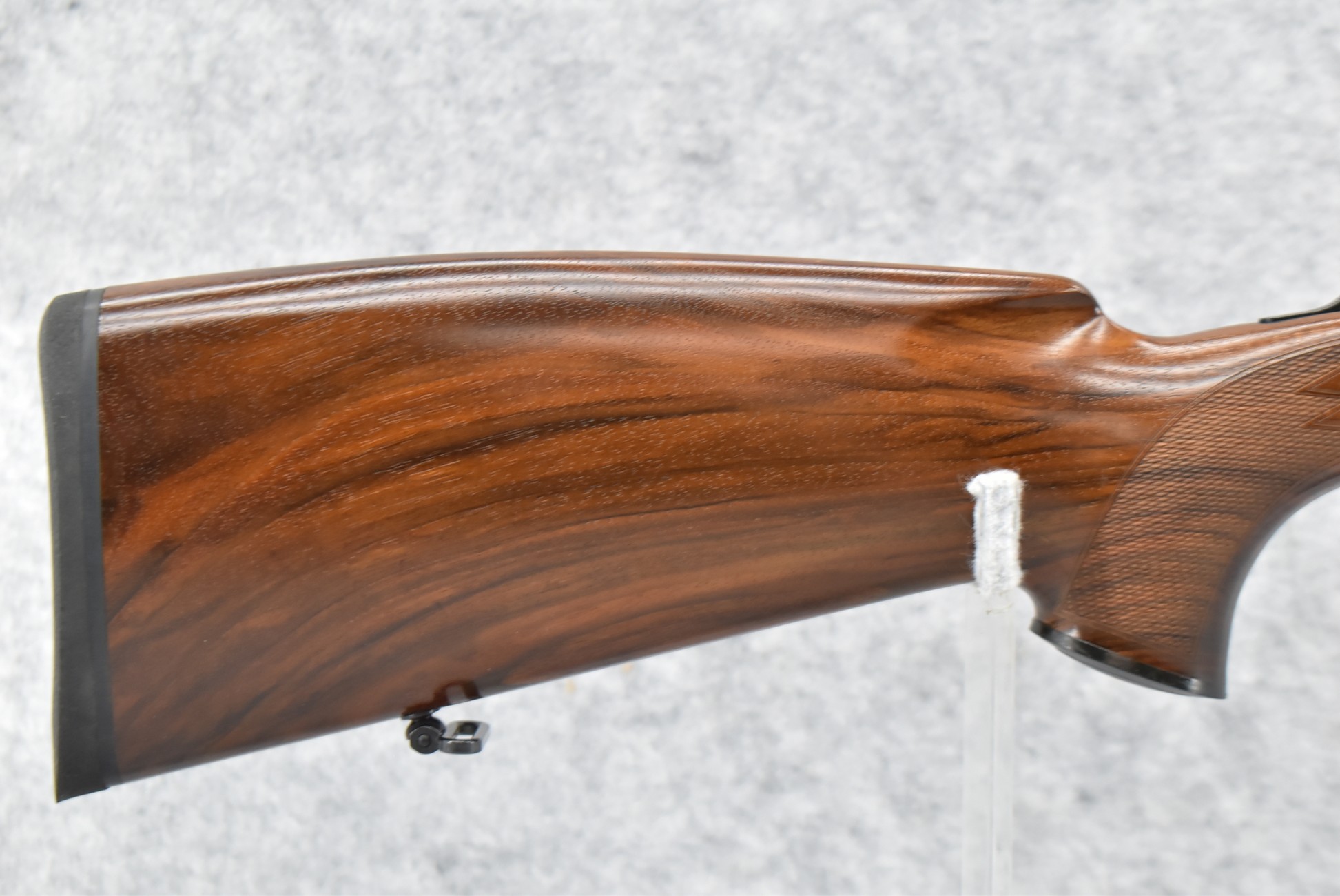 102R. Merkel – Mod. KLB-K3 – 7mm-08 Rem. Cal. Single Shot Rifle – w/19 ¾” Barrel w/Factory Fiber Optic Sights – Satin Blued Finish – w/Deluxe Checkered Capped Pistol Grip Wood Stock w/Raised Cheek Piece w/Butt Pad & Full Length Mannlicher Forend – w/Sling Loops – Unfired w/Factory Box, Manuals & Scope Rings