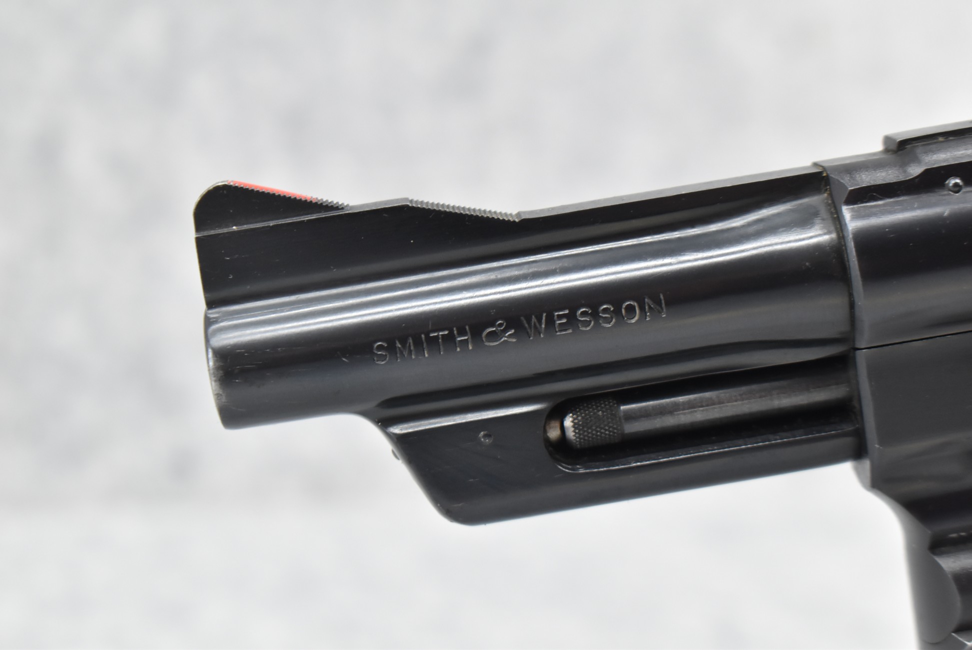 102R. Smith & Wesson – Mod. 28 Highway Patrolman – 357 Mag. Cal. Double Action Revolver – w/4” Barrel w/Blade Front and Adjustable Rear Sights – Blued Finish – w/Checkered Diamond Wood Target Grips