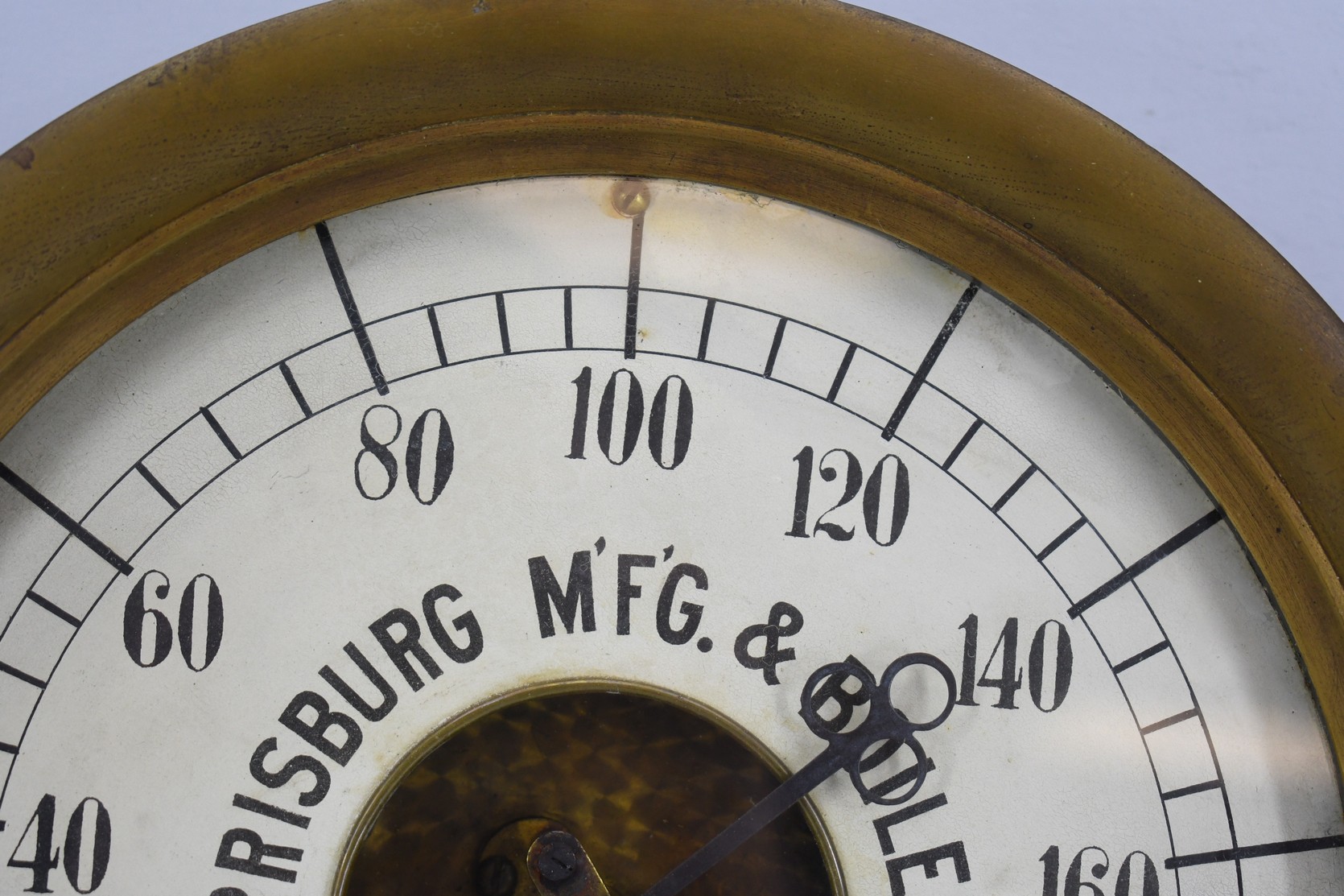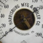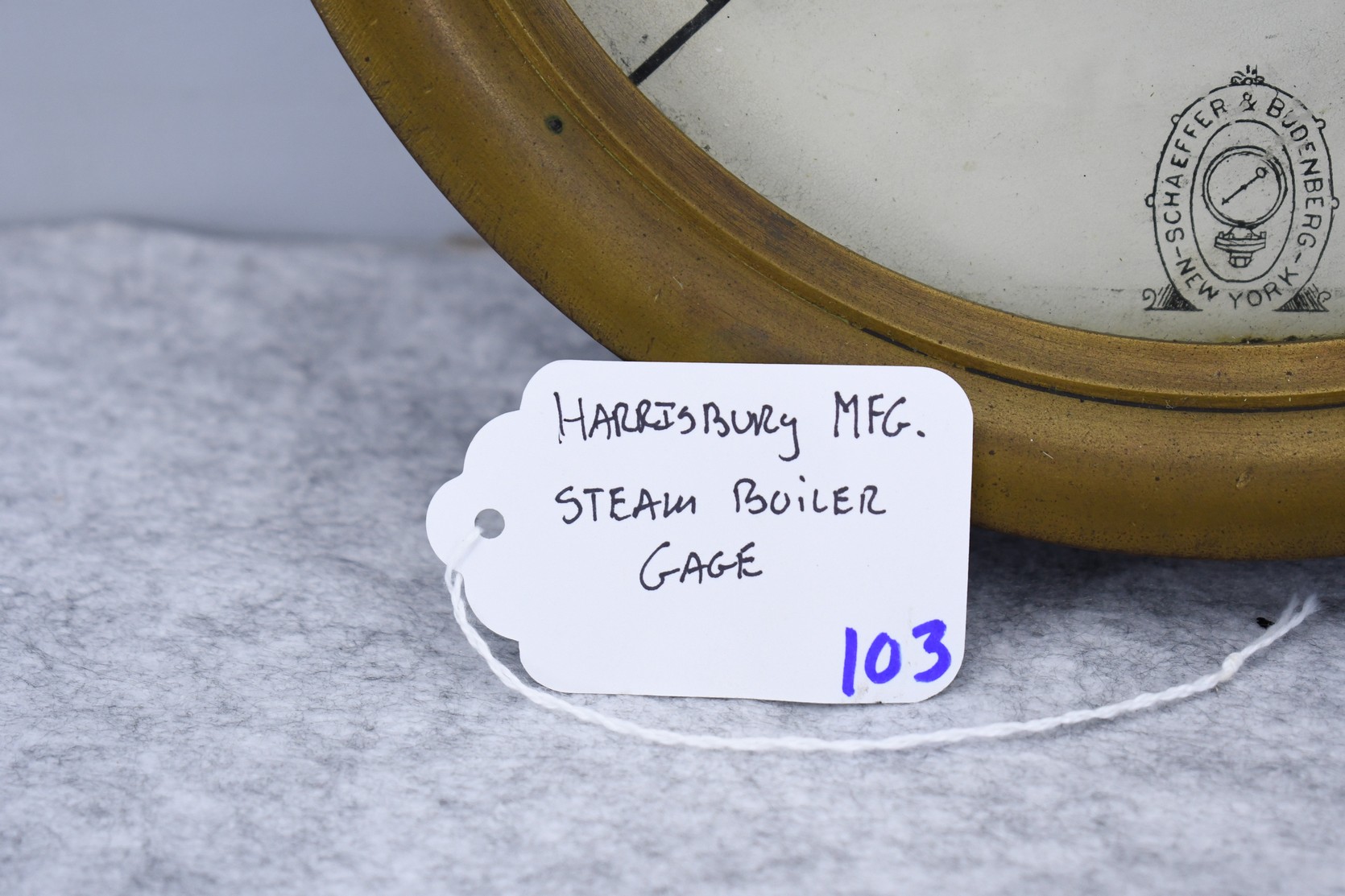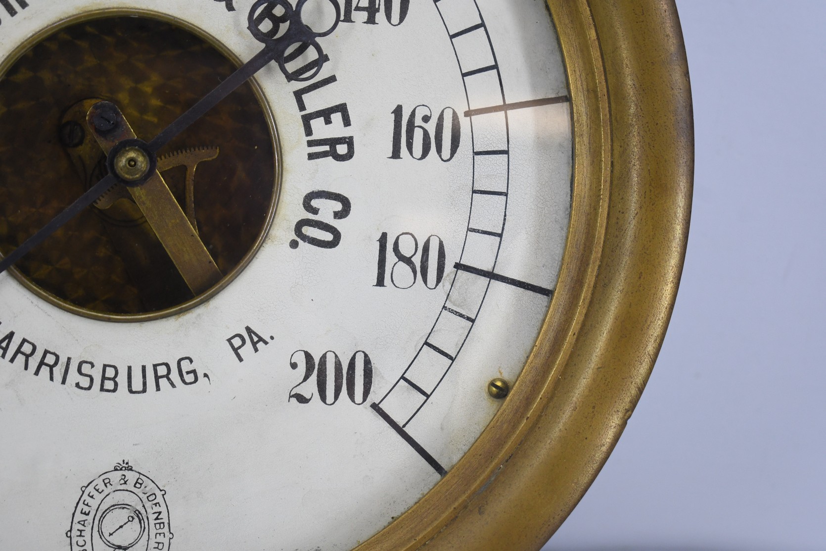 103. Harrisburg Manufacturing & Boiler Co. Harrisburg, PA Boiler Steam Pressure Gauge – Gauge has Brass Works and Brass Face – Gauge goes Up to 200LB – Gauge is Very Heavy