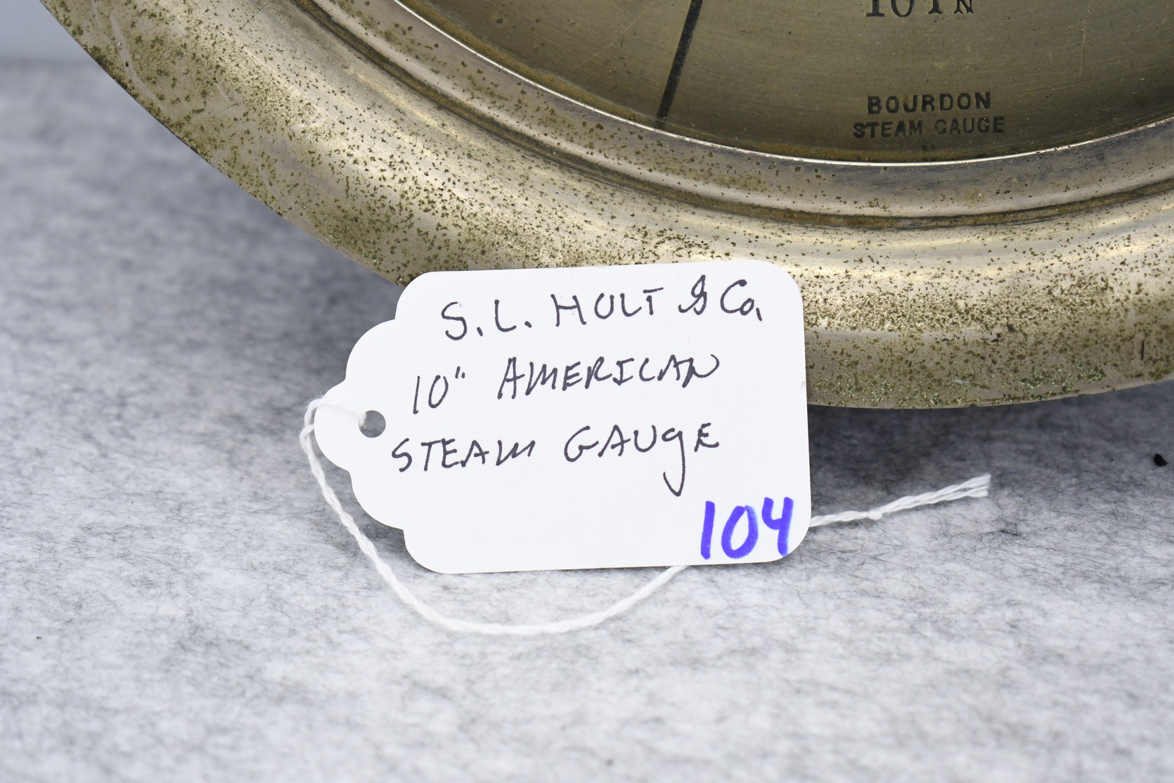 104. S.L. Holt & Co. Boston American Bourdon Steam Gauge Co. – 10” Gauge Up to 30LB – Item is Extremely Heavy