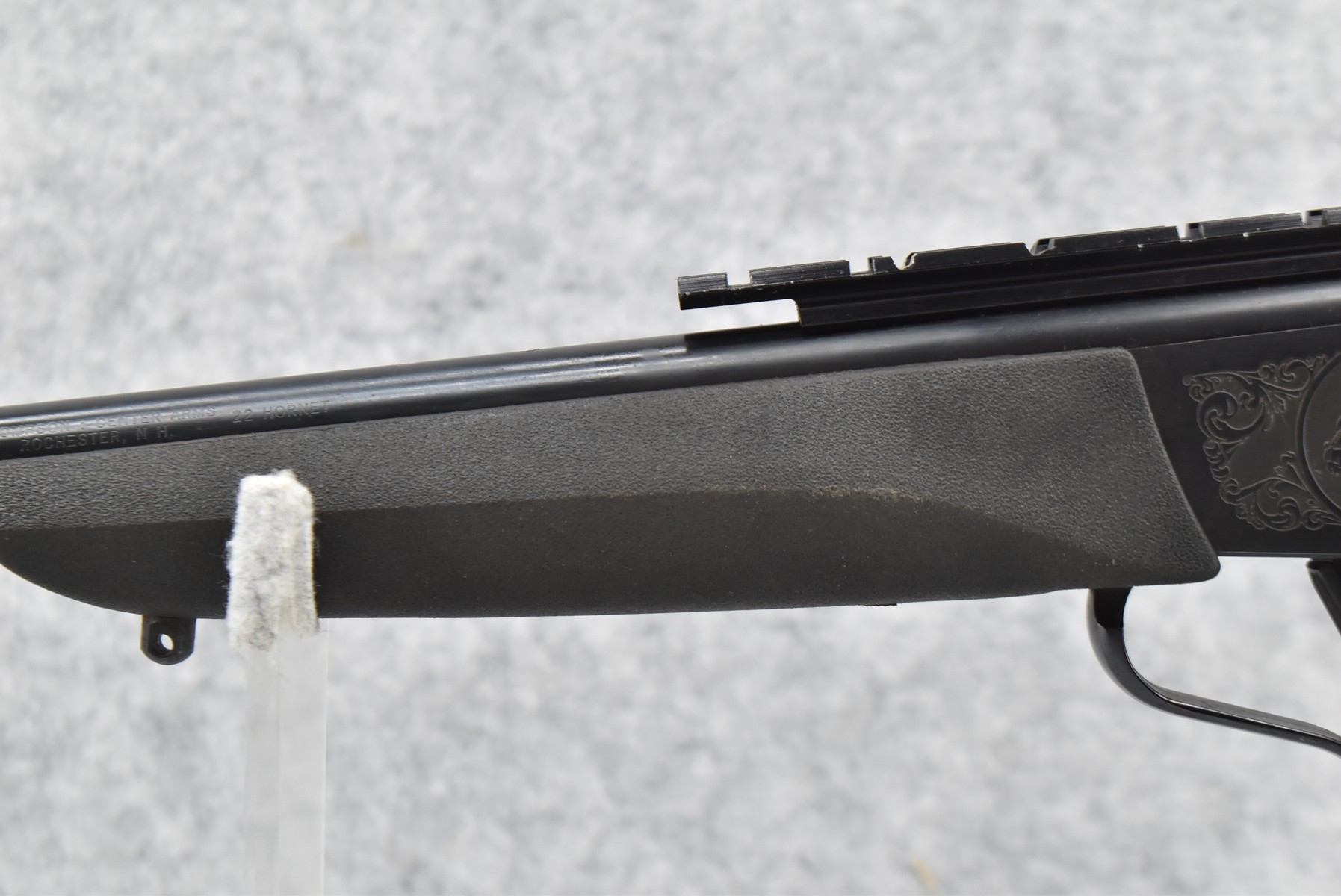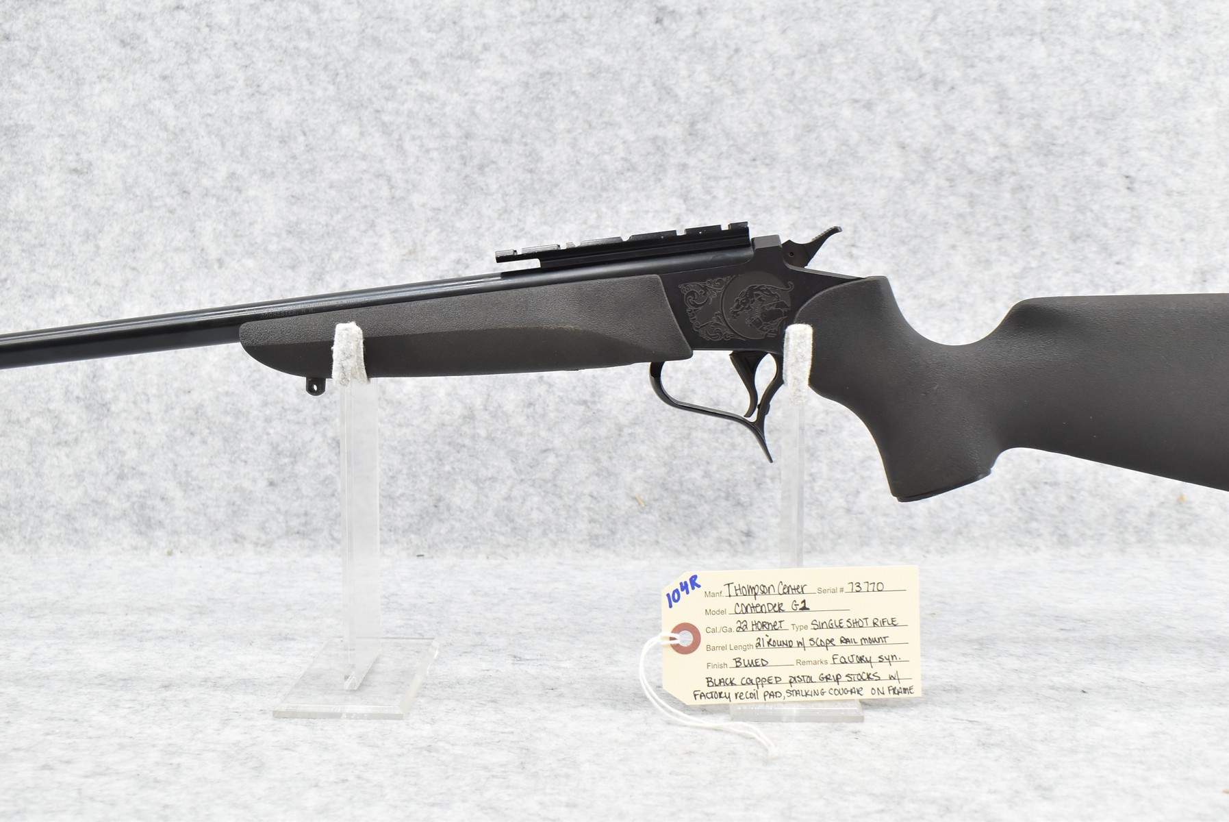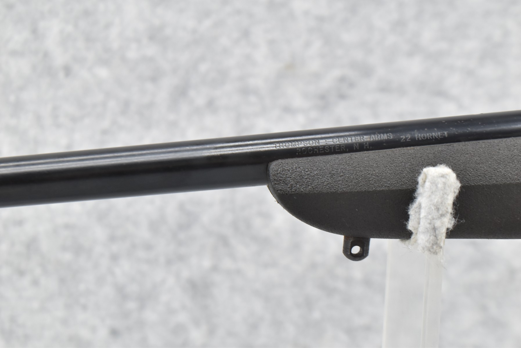 104R. Thompson Center – Mod. Contender – 22 Hornet Cal. Single Shot Rifle – w/21” Round Barrel w/Scope Rail Mount – Blued Finish – w/Factory Synthetic Black Capped Pistol Grip Stocks w/Factory Recoil Pad