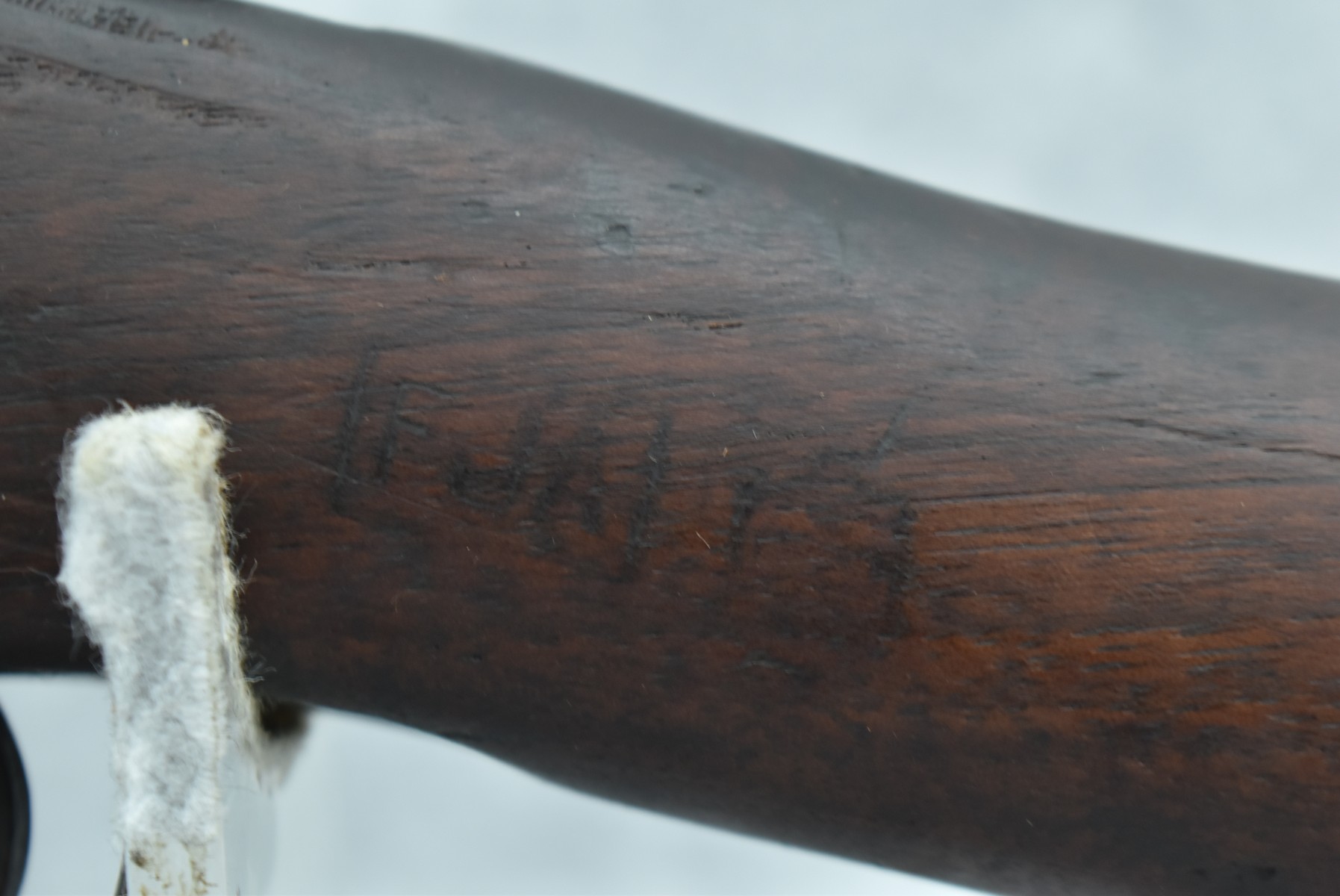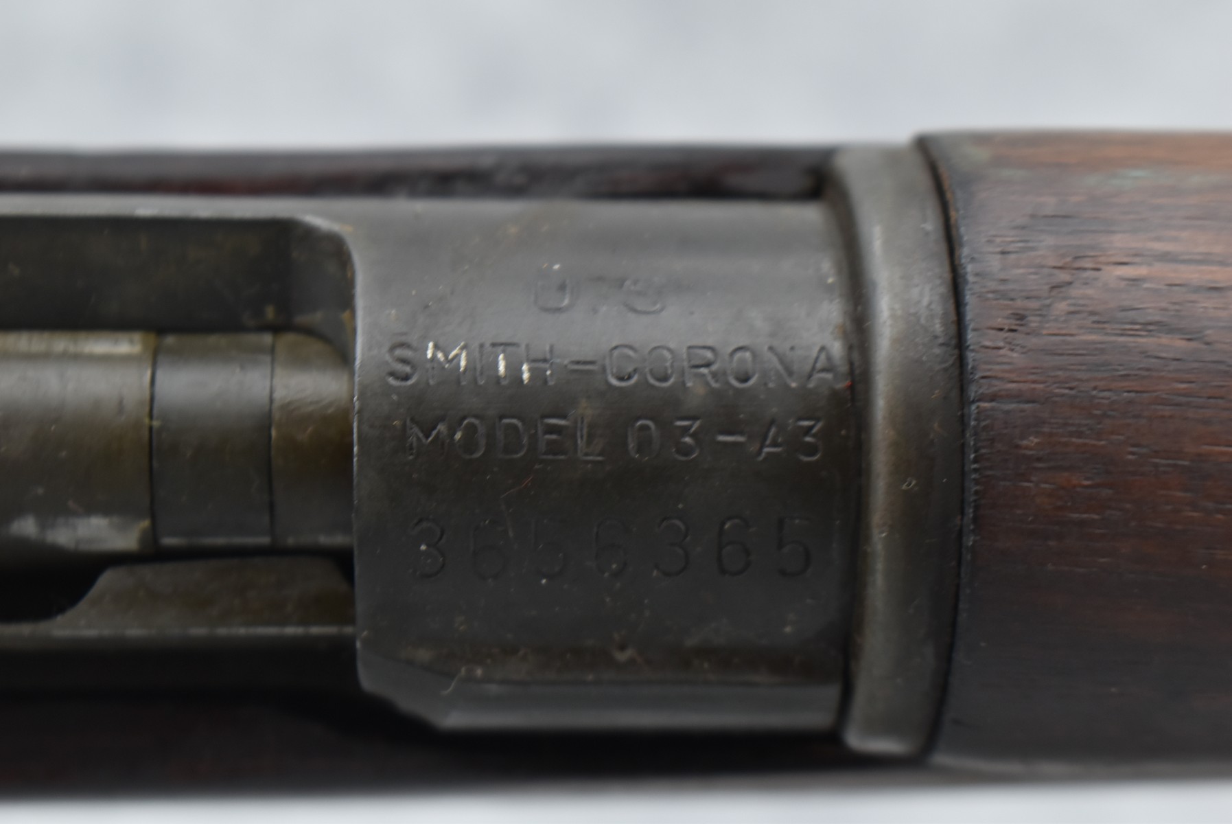 104R. U.S. Smith-Corona – Mod. 03-A3 – 30-06 Cal. Bolt Action Rifle – w/24” S-C 4-43 Dated Barrel w/Blade Front & Adj. Rear Peep Sights – Military Finish – w/Straight Grip Full Wood Military Stock w/Metal Butt Plate w/Trap Door – w/FJA & Crossed Cannons Stock Cartouches on Left Side of Stock – w/Military Sling