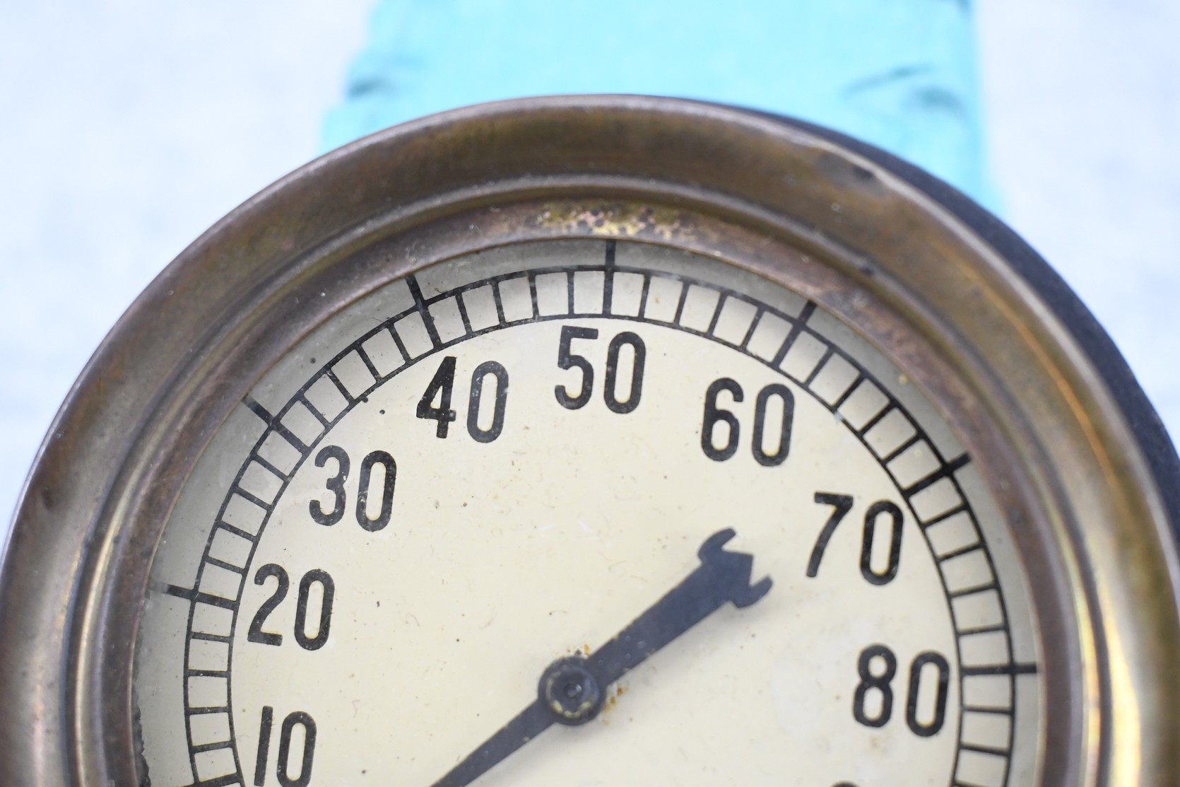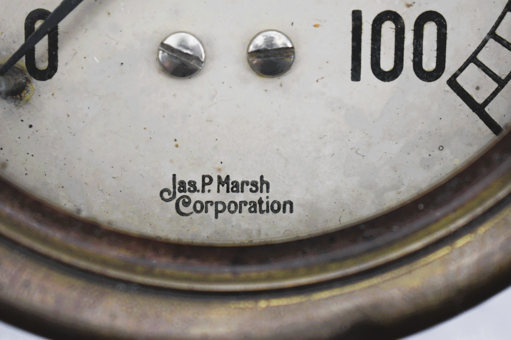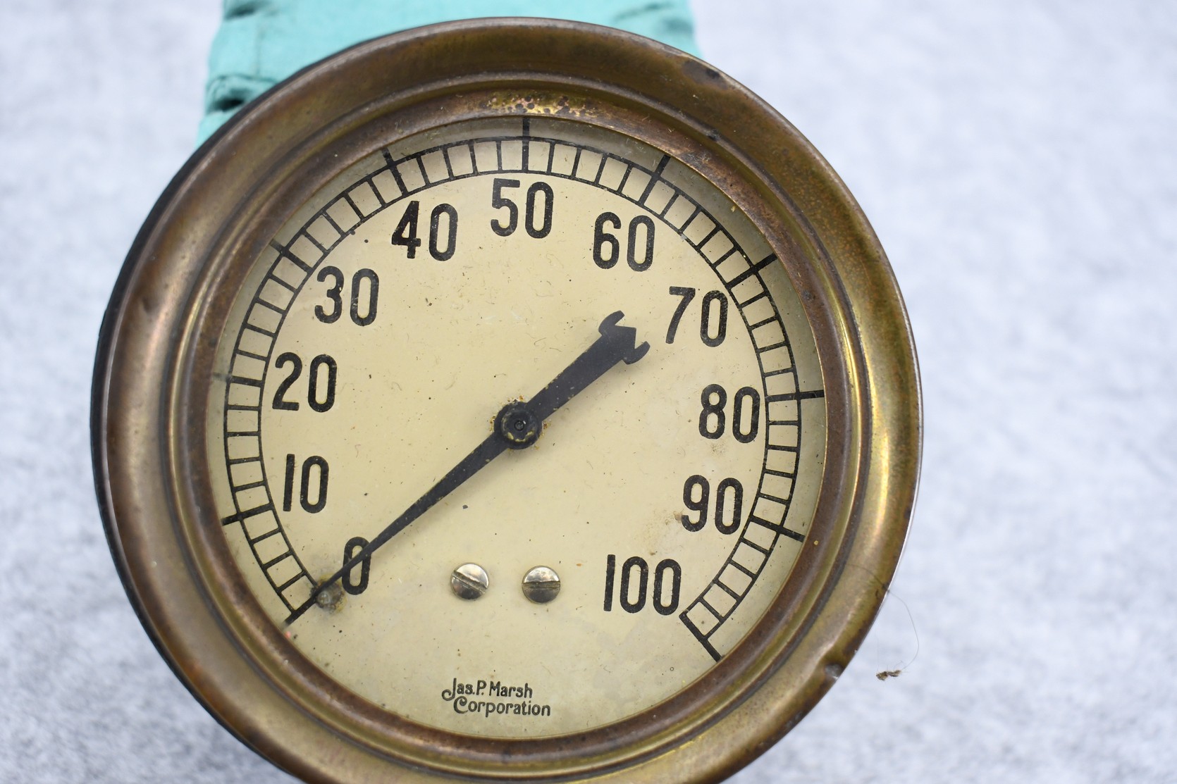 105. Jas. P. Marsh Corp. Brass Faced Pressure Gauge Pp to 100LB – Gauge is 4” Across the Brass Face
