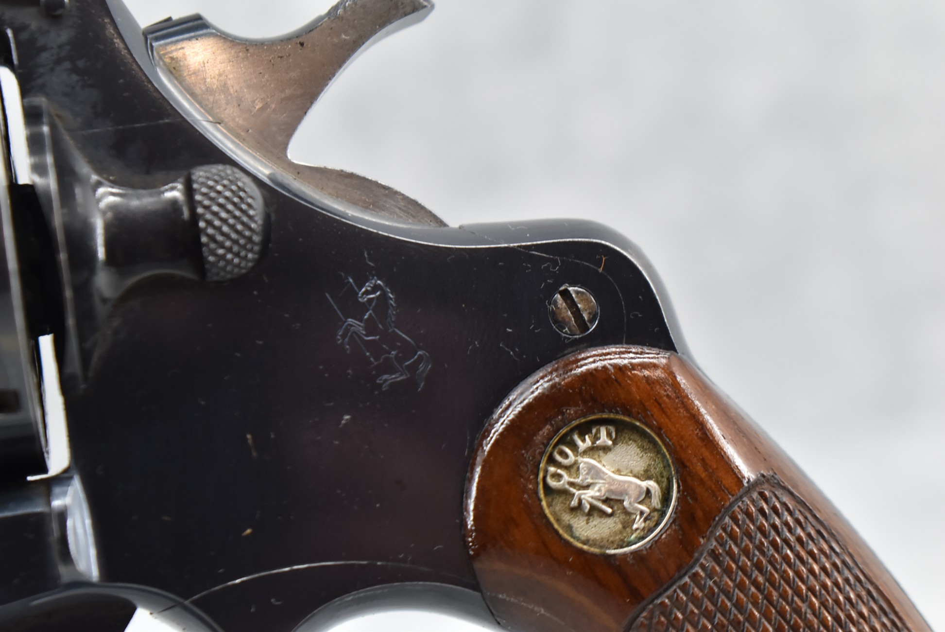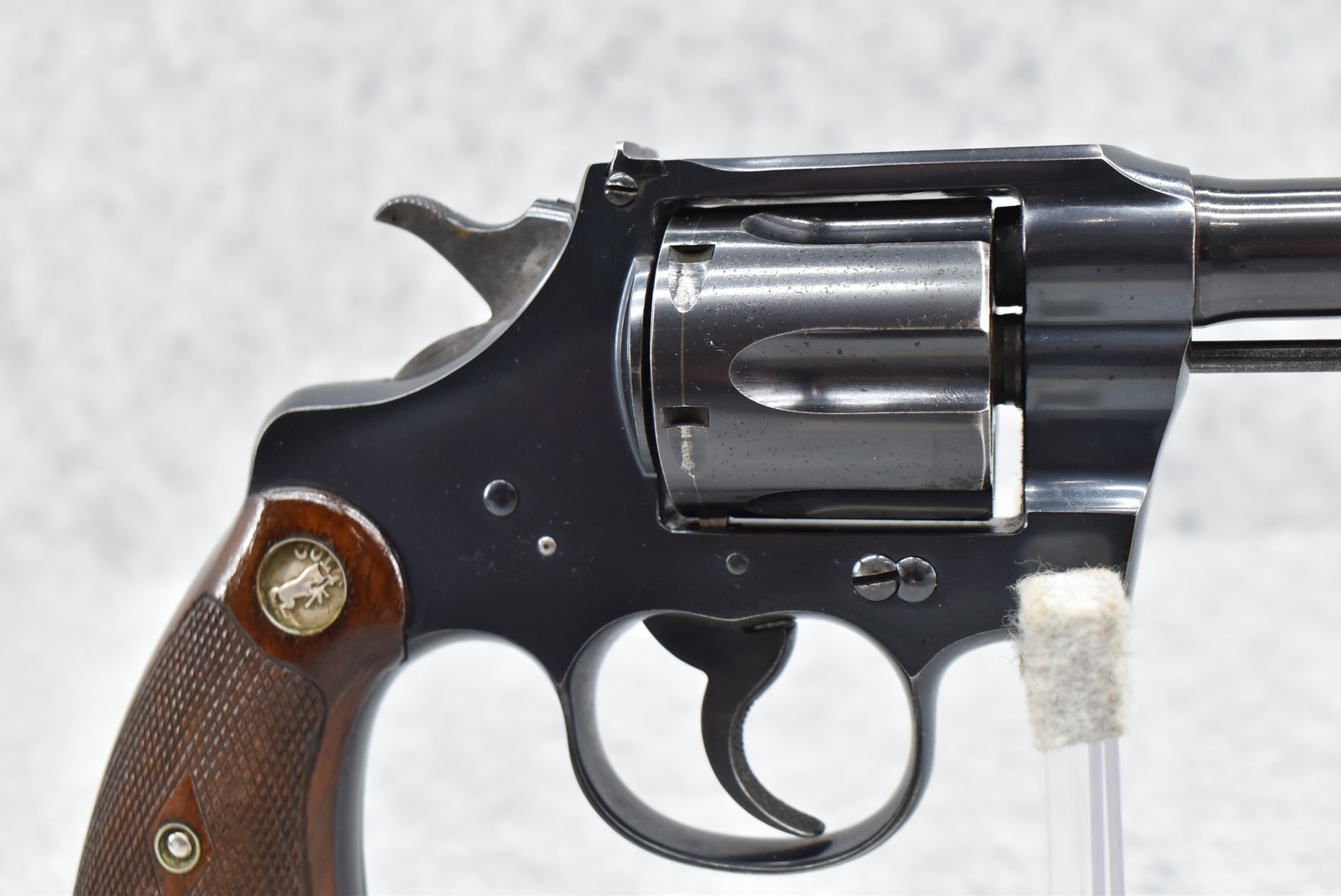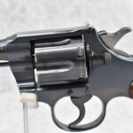108R. Colt – Officers Model 2nd Issue – 38 Spl. Cal. Double Action Revolver – w/6” Barrel w/Target Front & Rear Adj. Sights – Blued Finish – w/Factory Colt Medallion Checkered Wood Grip
