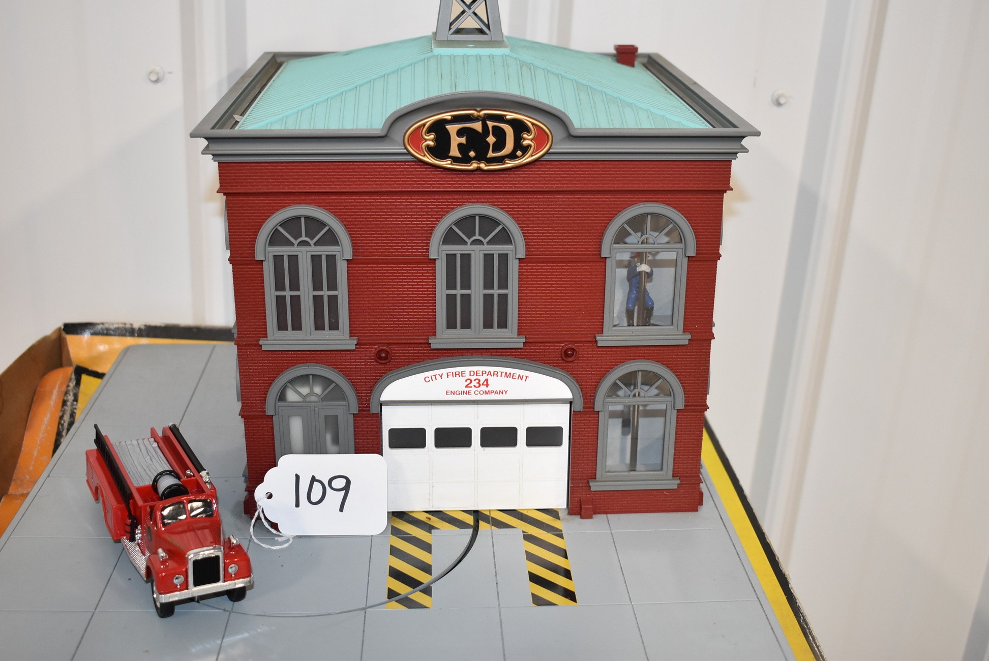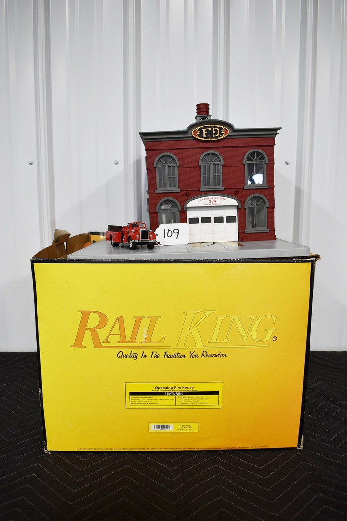 109. Rail King No. 30-9102 Operating Fire House in Original Box w/Engine
