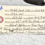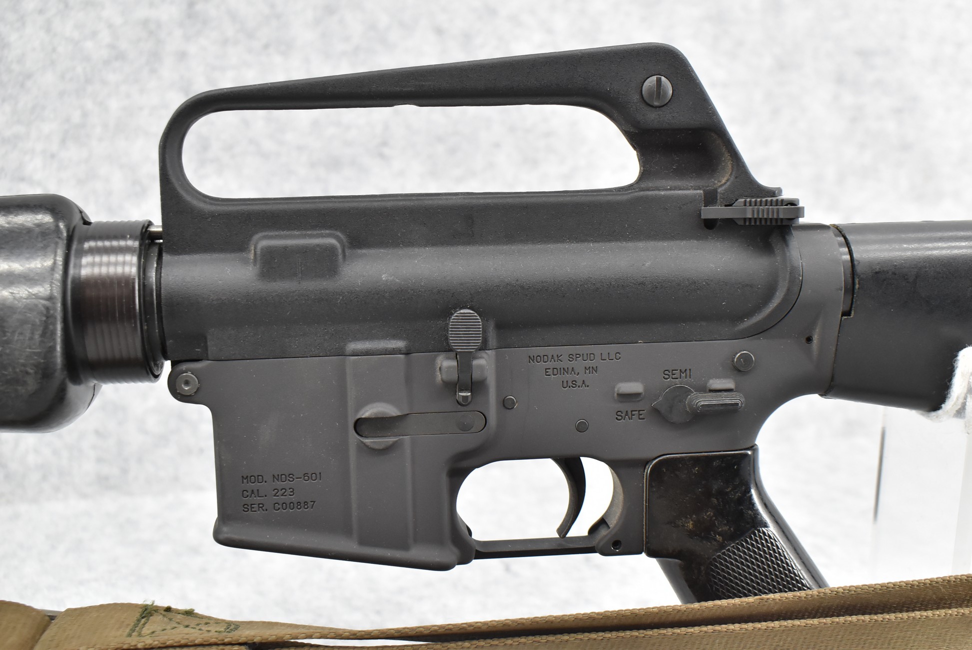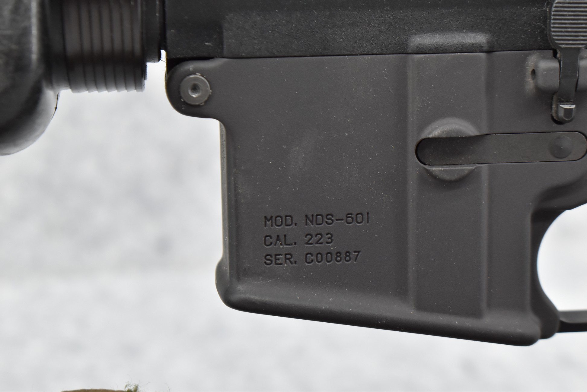 109R. Nodak Spud LLC – Mod. NDS-601 – 223 Cal. Semi-Auto Rifle – w/20” Barrel w/Pin Front & Adj. Rear Peep Sights – Matte Blued Finish – w/Black Synthetic Pistol Grip, Triangular Forearm Guard & Fixed Butt Stock – w/Brown Nylon Sling