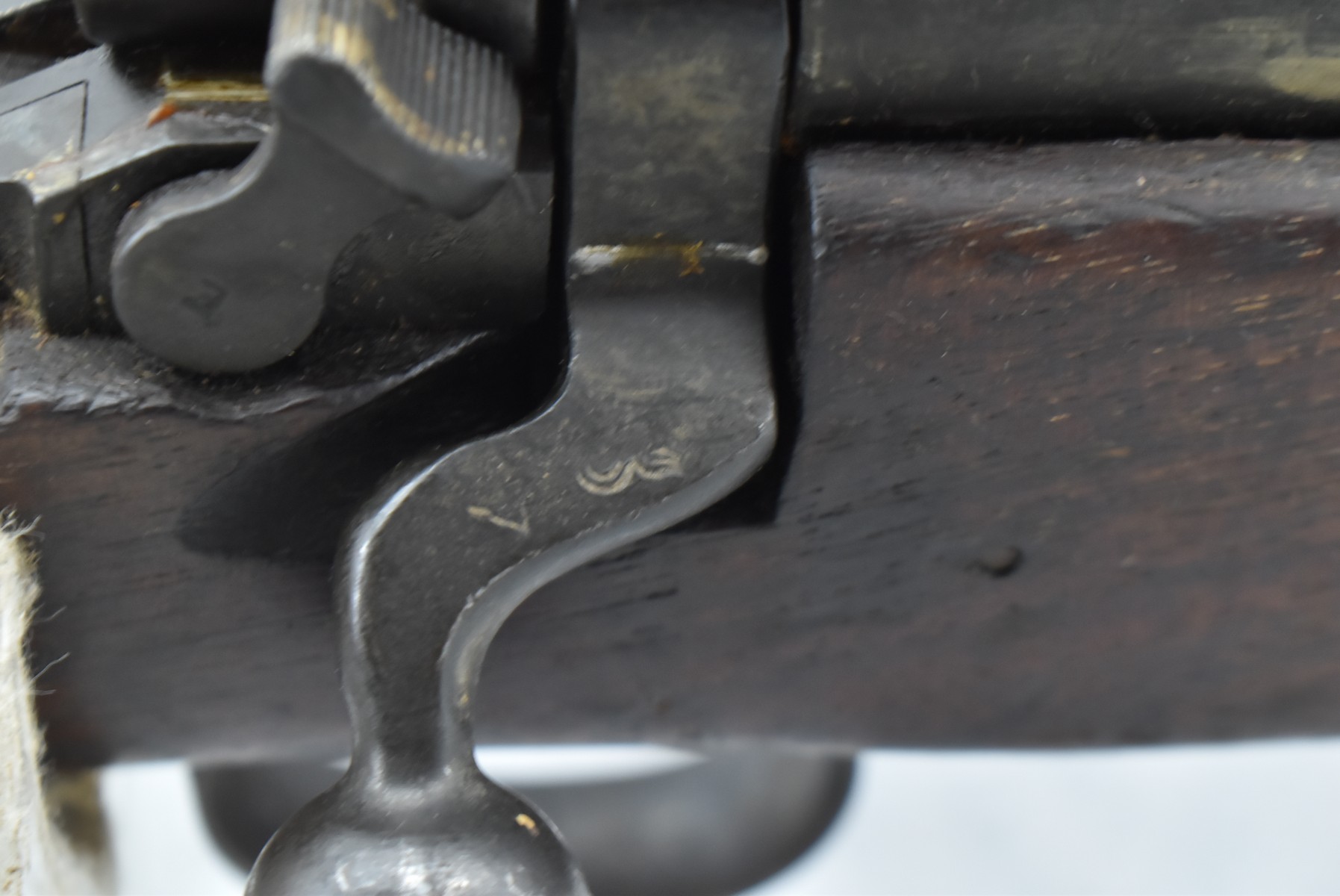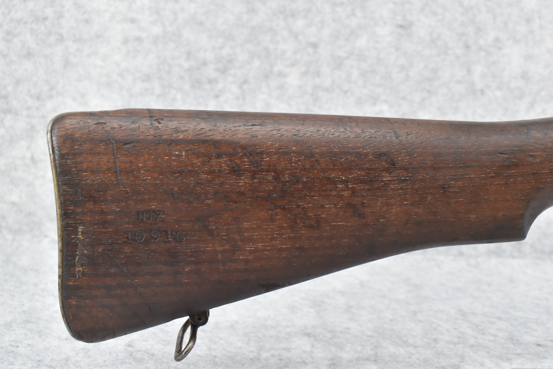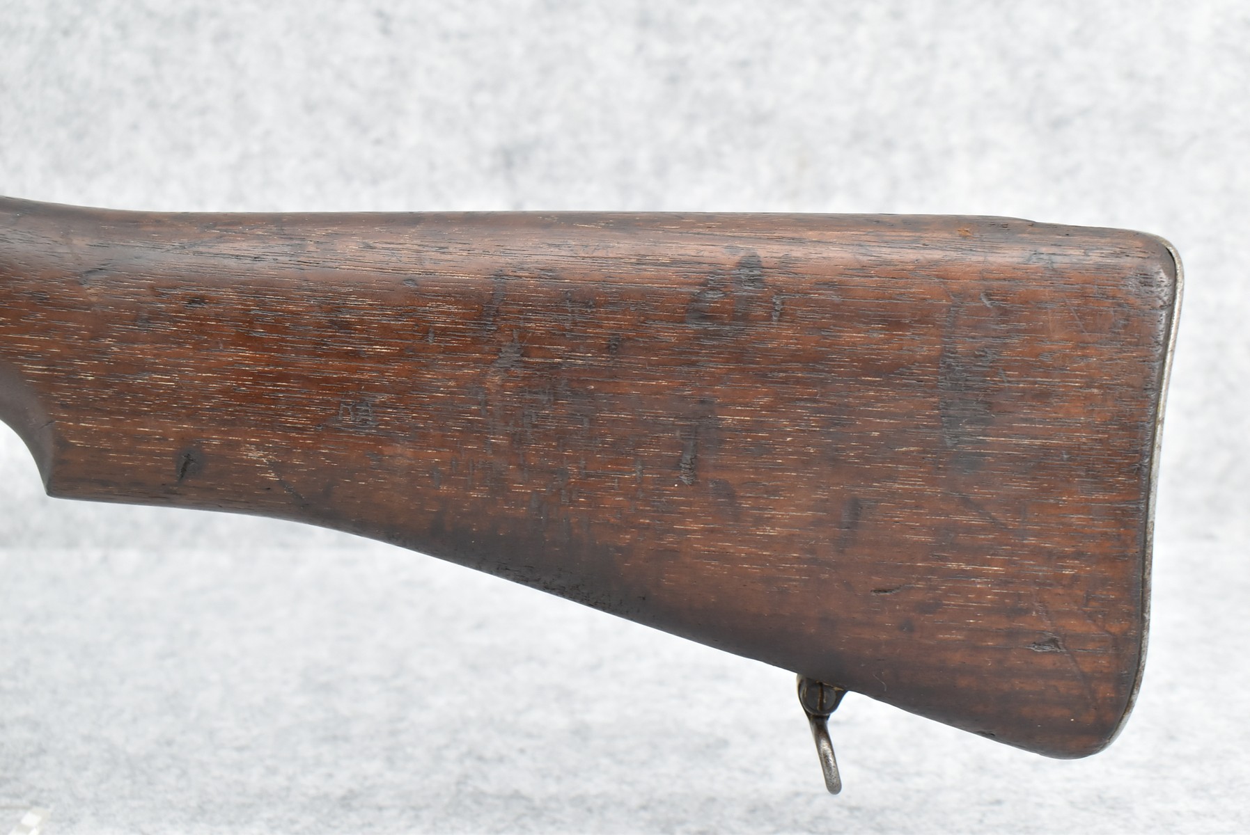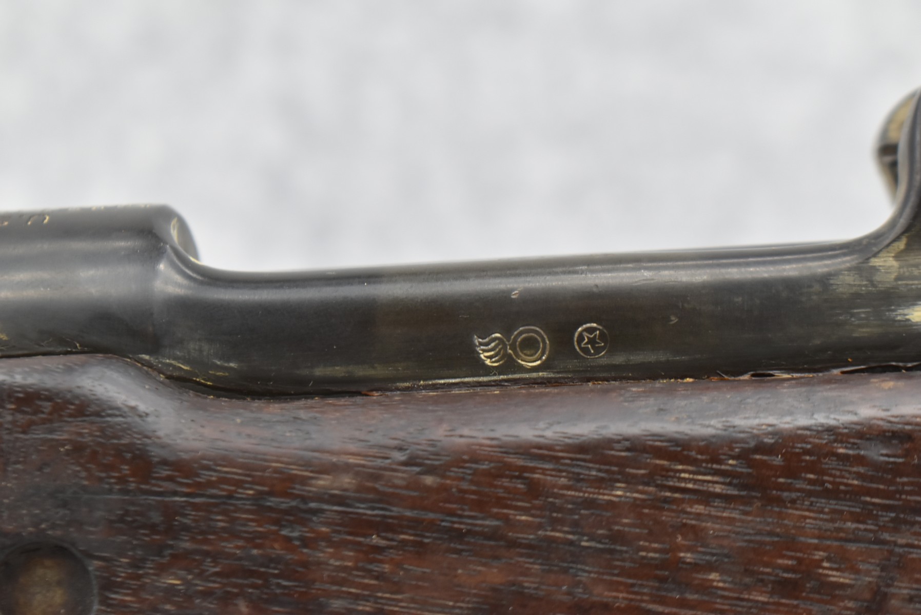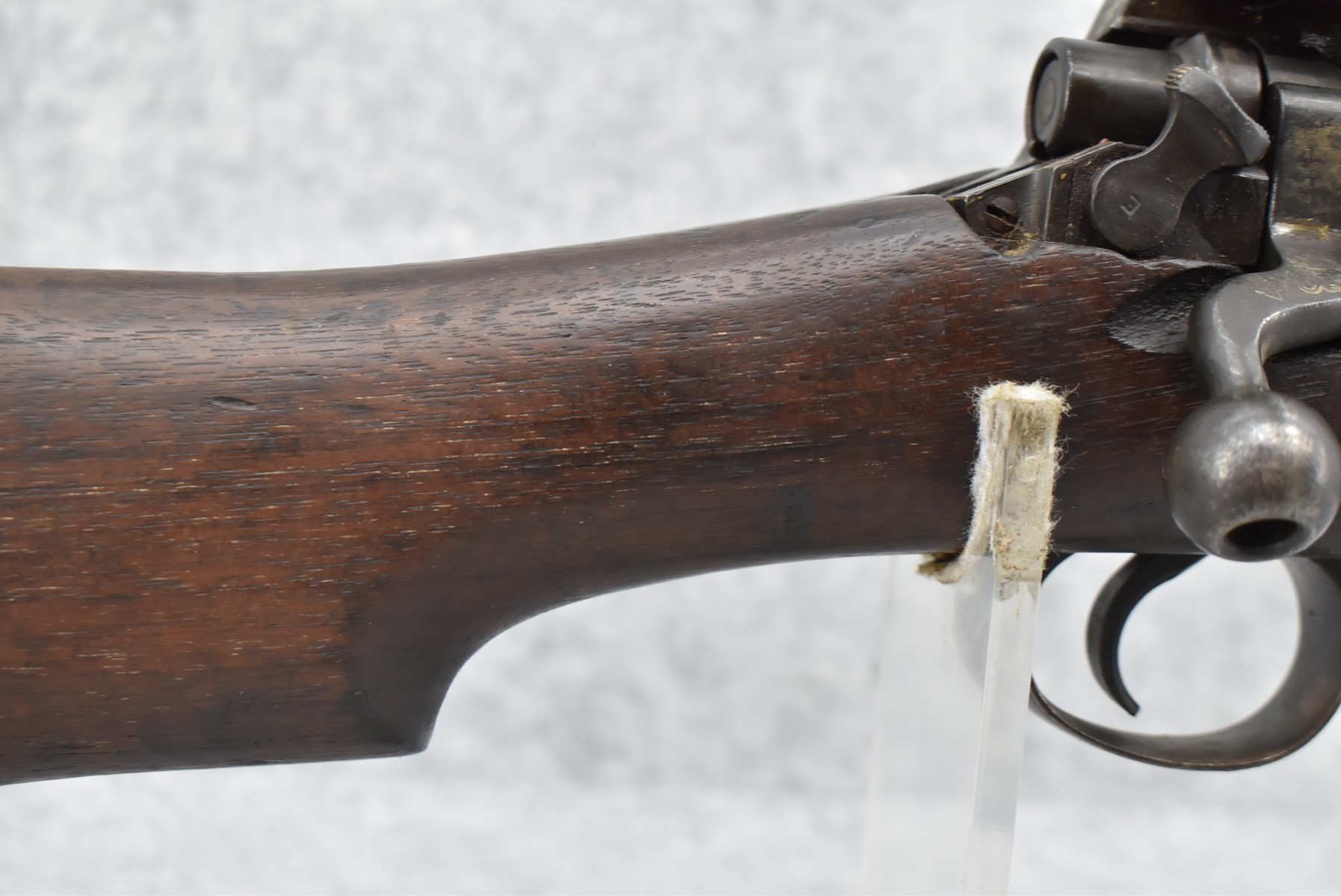 109R. Winchester – Mod. 1917 – 30-06 Cal. Bolt Action Rifle – w/26” H-S Marked Barrel w/Blade Front & Adj. Rear Ladder Sights – Military Finish – w/Pistol Grip Full Wood Military Stock w/Metal Butt Plate – w/Trap Door – Note Early Circled Star Marking on Left Side of Receiver Beside Flaming Bomb