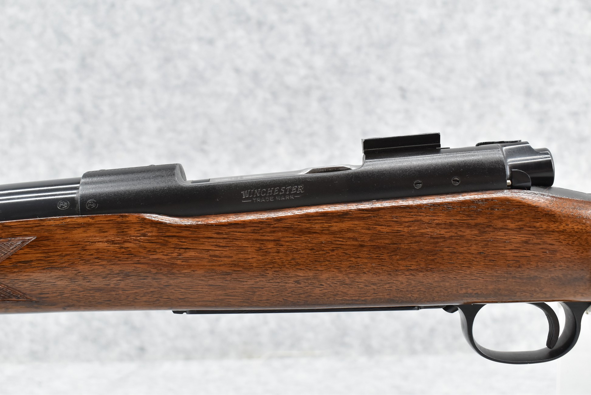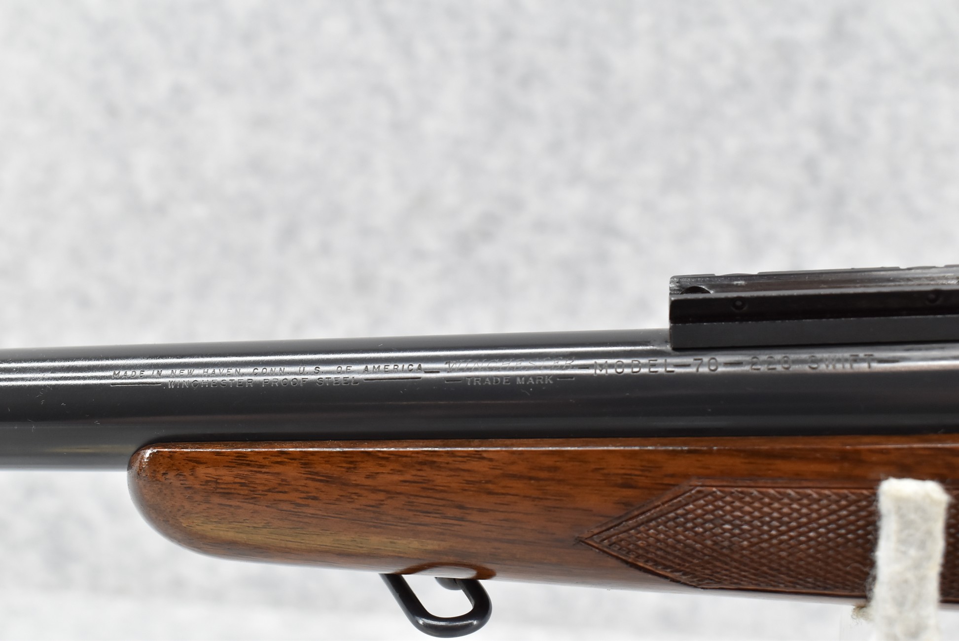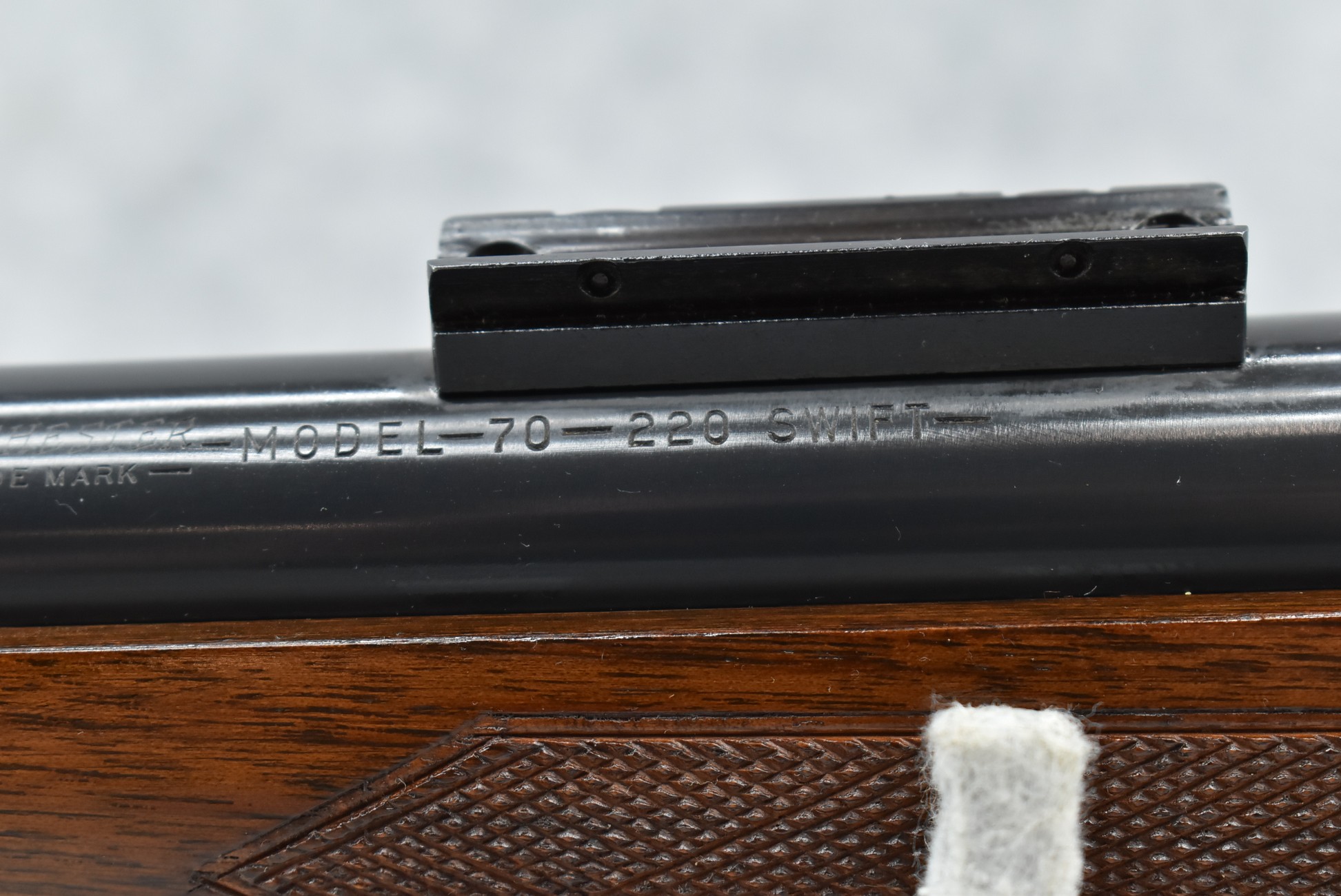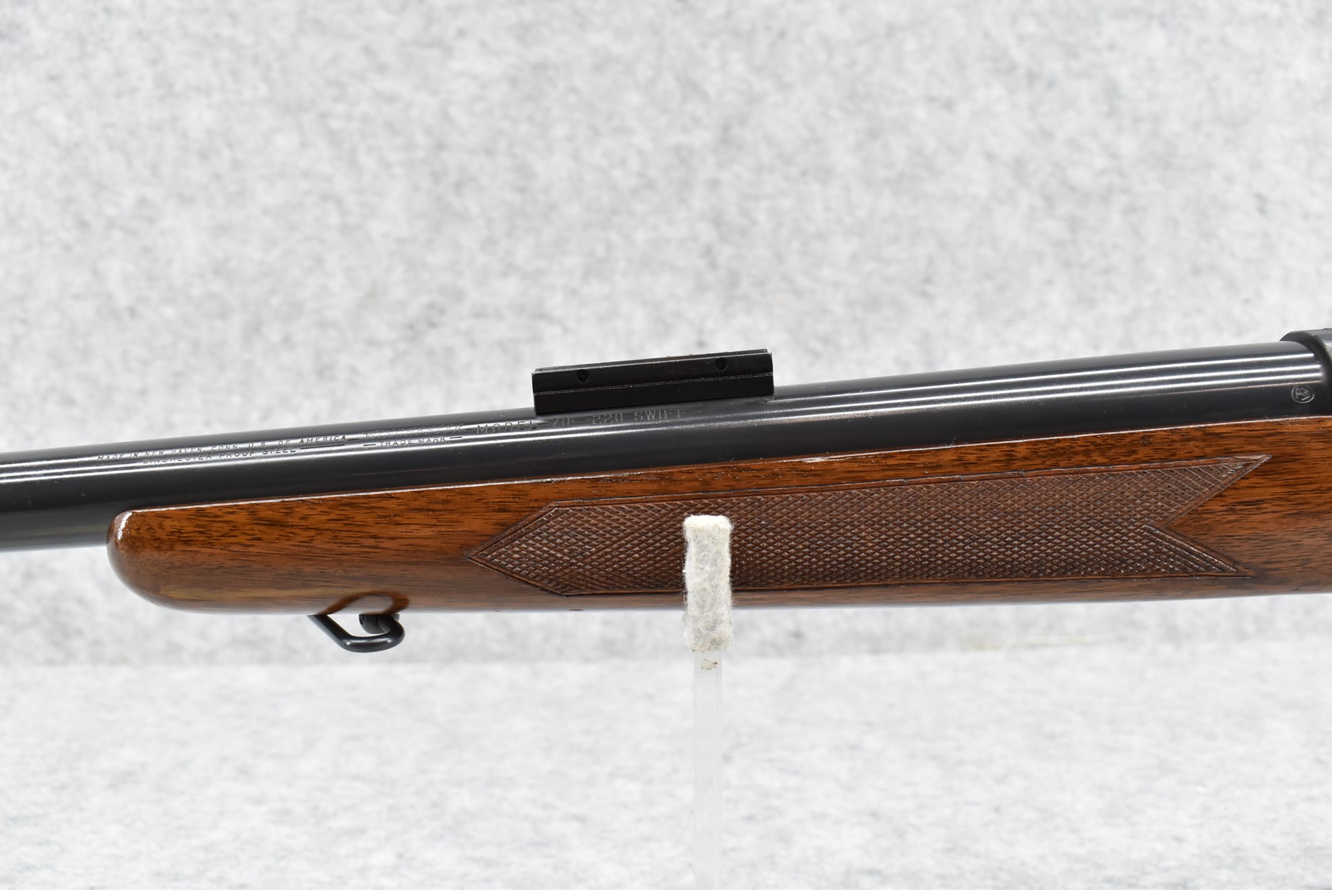109R. Winchester – Mod. 70 Varmint (Pre-64) – 220 Swift Cal. Bolt Action Rifle – w/26” Heavy Barrel – Blued Finish – w/Checkered Pistol Grip Wood Stock w/Factory Checkered Butt Plate – w/Sling Loops – w/Scope Block Bases – Mfg. 1961