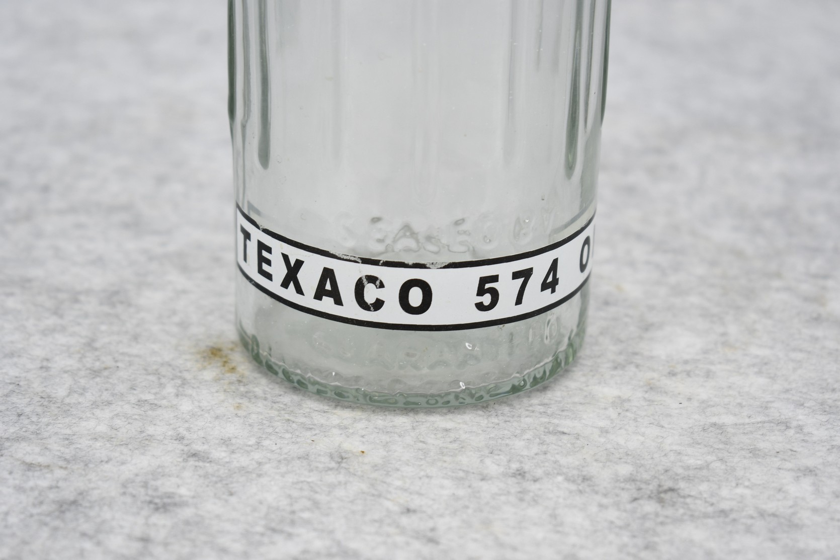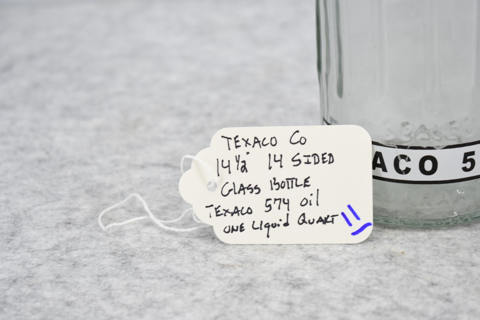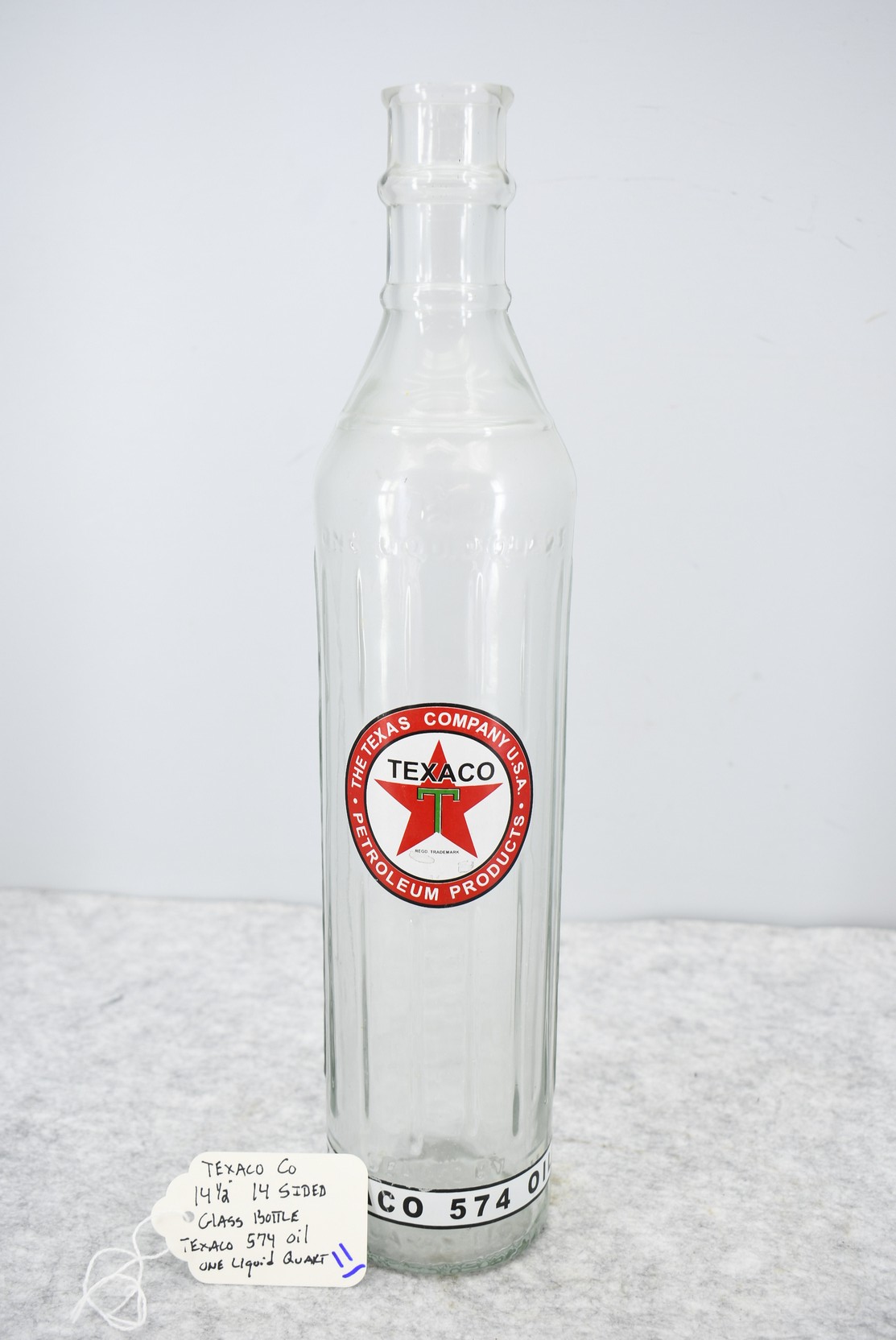 11. Texaco 14-Sided Glass Bottle – Texaco 574 Oil – Holds 1 Liquid Quart – 14½” High