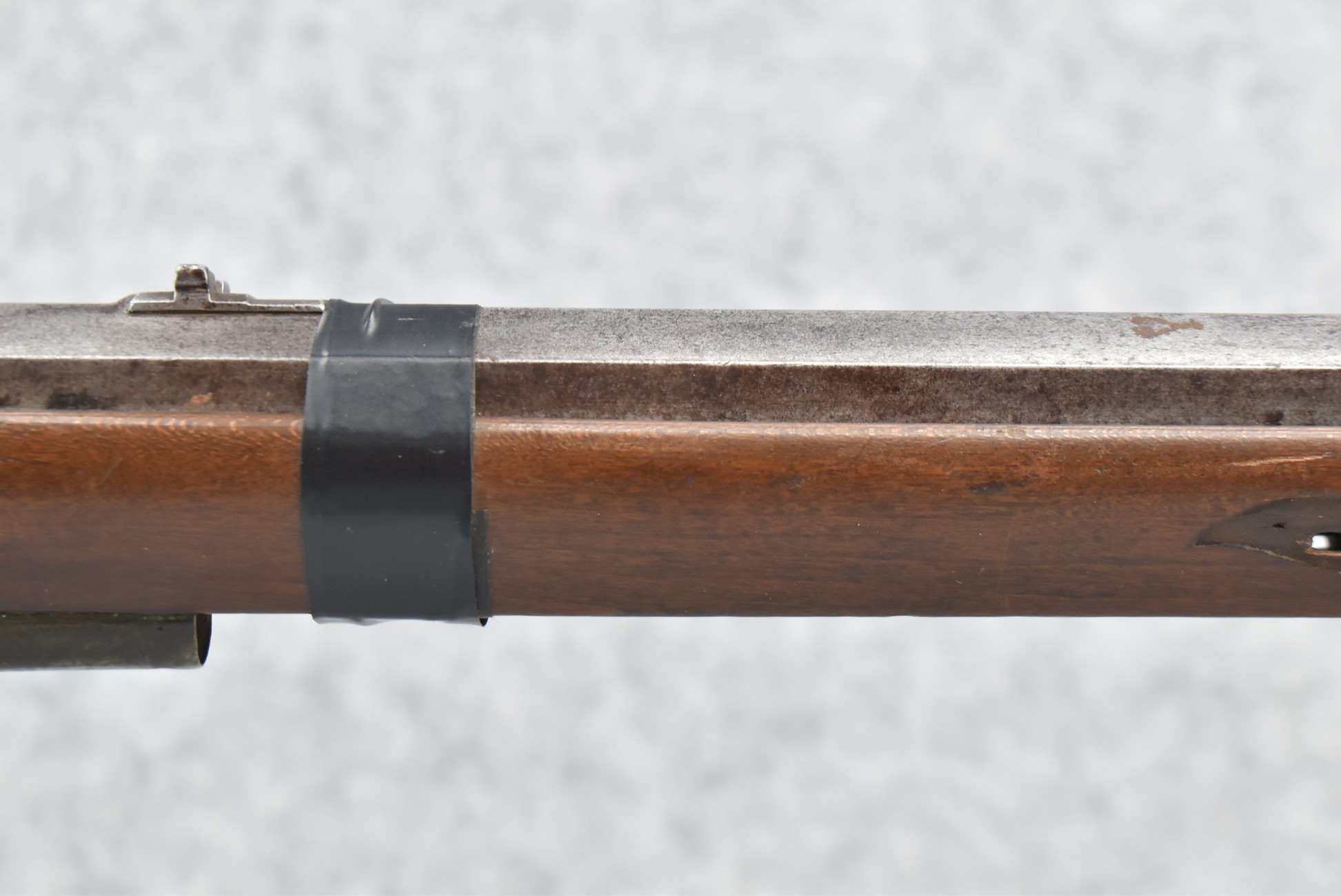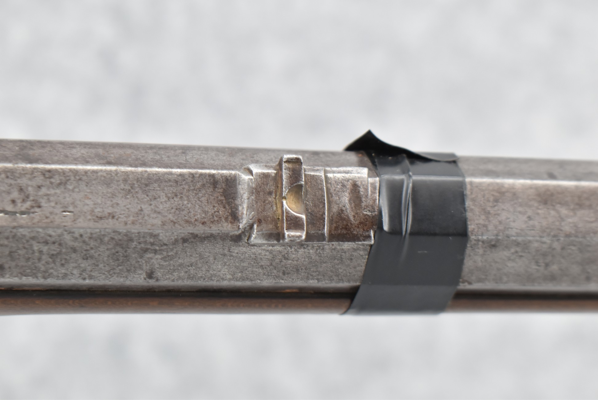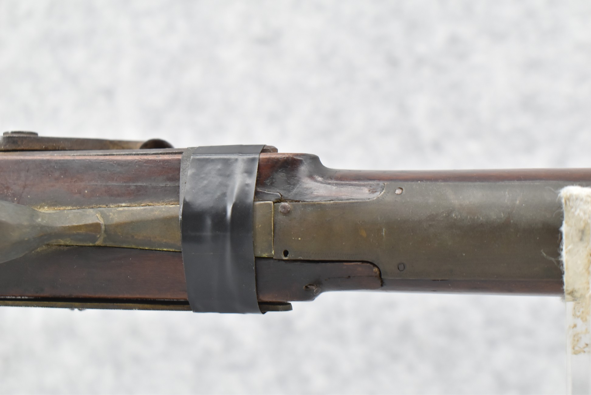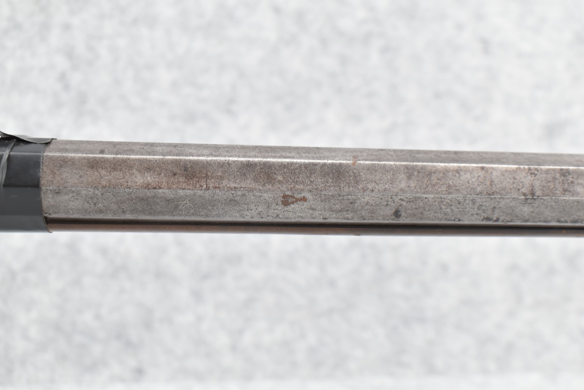 112. Signed John Armstrong of Emmitsburg, MD Barrel & Lock (in Need of Restoration) – Gun Has an Excellent Signed 45 Cal. 44” Barrel – w/Full Stock w/4pc. Patch Box – Stock Shows Cracks, Repairs & Things That Need Repaired – w/Strong Signed John Armstrong Percussion Lock – w/Push Button Release Patch Box Door – John Armstrong of Emmitsburg, Maryland Worked From 1790 to 1820 – Overall Length of 60” – Note the Unusual Checkering