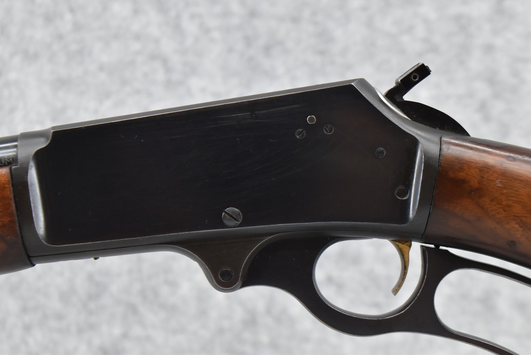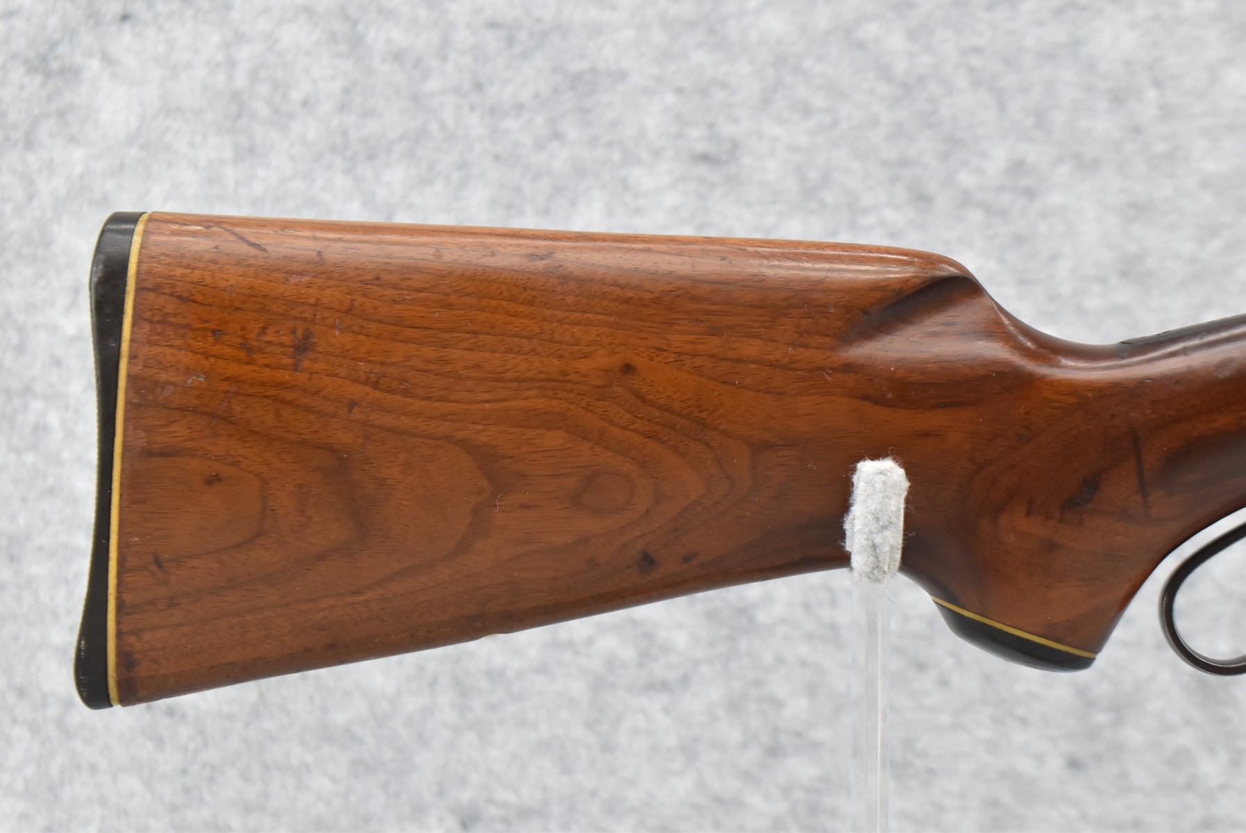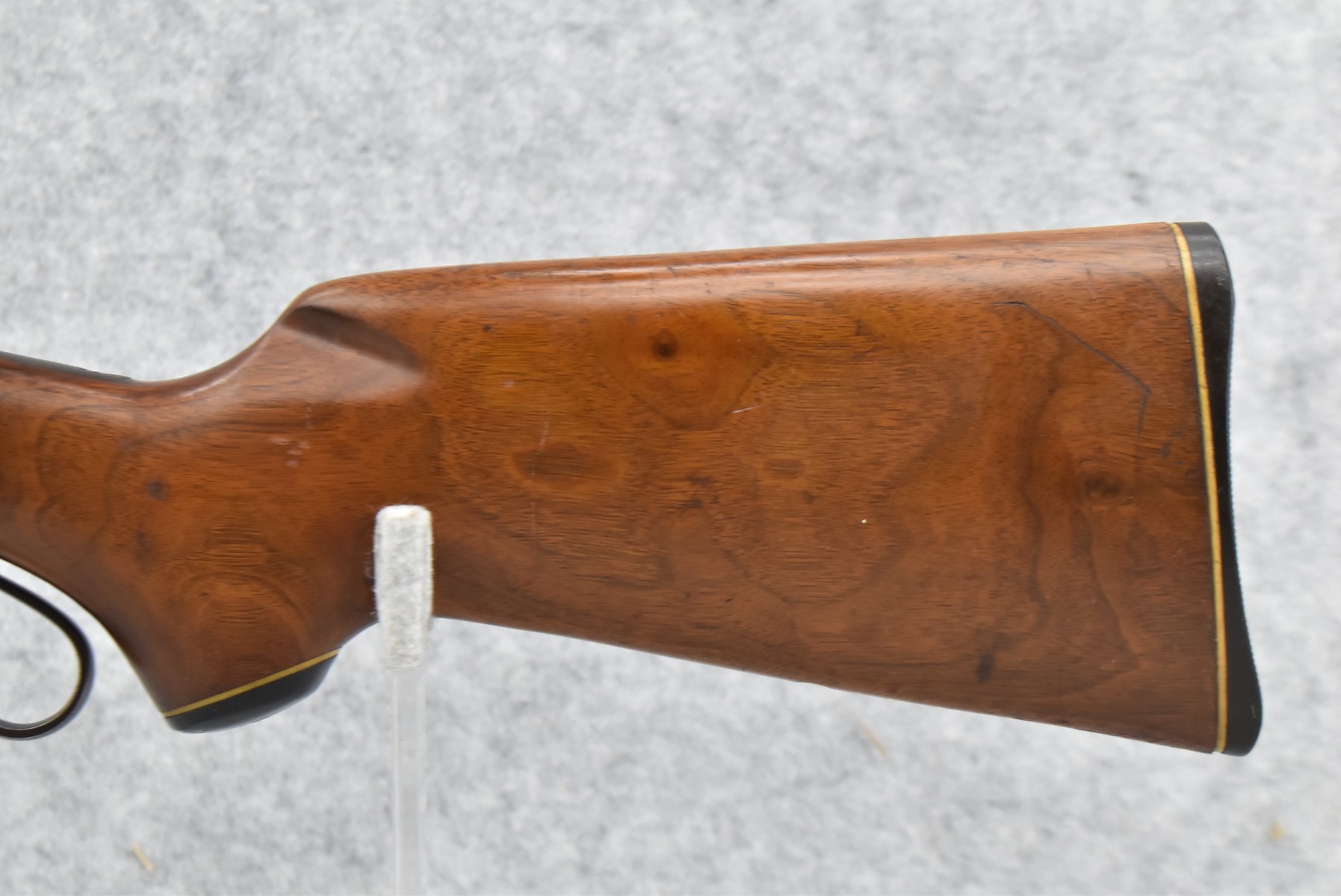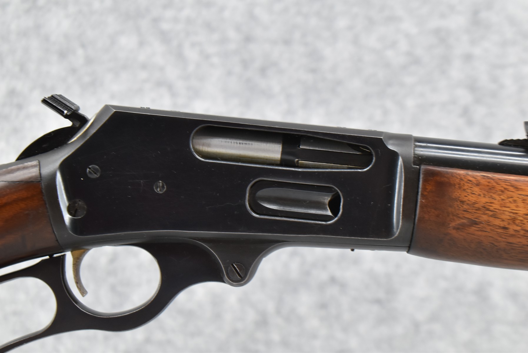 112R. Marlin – Mod. 336 – 35 Rem. Cal. Lever Action Rifle – w/20” JM Stamped Barrel w/Front Hooded Blade & Rear Adj. Semi-Buckhorn Sights w/Full Length Tubular Mag – Blued Finish – w/Factory Smooth Capped Pistol Grip Wood Stocks w/Factory Butt Plate – w/Hammer Extension
