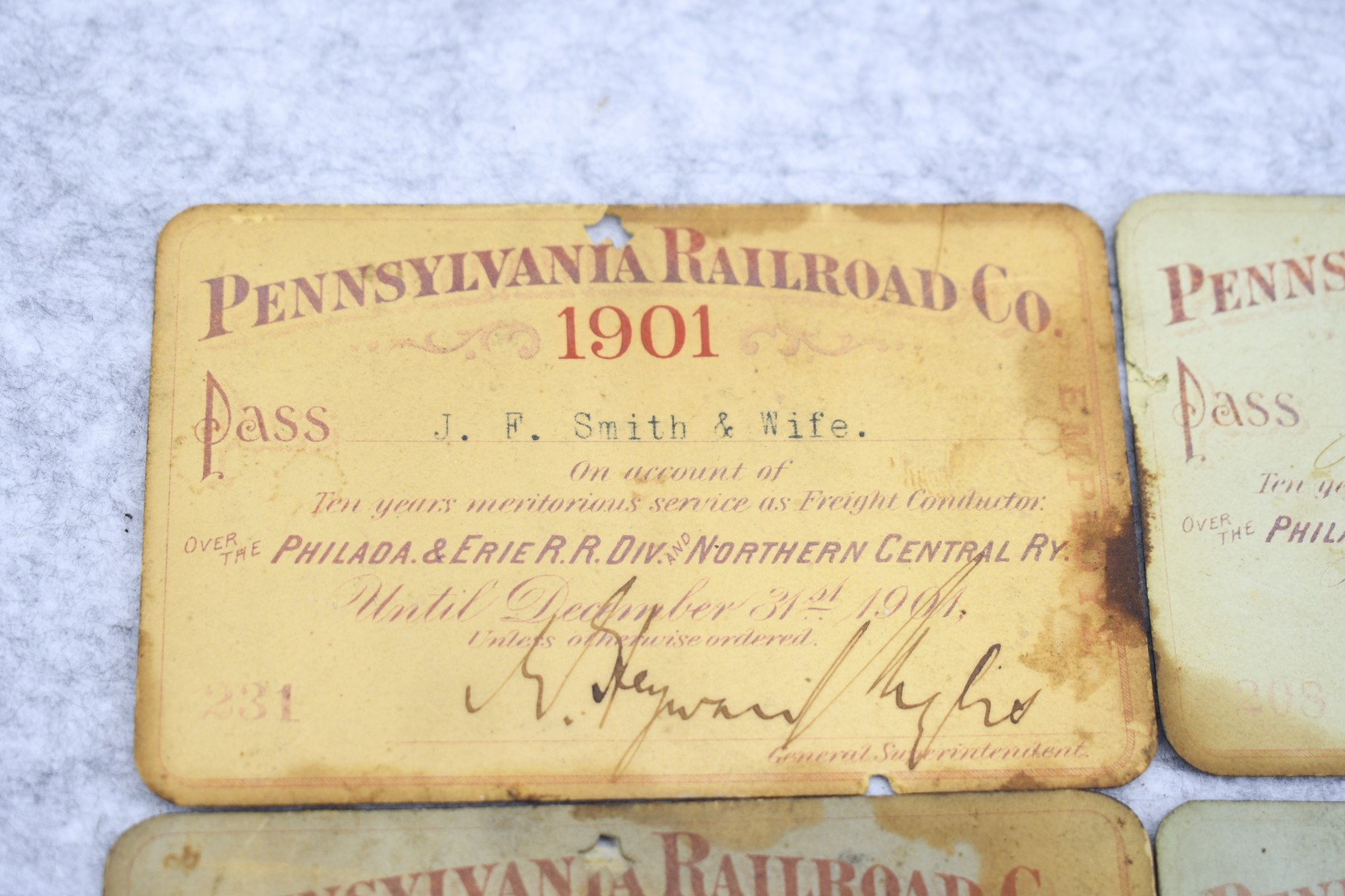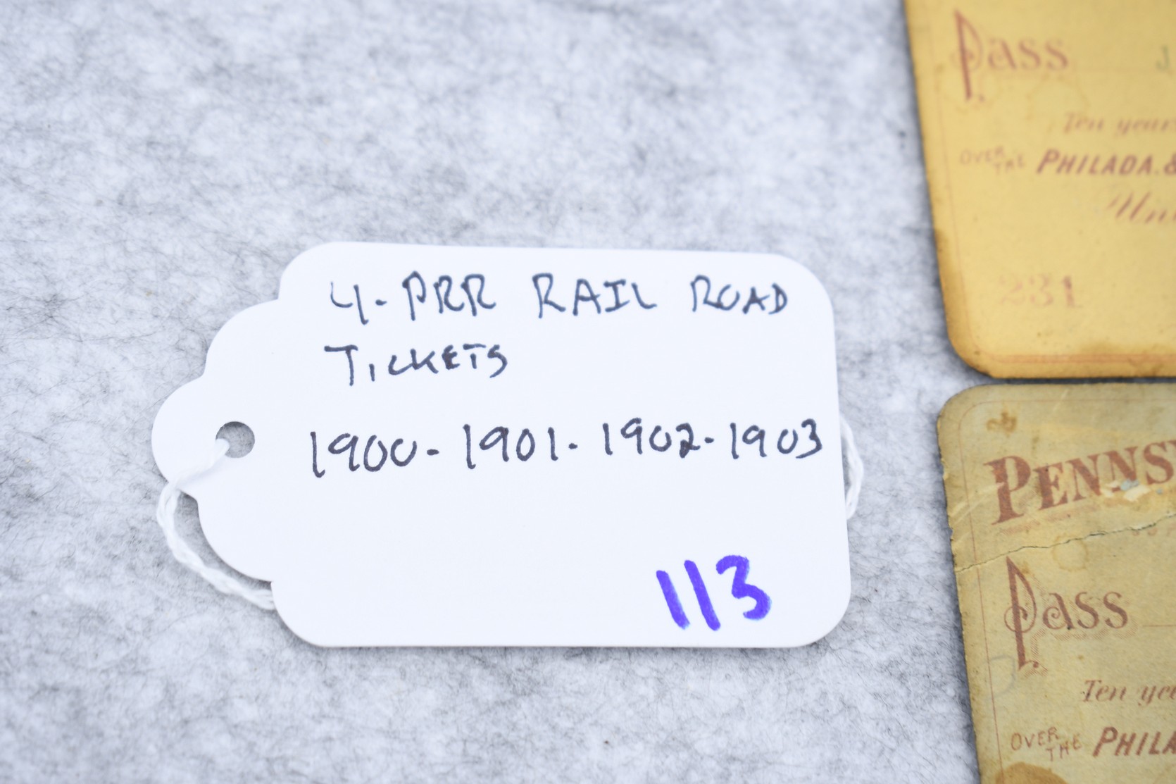 113. Lot of 4 P.R.R. Railroad Tickets Including: 1900, 1901, 1902, and 1903 – Philadelphia/Erie Northern Central RY