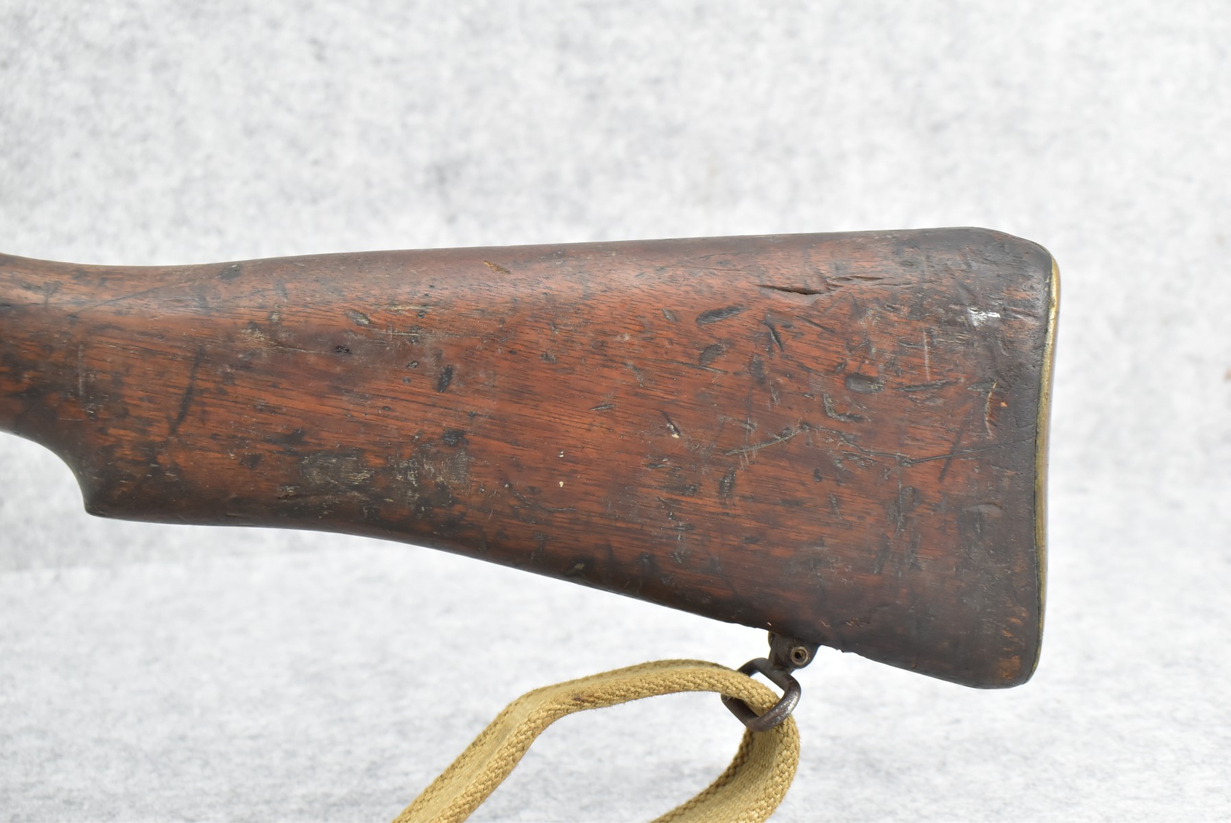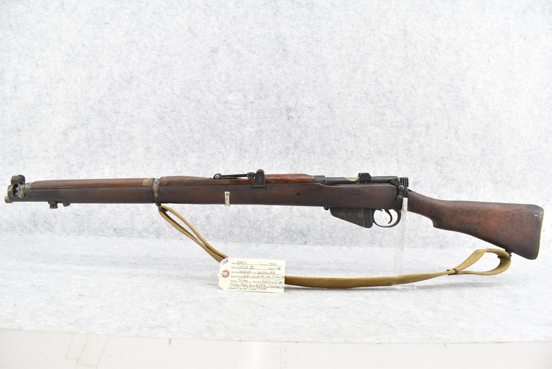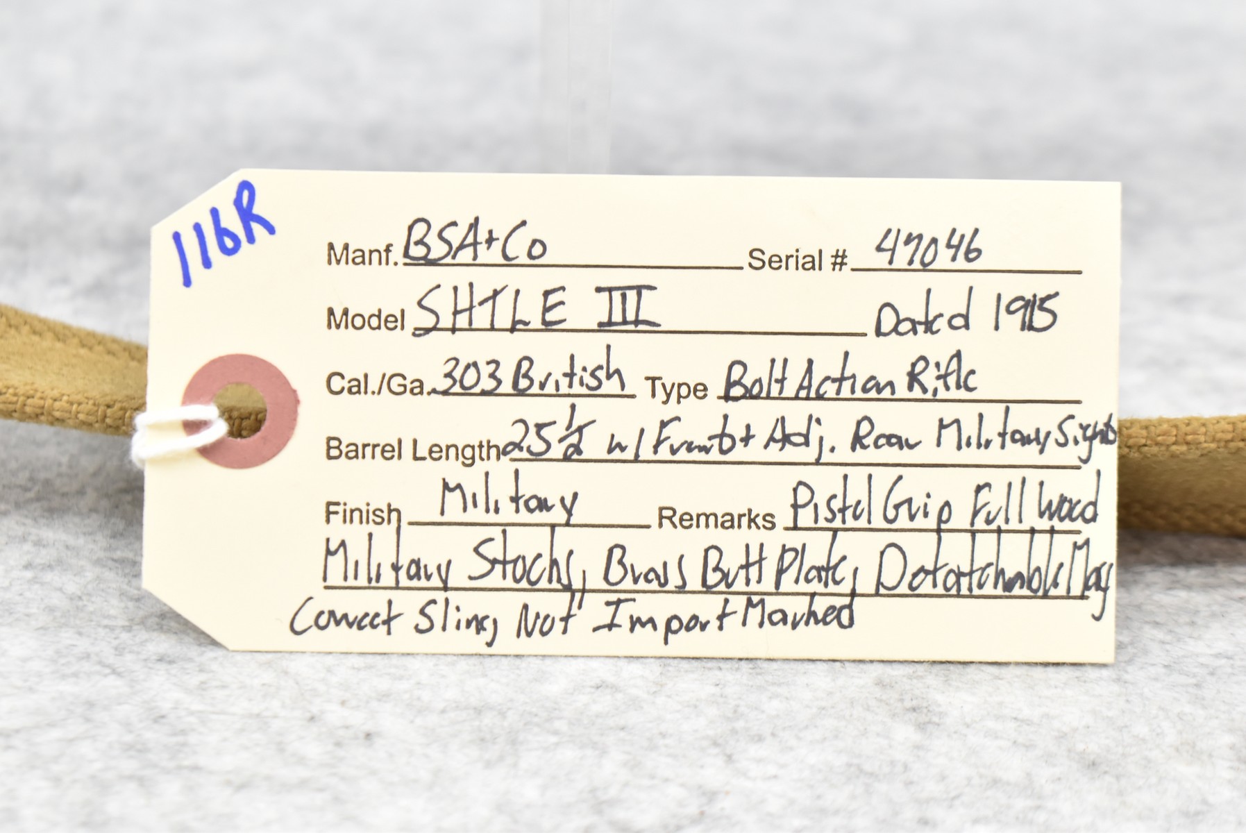116R. BSA & Co. – Mod. SHTLE III – 303 Brit. Cal. Bolt Action Rifle – w/25 ½” Barrel w/Front & Adj. Rear Military Sights – Military Finish – w/Pistol Grip Full Wood Military Stocks w/Brass Butt Plate – w/Detachable Mag – w/Correct Sling – Dated 1915 – Not Import Marked