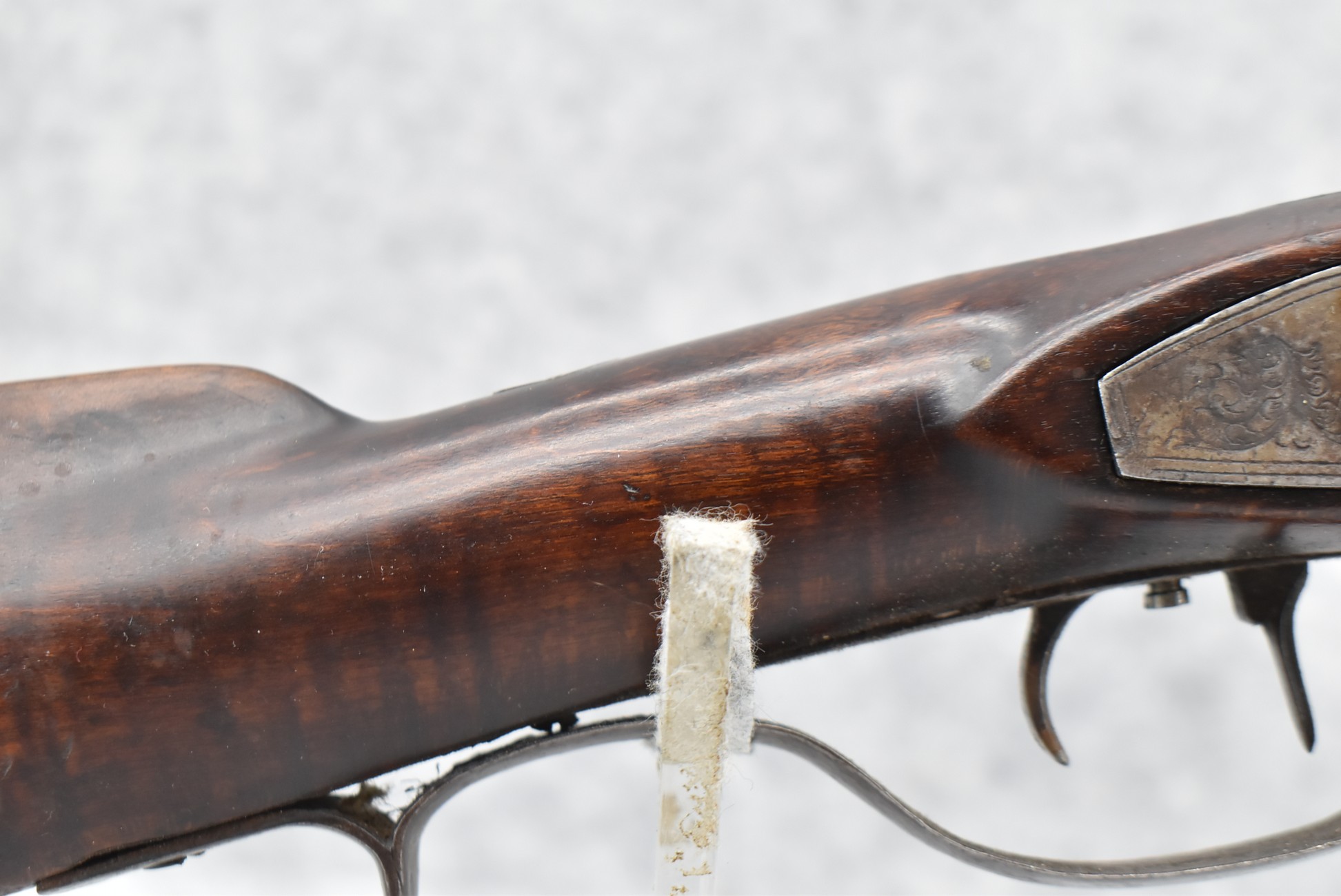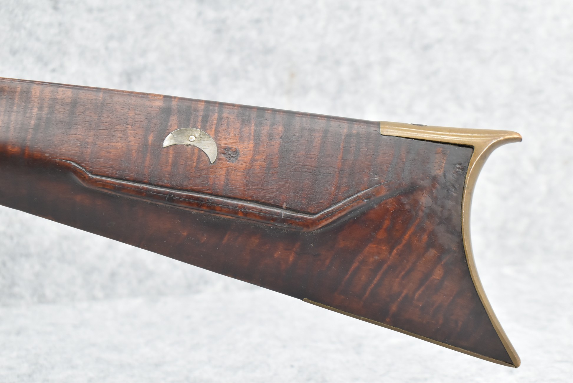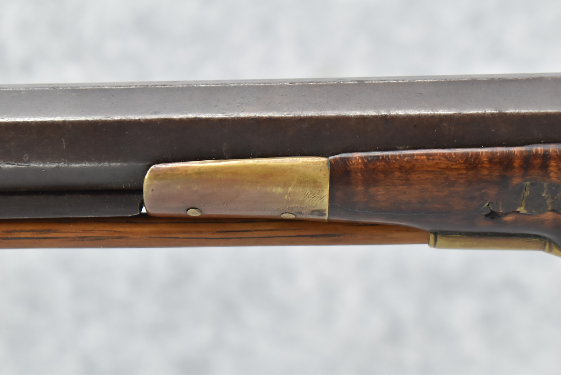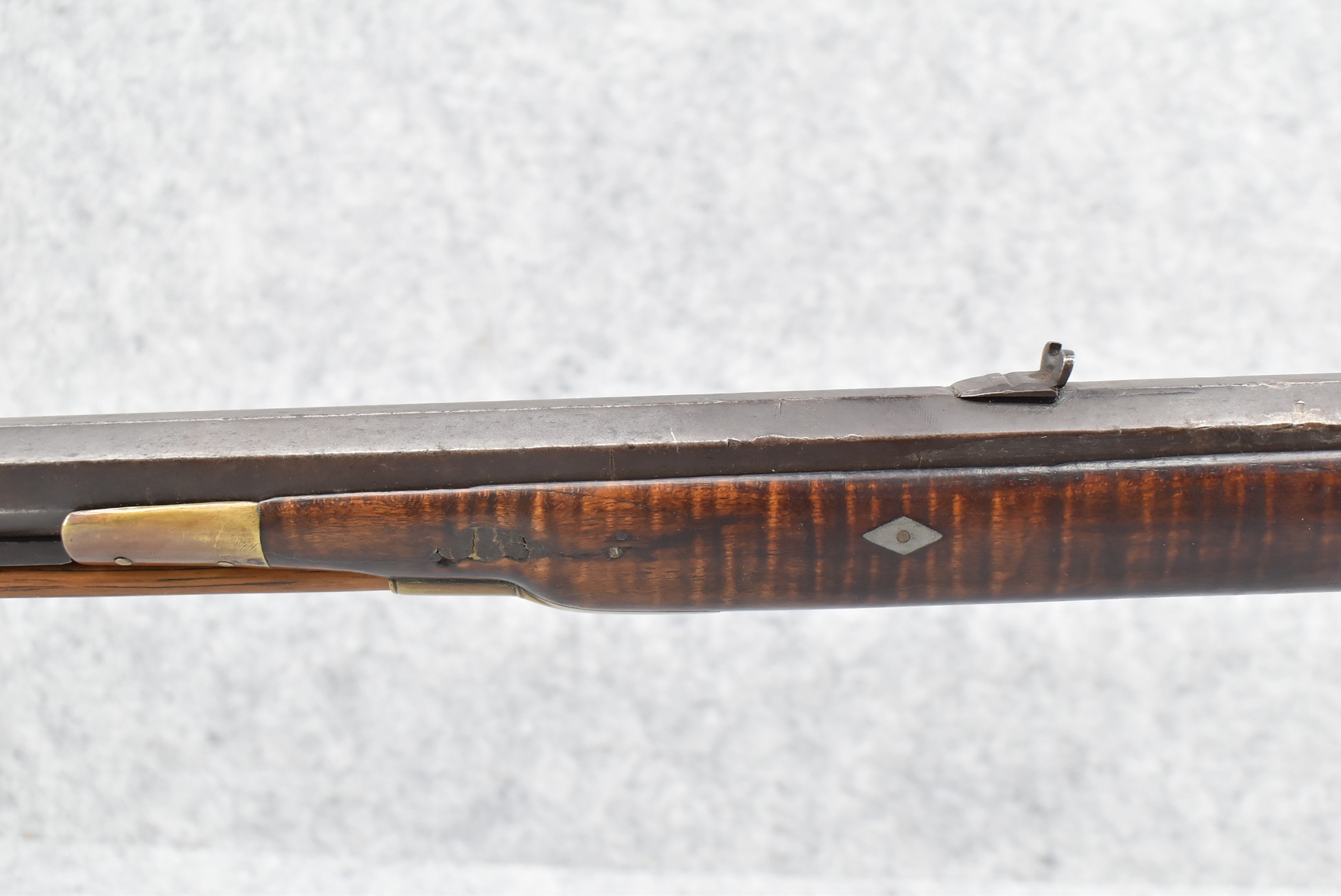 117. R.W. Booth & Co. of Cincinnati, Ohio Signed Percussion Lock – 41 Cal. Half Wood Tiger Maple Stock Long Rifle – Gun is Fitted w/38” Octagon Barrel w/Front & Rear Barrel Sights – Half Stock w/Iron & Brass Furniture – w/Double Set Triggers – w/Ram Rod – Overall Length of 54”