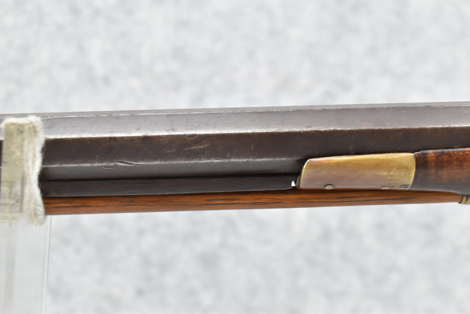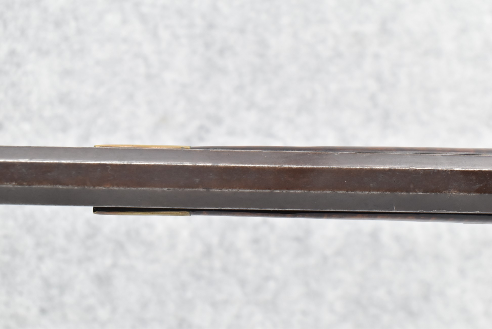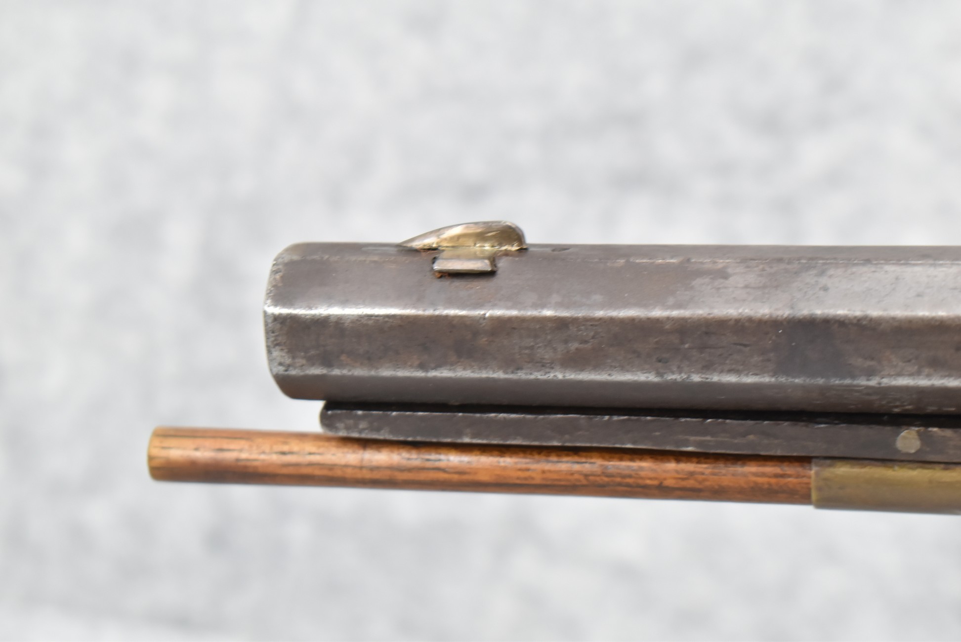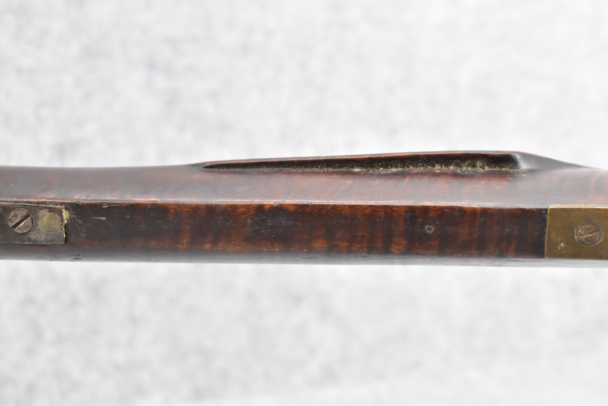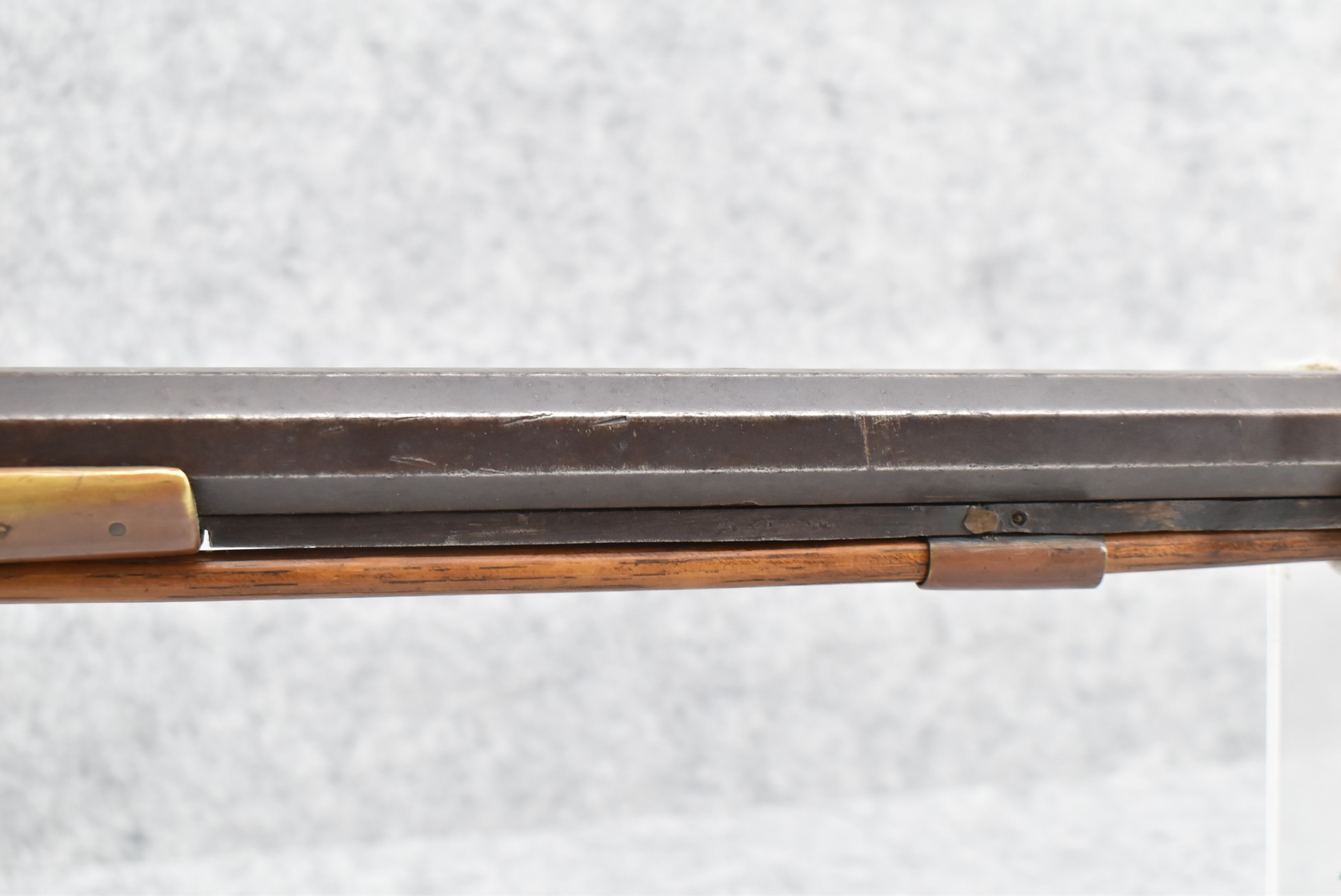117. R.W. Booth & Co. of Cincinnati, Ohio Signed Percussion Lock – 41 Cal. Half Wood Tiger Maple Stock Long Rifle – Gun is Fitted w/38” Octagon Barrel w/Front & Rear Barrel Sights – Half Stock w/Iron & Brass Furniture – w/Double Set Triggers – w/Ram Rod – Overall Length of 54”