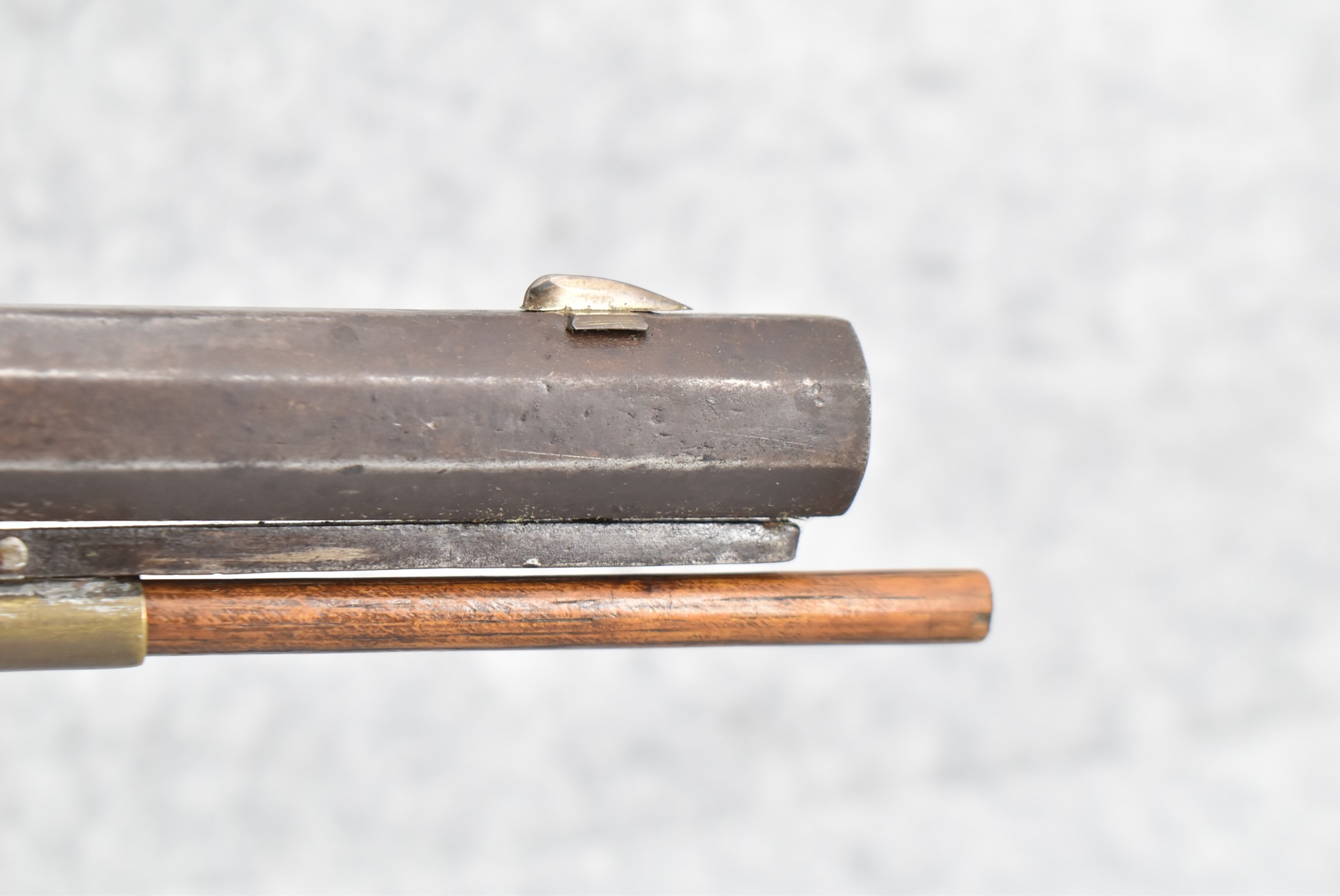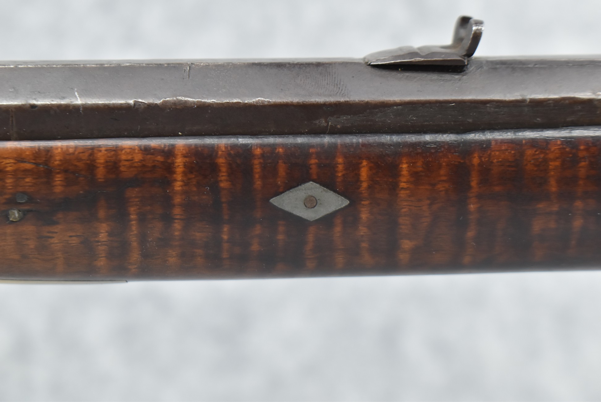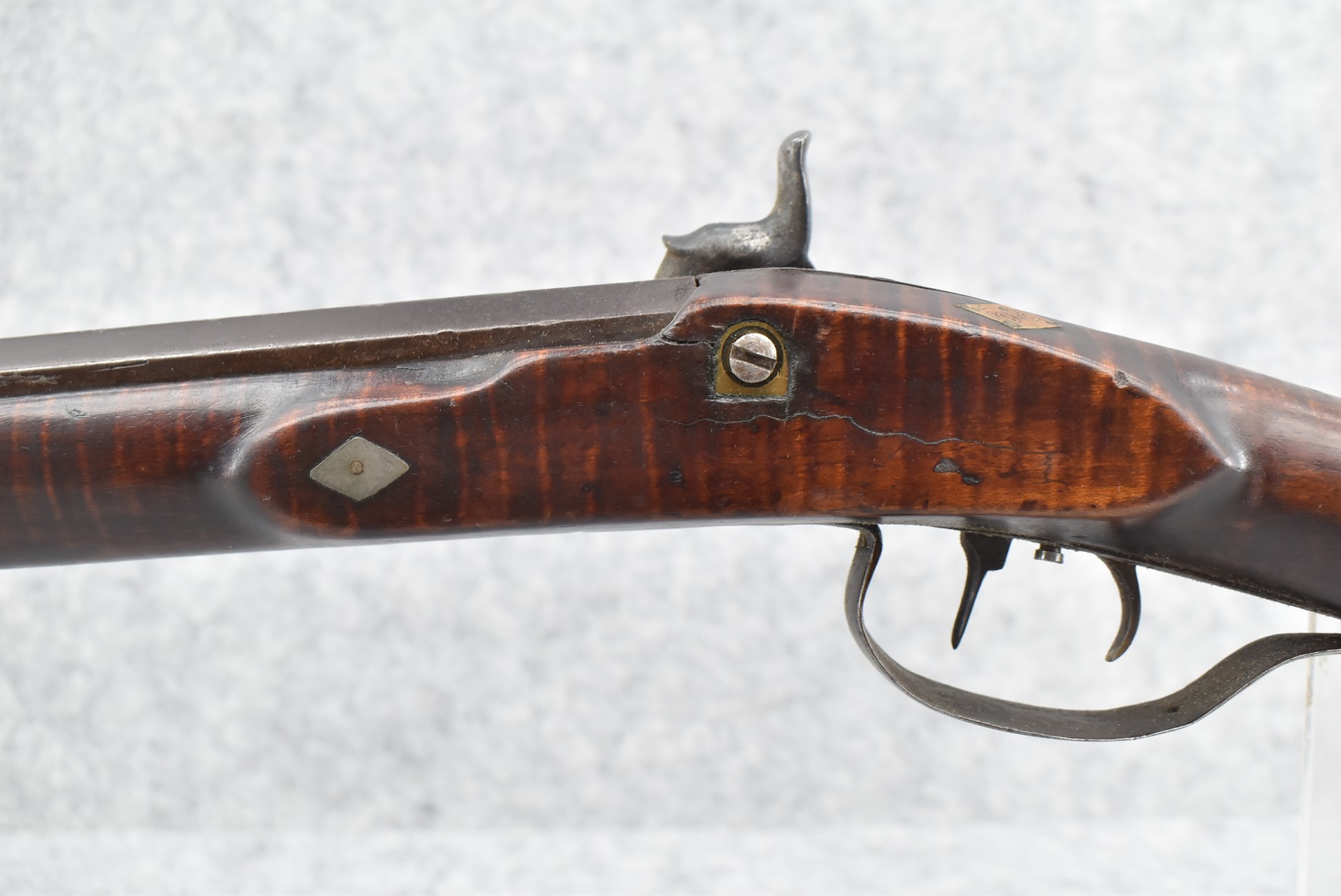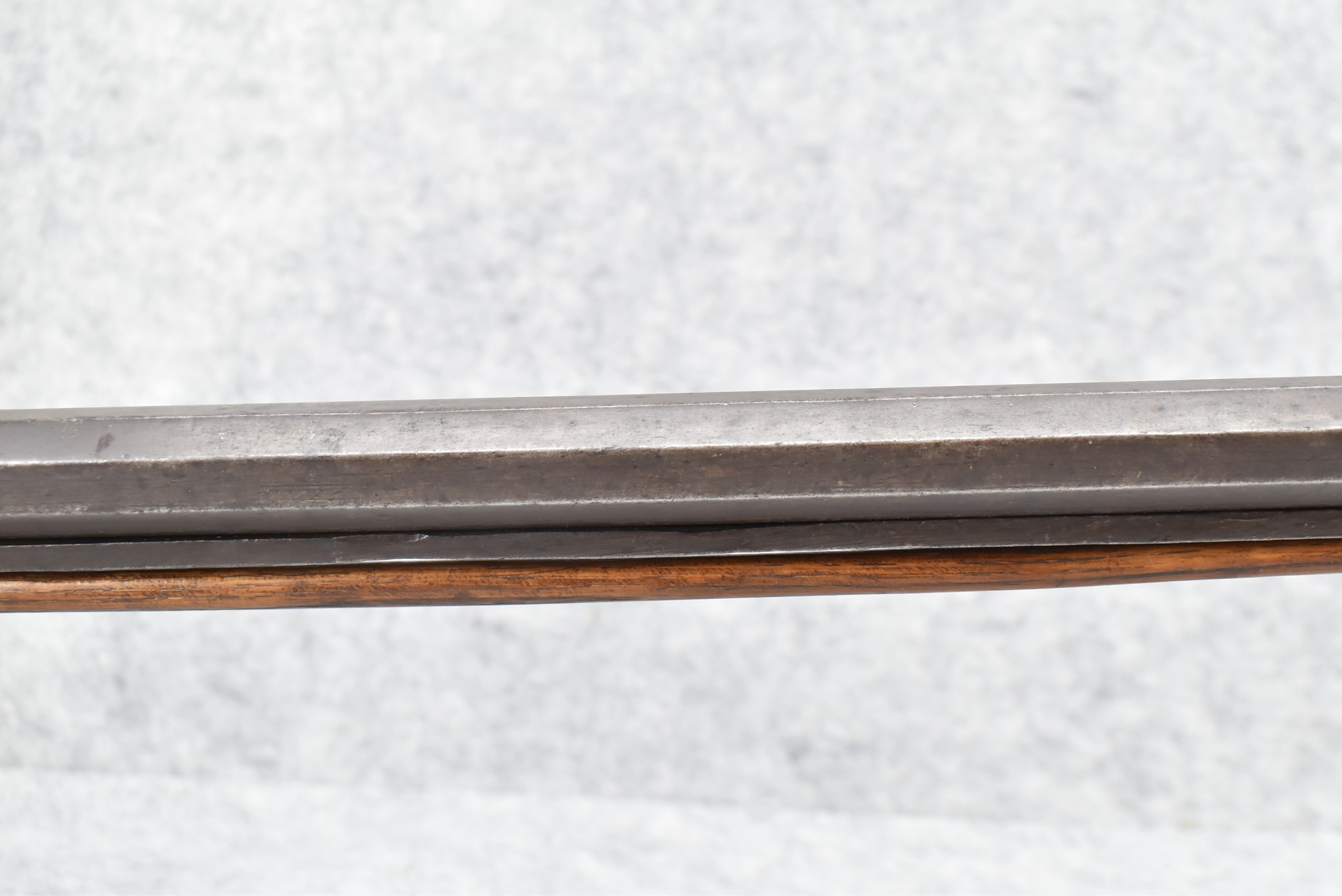 117. R.W. Booth & Co. of Cincinnati, Ohio Signed Percussion Lock – 41 Cal. Half Wood Tiger Maple Stock Long Rifle – Gun is Fitted w/38” Octagon Barrel w/Front & Rear Barrel Sights – Half Stock w/Iron & Brass Furniture – w/Double Set Triggers – w/Ram Rod – Overall Length of 54”