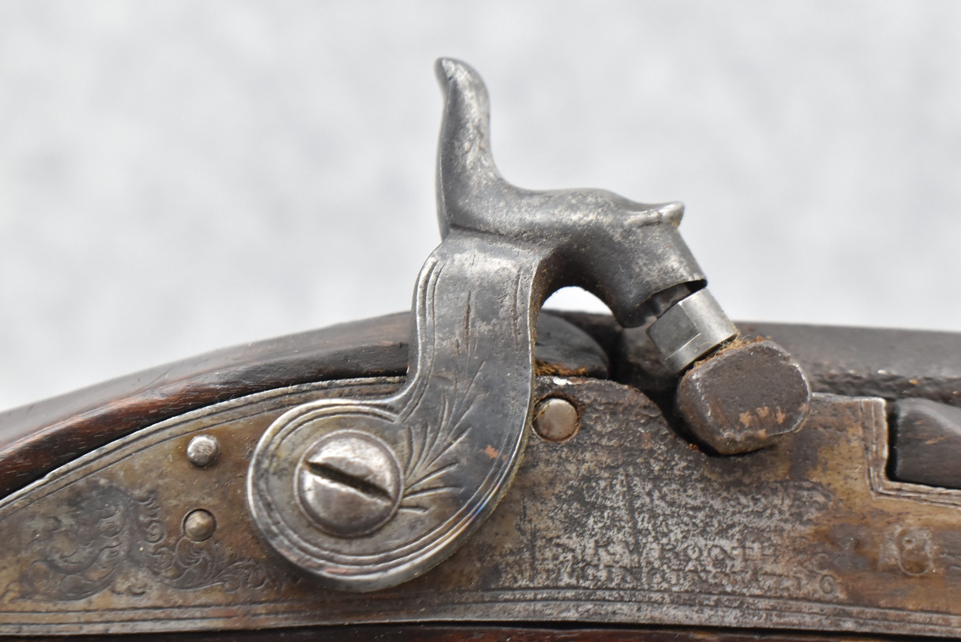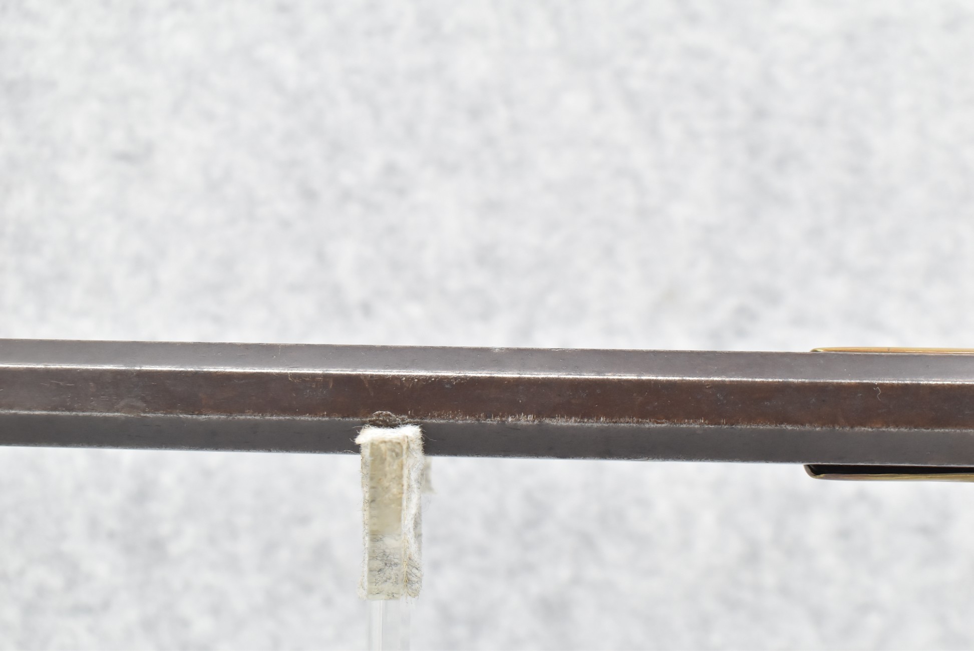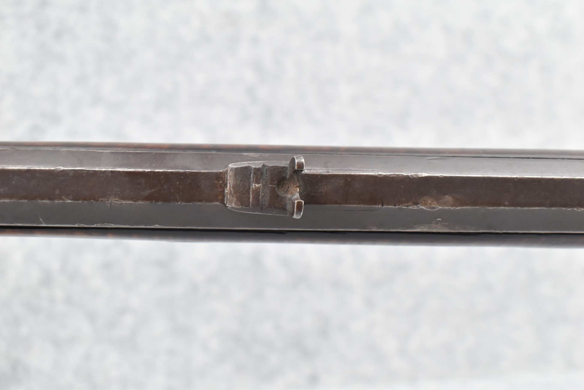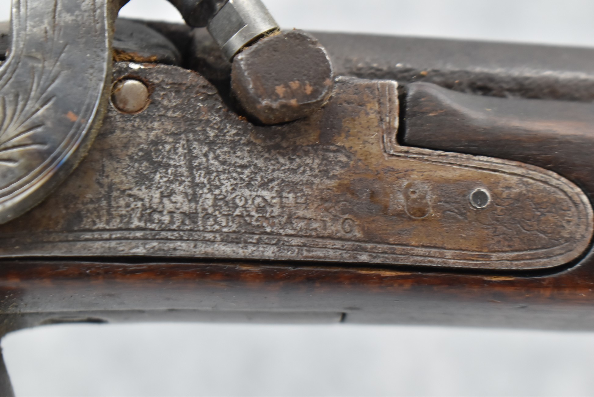 117. R.W. Booth & Co. of Cincinnati, Ohio Signed Percussion Lock – 41 Cal. Half Wood Tiger Maple Stock Long Rifle – Gun is Fitted w/38” Octagon Barrel w/Front & Rear Barrel Sights – Half Stock w/Iron & Brass Furniture – w/Double Set Triggers – w/Ram Rod – Overall Length of 54”
