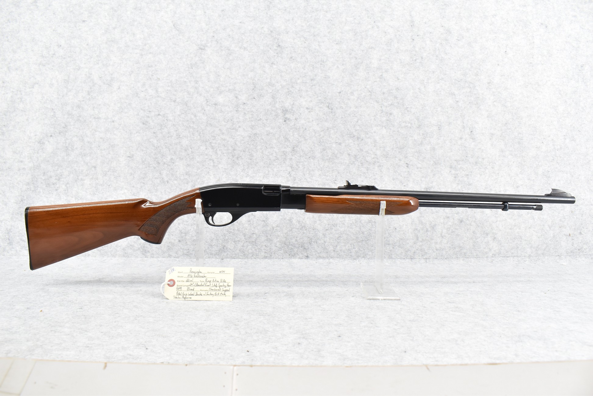 118R. Remington – Mod. 572 Fieldmaster – 22 Cal. Pump Action Rifle – w/24” Barrel w/Beaded Front & Adj. Sporting Rear Sights – Blued Finish – w/Checkered Capped Pistol Grip Wood Stocks w/Factory Butt Plate – w/Tubular Magazine