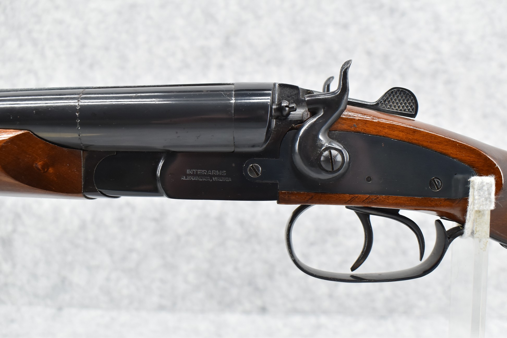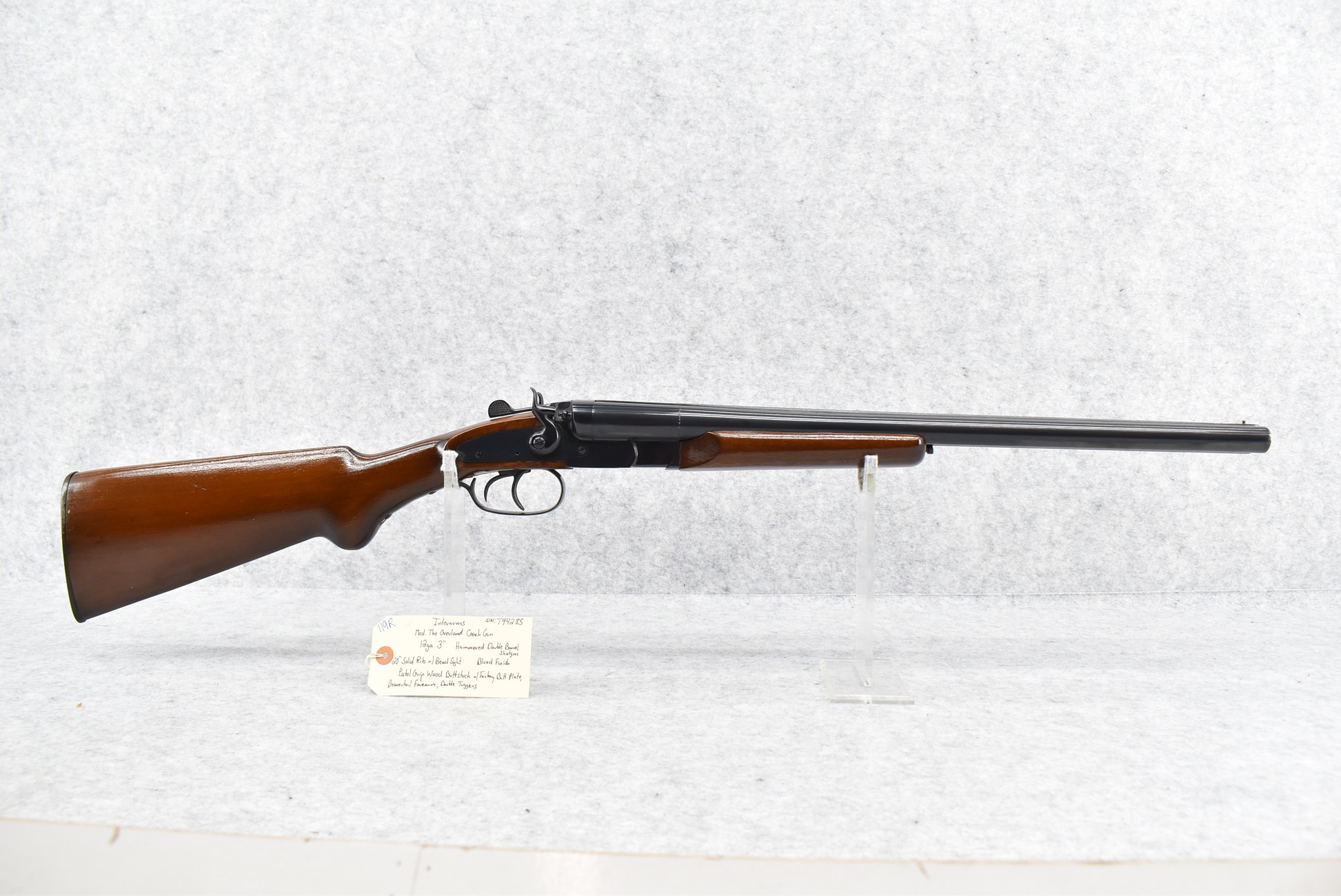 119R. Interarms – Mod. The Overland Coach Gun – 12ga. 3” Hammered Double Barrel Shotgun – w/20” Solid Rib Barrel w/Bead Sight – Blued Finish – w/Pistol Grip Wood Butt Stock w/Factory Butt Plate & Beavertail Forearm – w/Double Triggers