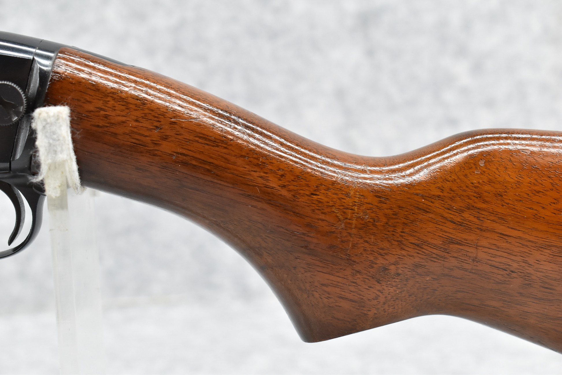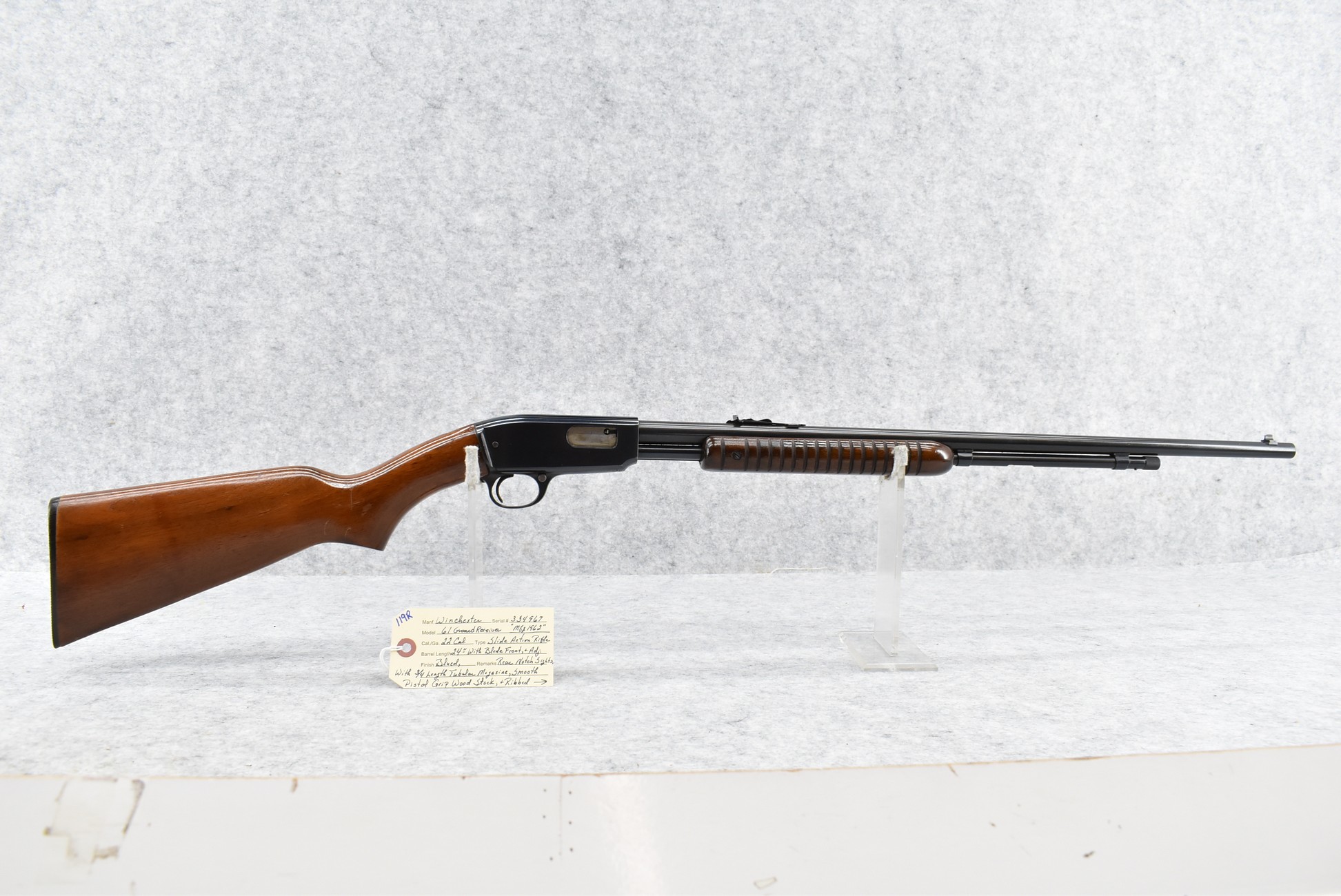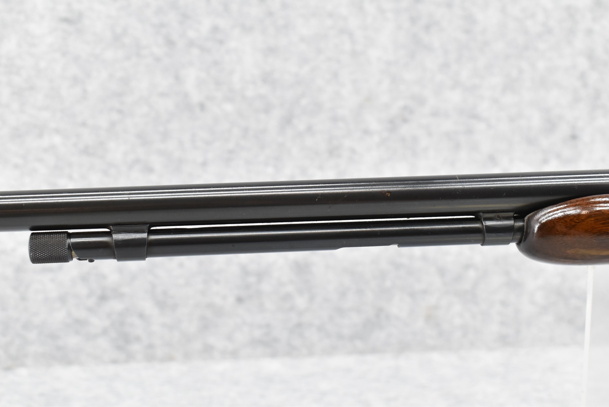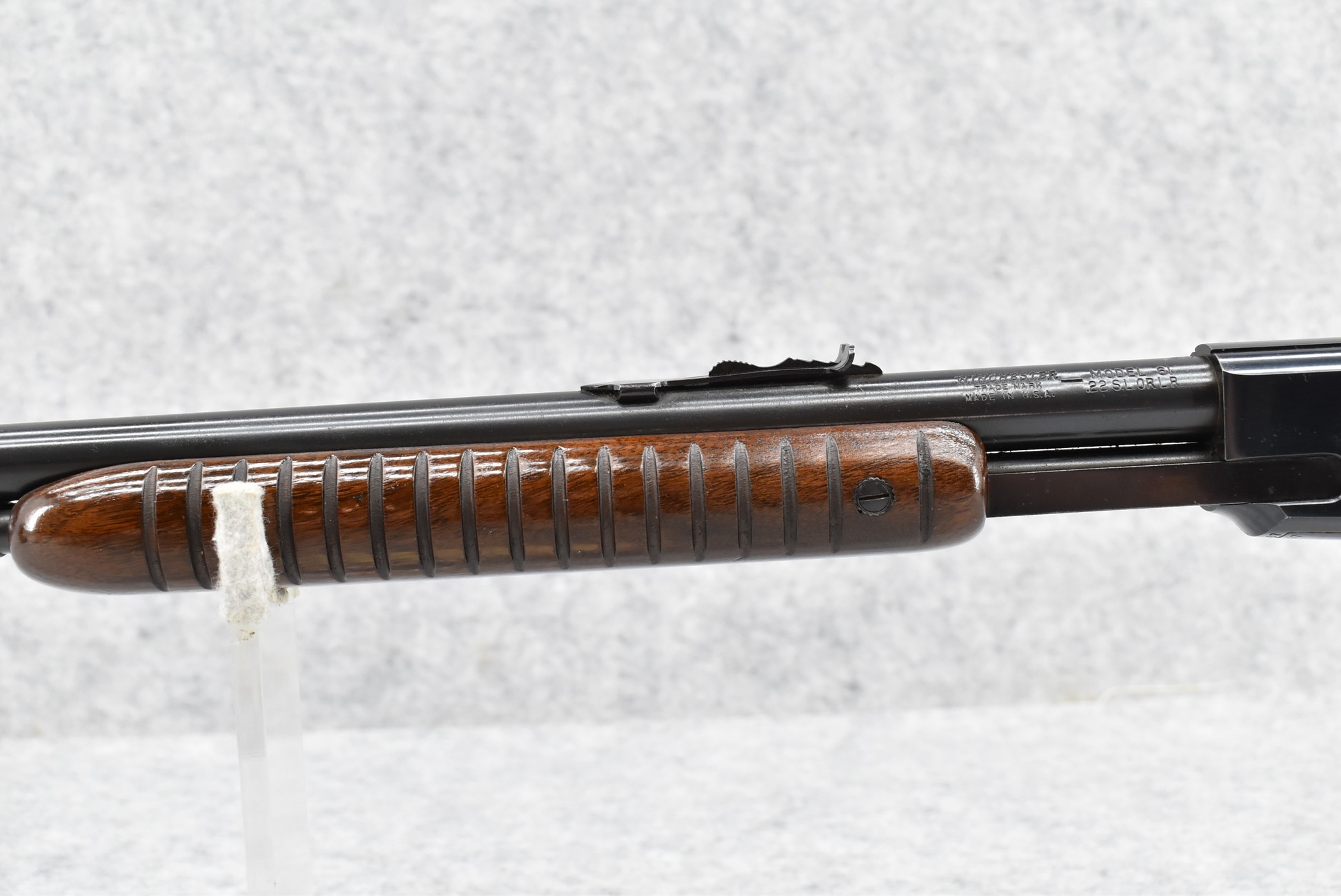 119R. Winchester – Mod. 61 Grooved Receiver – 22 Cal. Pump Action Rifle – w/24” Barrel w/Blade Front & Adj. Rear Notch Sights w/3/4 Length Tubular Magazine – Blued Finish – w/Smooth Pistol Grip Wood Stock & Ribbed Forearm w/Factory Checkered Butt Plate – Mfg. 1962
