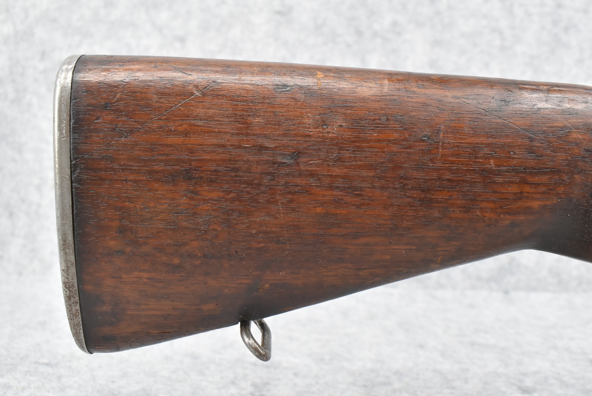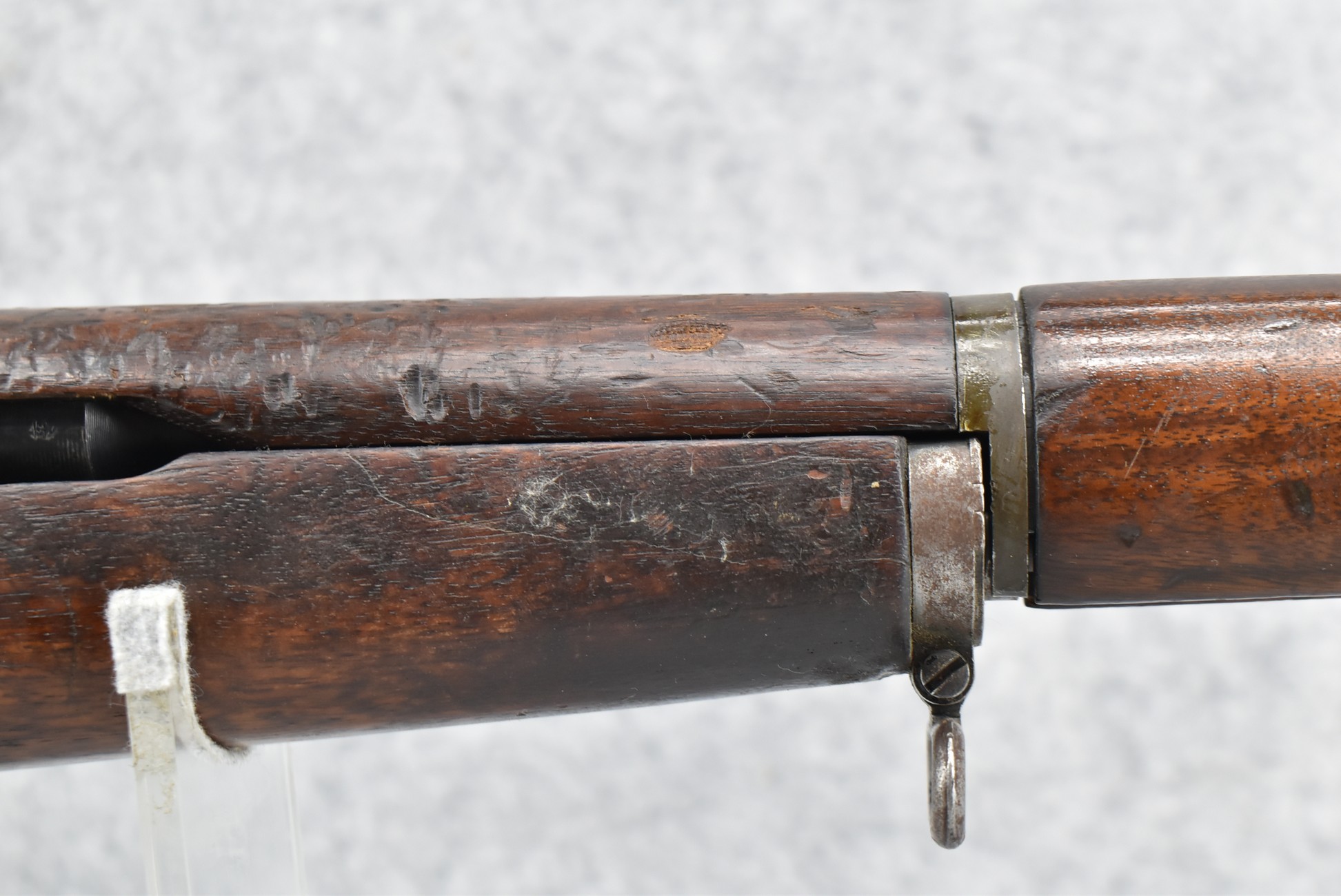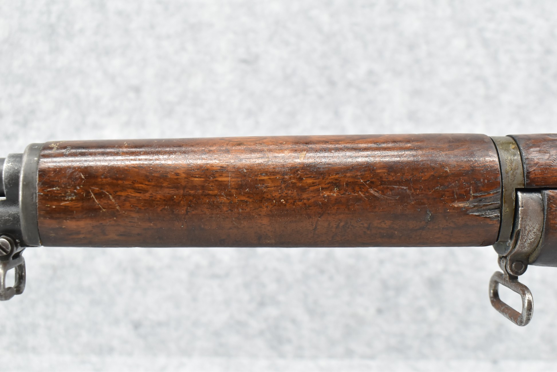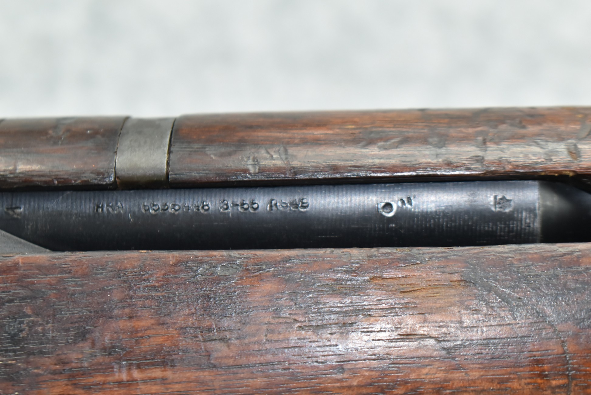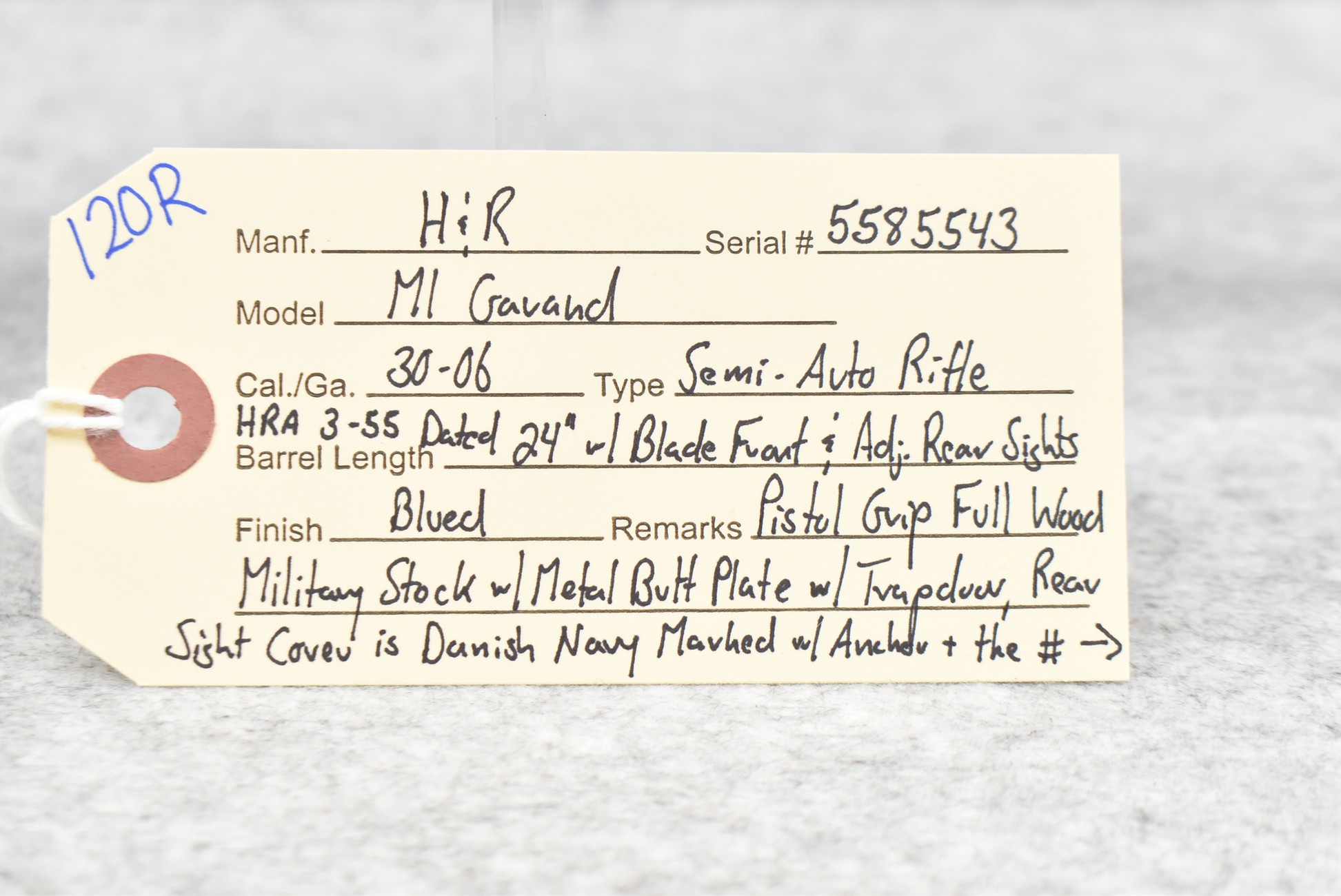 120R. H. & R. – Mod. M1 Garand – 30-06 Cal. Semi-Auto Rifle – w/24” HRA 3-55 Dated Barrel w/Blade Front & Adj. Rear Sights – Blued Finish – w/Pistol Grip Full Wood Military Stock w/Metal Butt Plate w/Trapdoor – Rear Sight Cover is Danish Navy Marked w/Anchor & the # “1275”, Barrel, Bolt, Trigger Housing, Safety & OP Rod Are All HRA