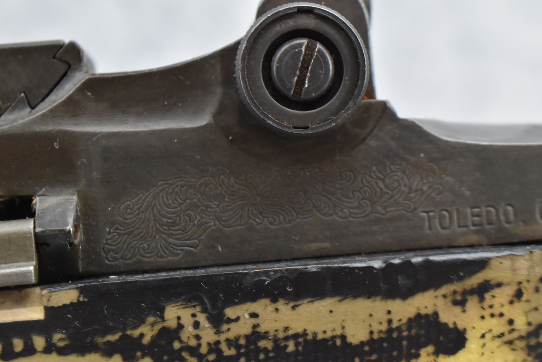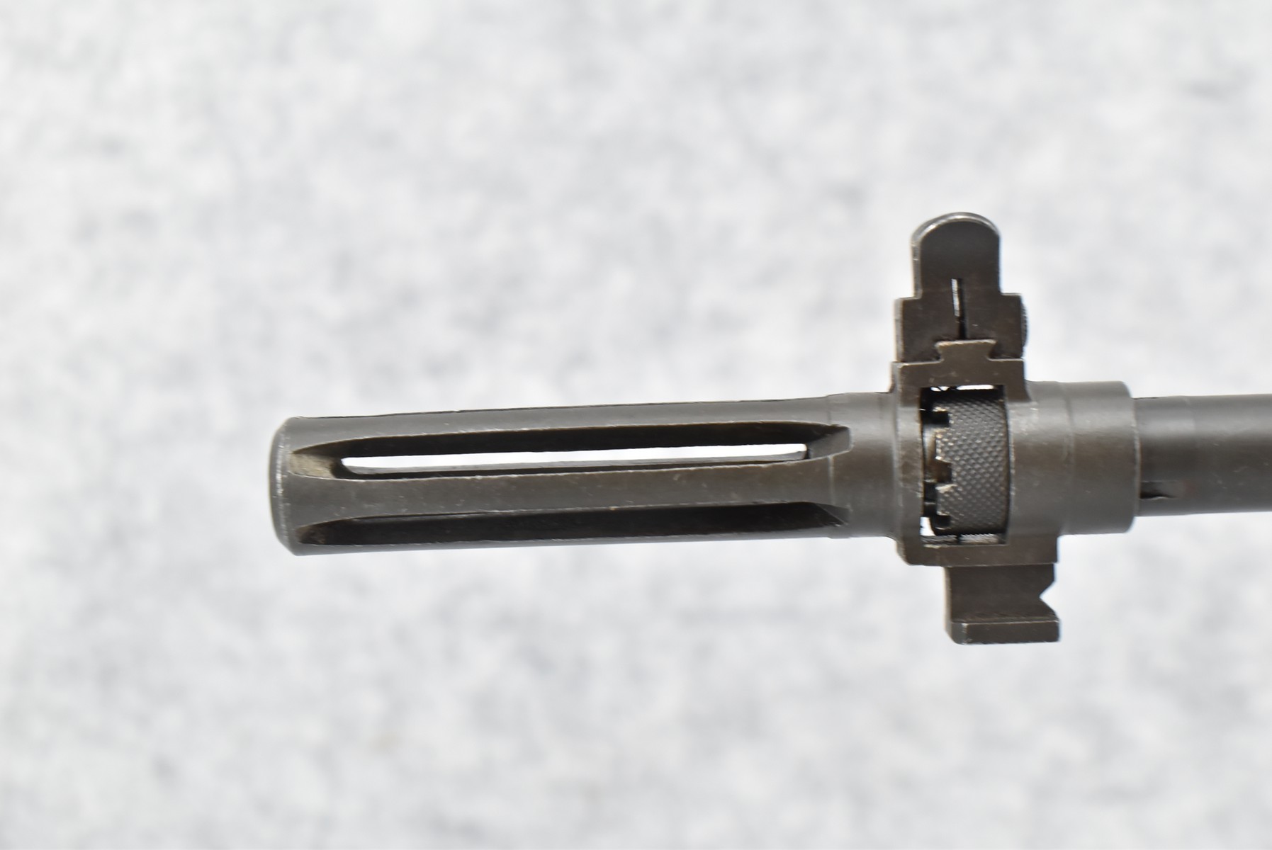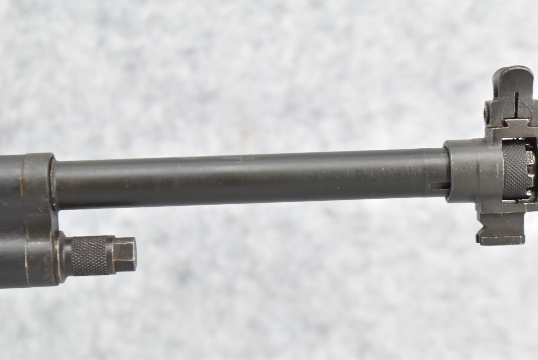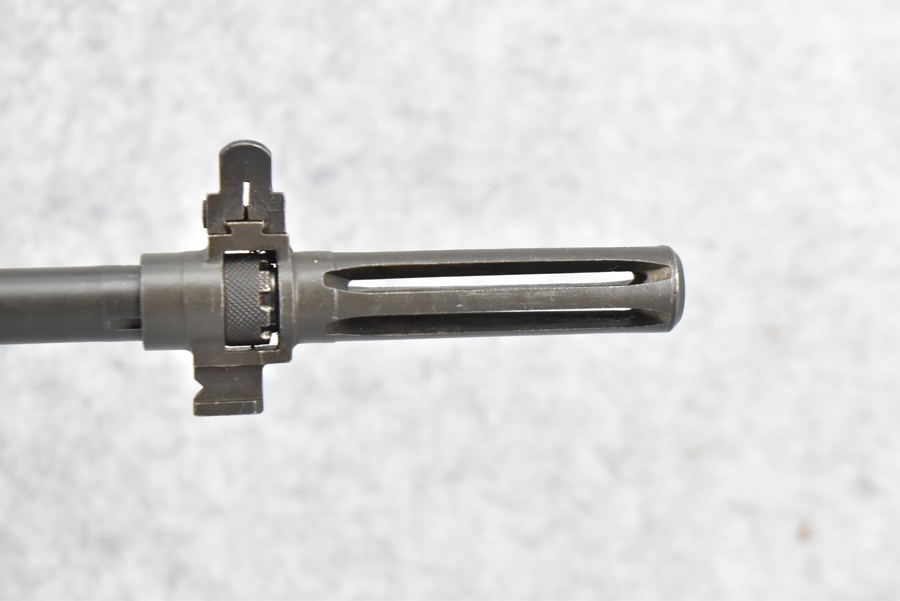 120R. Maunz Mfg. – Mod. 77 (M1A) Match Rifle – 308 Win. Cal. Semi-Auto Rifle – w/25” National Match Barrel Including Flash Hider w/NM Front Sight & HRA w/Fine Adj. Rear Receiver Peep Sight – Matte Blued Finish – w/Synthetic Pistol Grip Stock w/Brown Upper Hand Guard – Left Side of Receiver Marked “Toledo, Ohio” – Maunz Mfg. Guns Were Built in Toledo, OH for High End Military & Law Enforcement Competitions, Based on Primarily M14 Rifle & Built Out of Original GI Parts – This is Serial #42 of Only 50 Mfg. – Circa 1960-1970’s – Note the Engraving on the Left Side of the Receiver (CANNOT GO TO MARYLAND!)