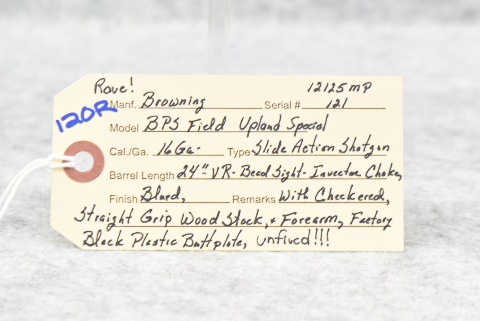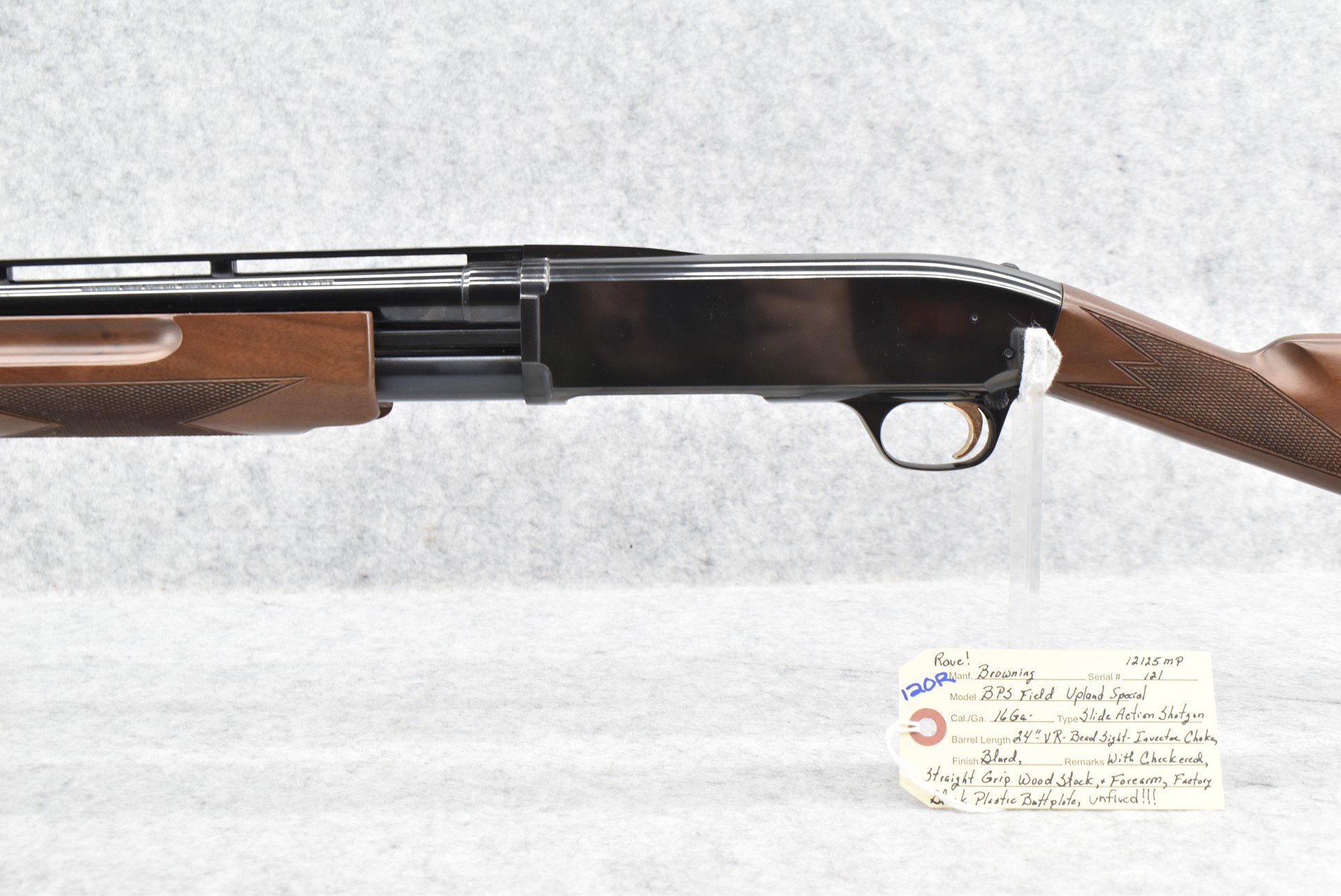 120R. Rare! Browning – Mod. BPS Upland Special – 16ga. Pump Action Shotgun – w/24” Vent Rib Invector Choke Barrel w/Bead Sight – Blued Finish – w/Checkered Straight Grip Wood Stock and Forearm w/Factory Black Plastic Butt Plate – Unfired!!!