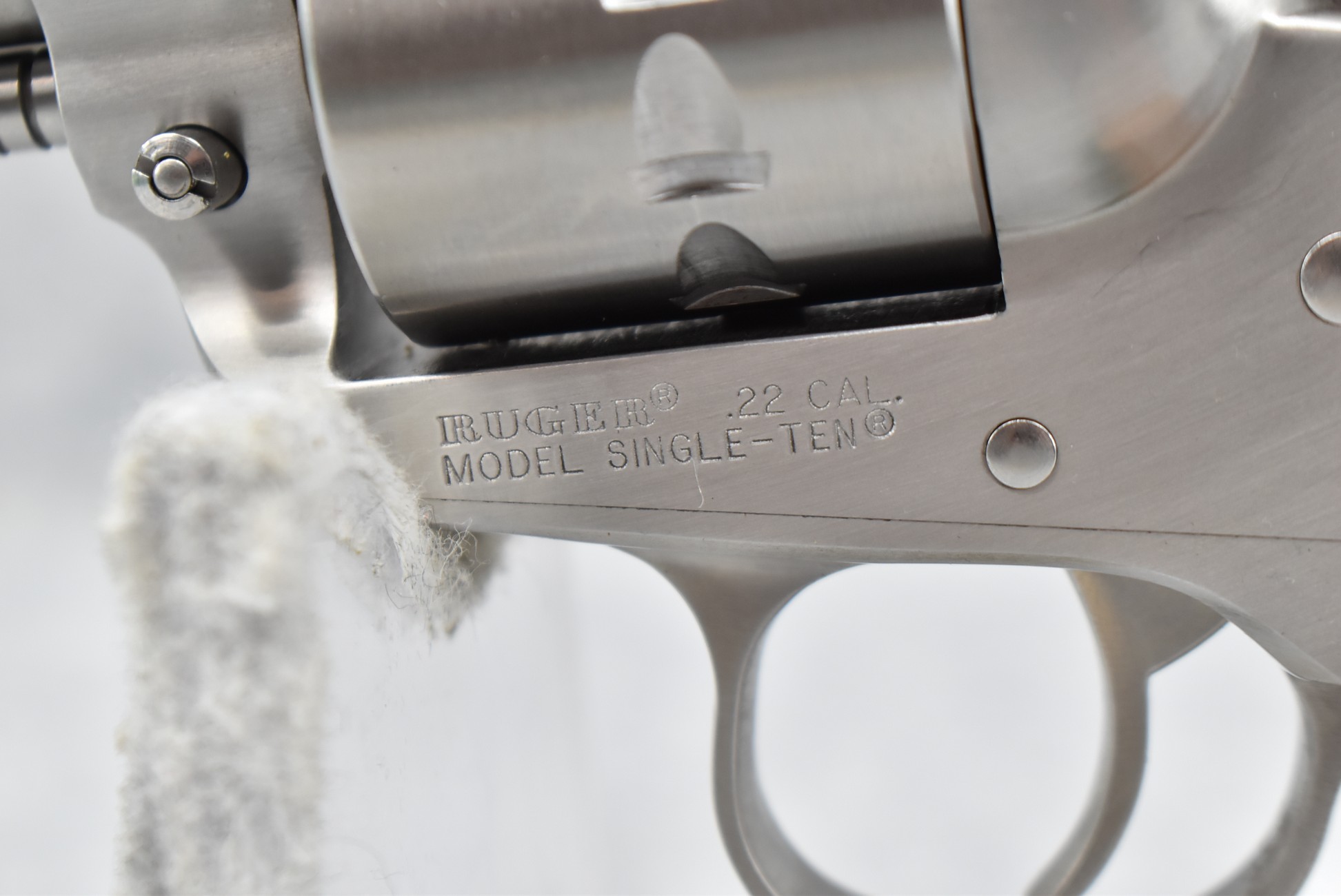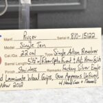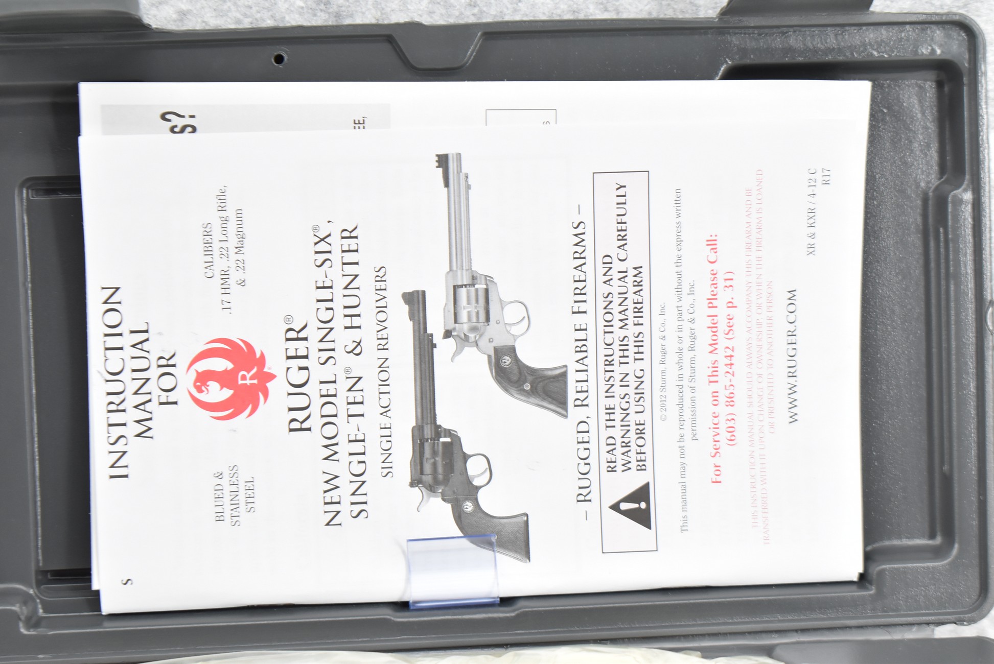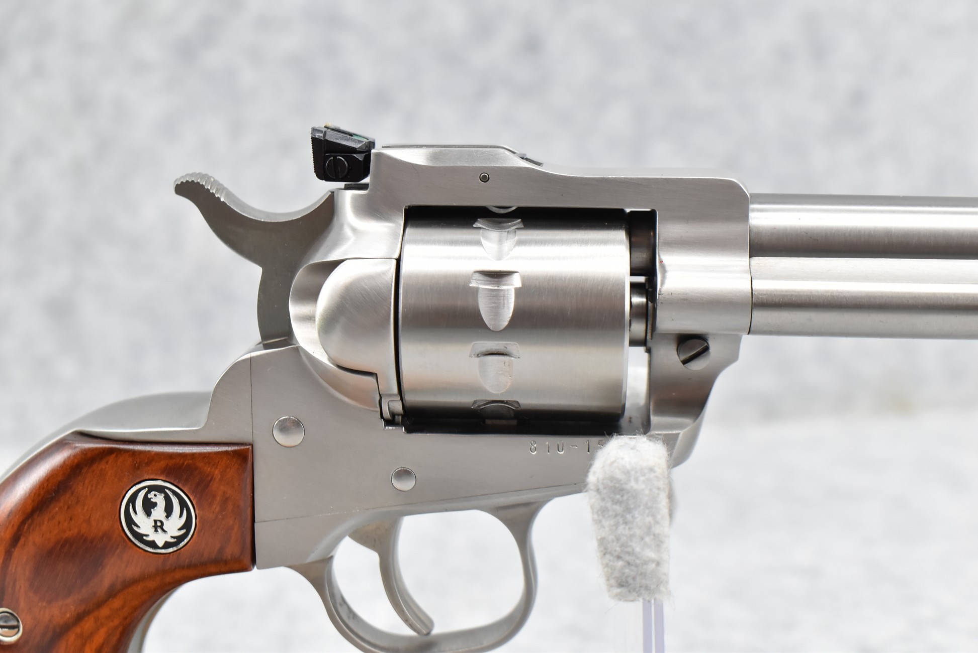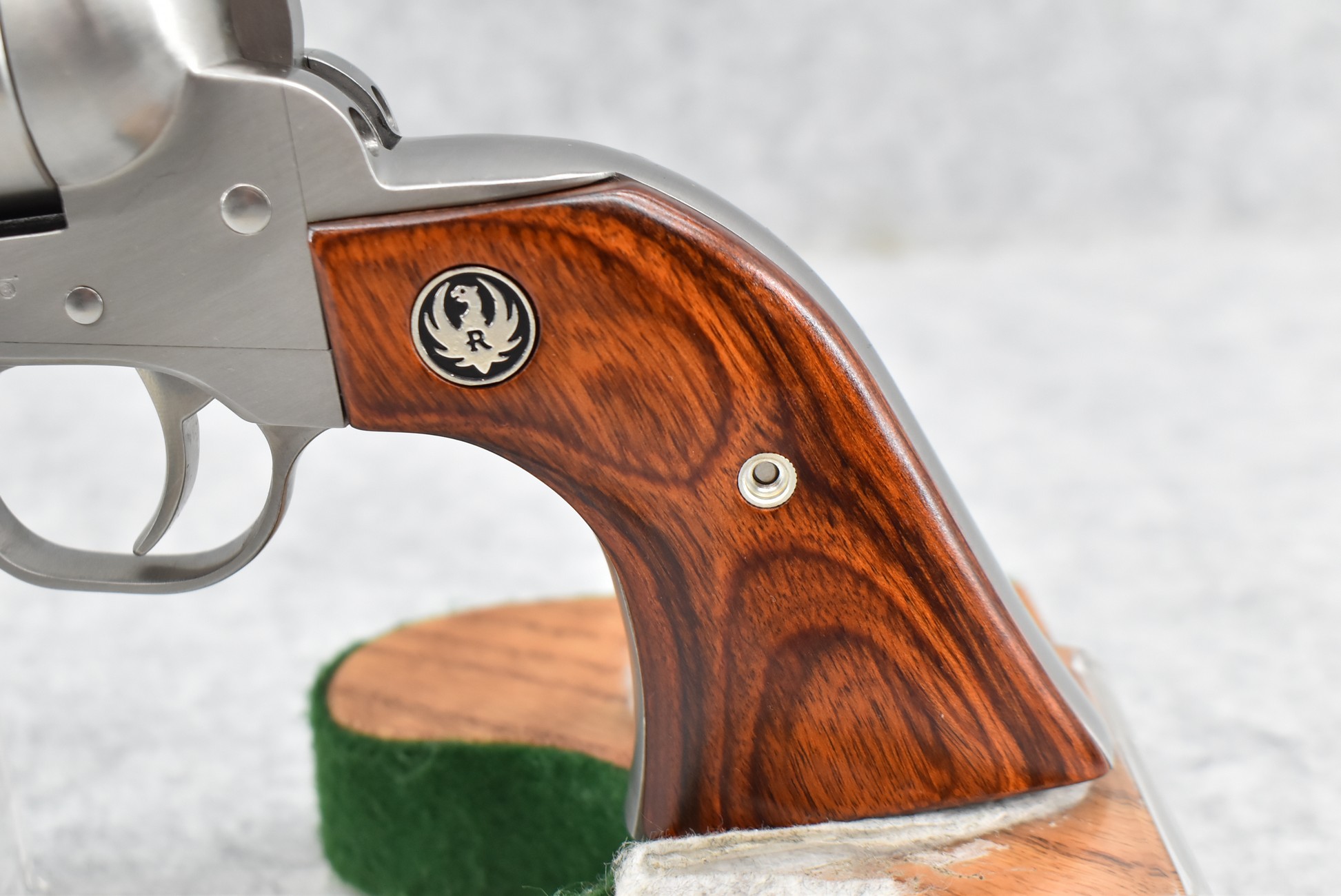 121R. Ruger – Mod. Single Ten – 22 Cal. Single Action Revolver – w/5 ½” Barrel w/Fiber Optic Front & Adj. Rear Sights – Stainless Finish – w/Factory Silver Eagle Red Laminate Wood Grips – Gun Appears Unfired w/Hard Case & Manuals – New for 2012