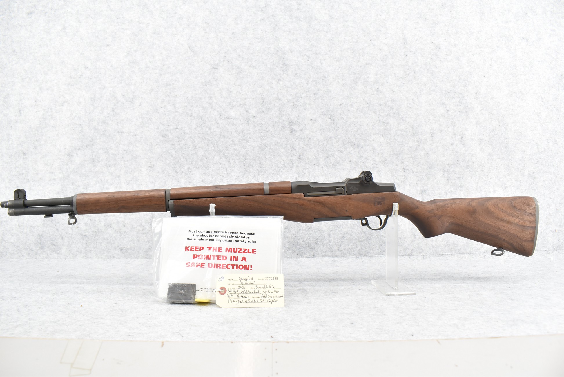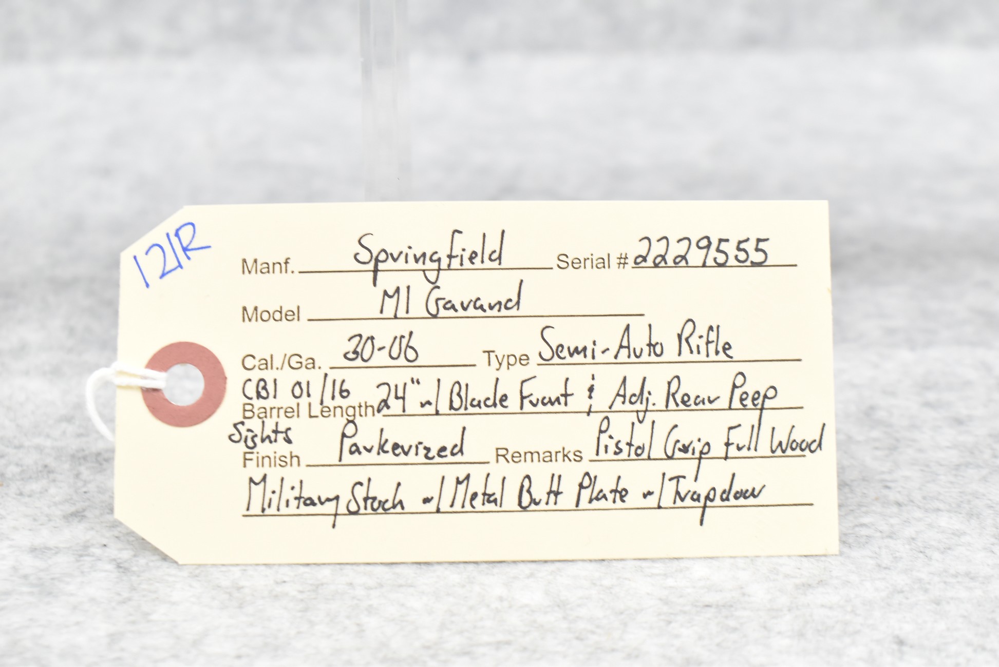 121R. Springfield – Mod. M1 Garand – 30-06 Cal. Semi-Auto Rifle – w/24” CBI 01-16 Dated Barrel w/Blade Front & Adj. Rear Peep Sights – Parkerized Finish – w/Pistol Grip Full Wood Military Stock w/Metal Butt Plate w/Trapdoor