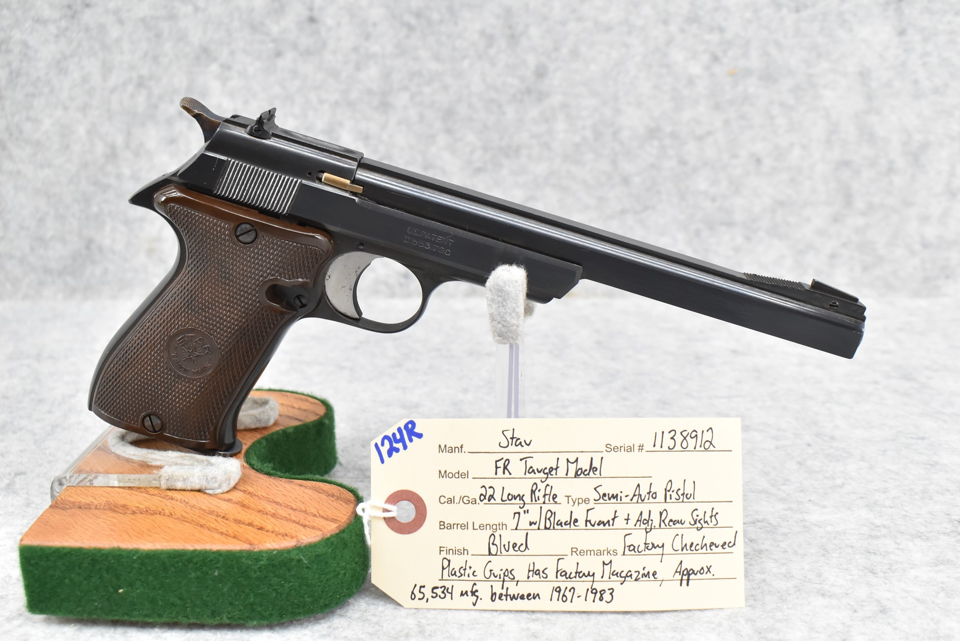 124R. Star – Mod. FR Target Model – 22 Long Rifle Cal. Semi-Auto Pistol – w/7” Barrel w/Blade Front & Adj. Rear Sights – Blued Finish – w/Factory Checkered Plastic Grips – w/Factory Magazine – Approx. 65,534 Mfg. Between 1967-1983