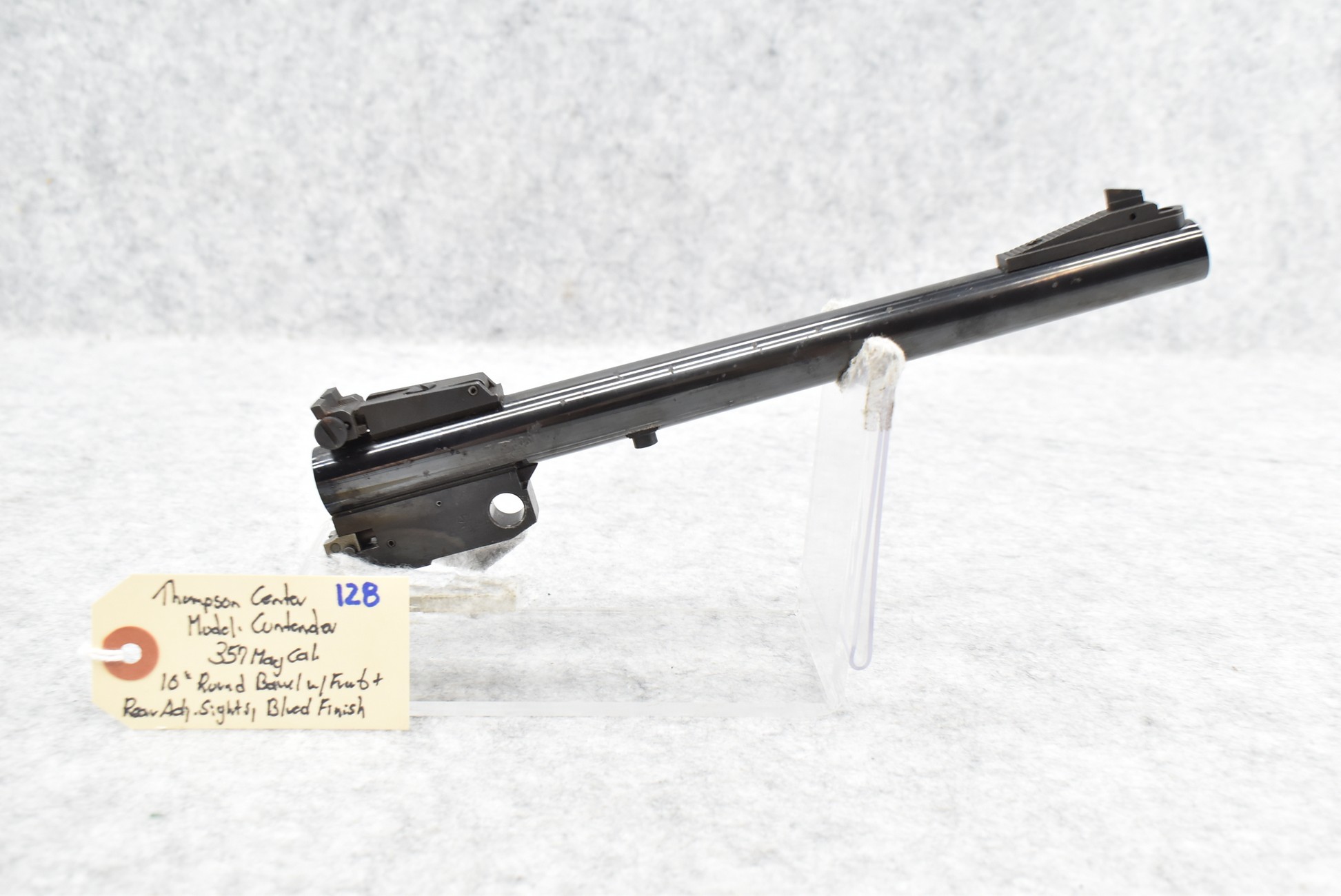 128. Thompson Center – Mod. Contender – 357 Mag. Cal. – 10” Round Barrel Only w/Front and Rear Adjustable Sights – Blued Finish