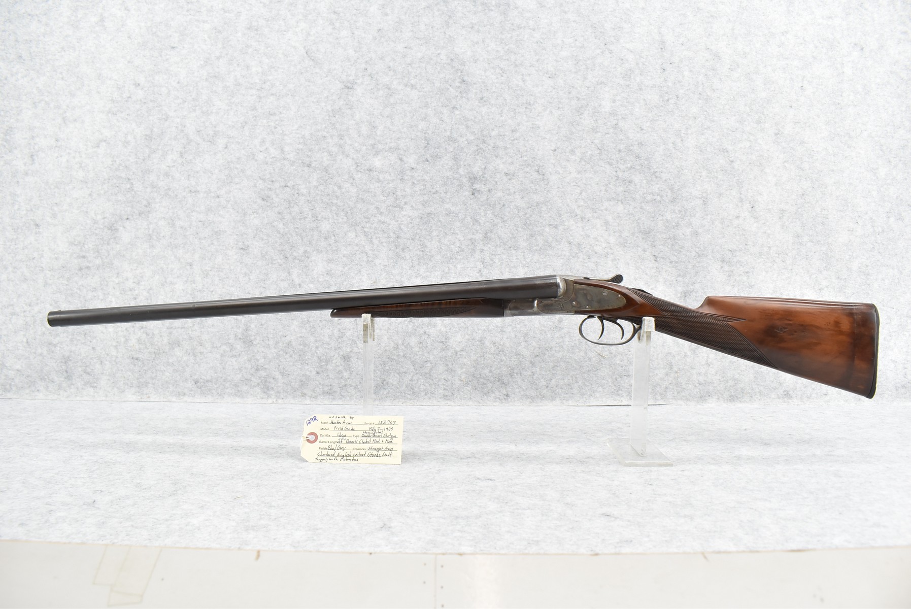 129R. L.C. Smith by Hunter Arms – Mod. Field Grade – 12ga. Hammerless Double Barrel Shotgun – w/26” Mod. & Mod. Choked Barrels – Blued/Gray Finish – w/Straight Grip Checkered English Walnut Stocks – w/Double Triggers – w/Extractors – Mfg. 1937