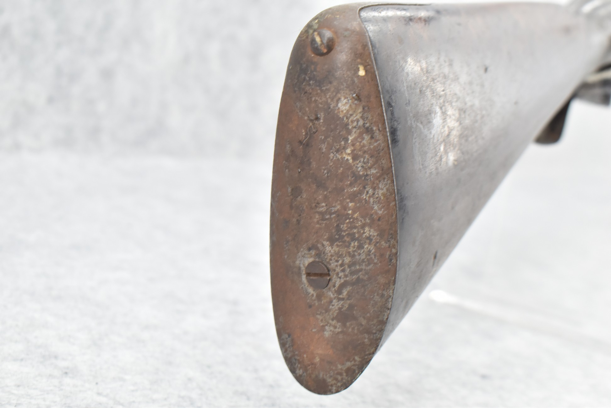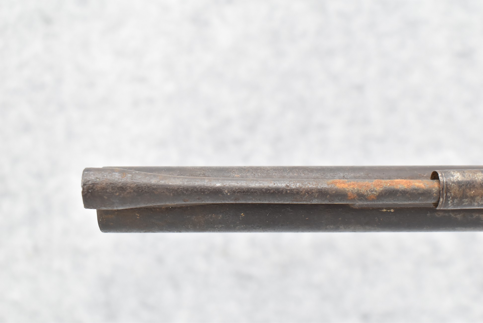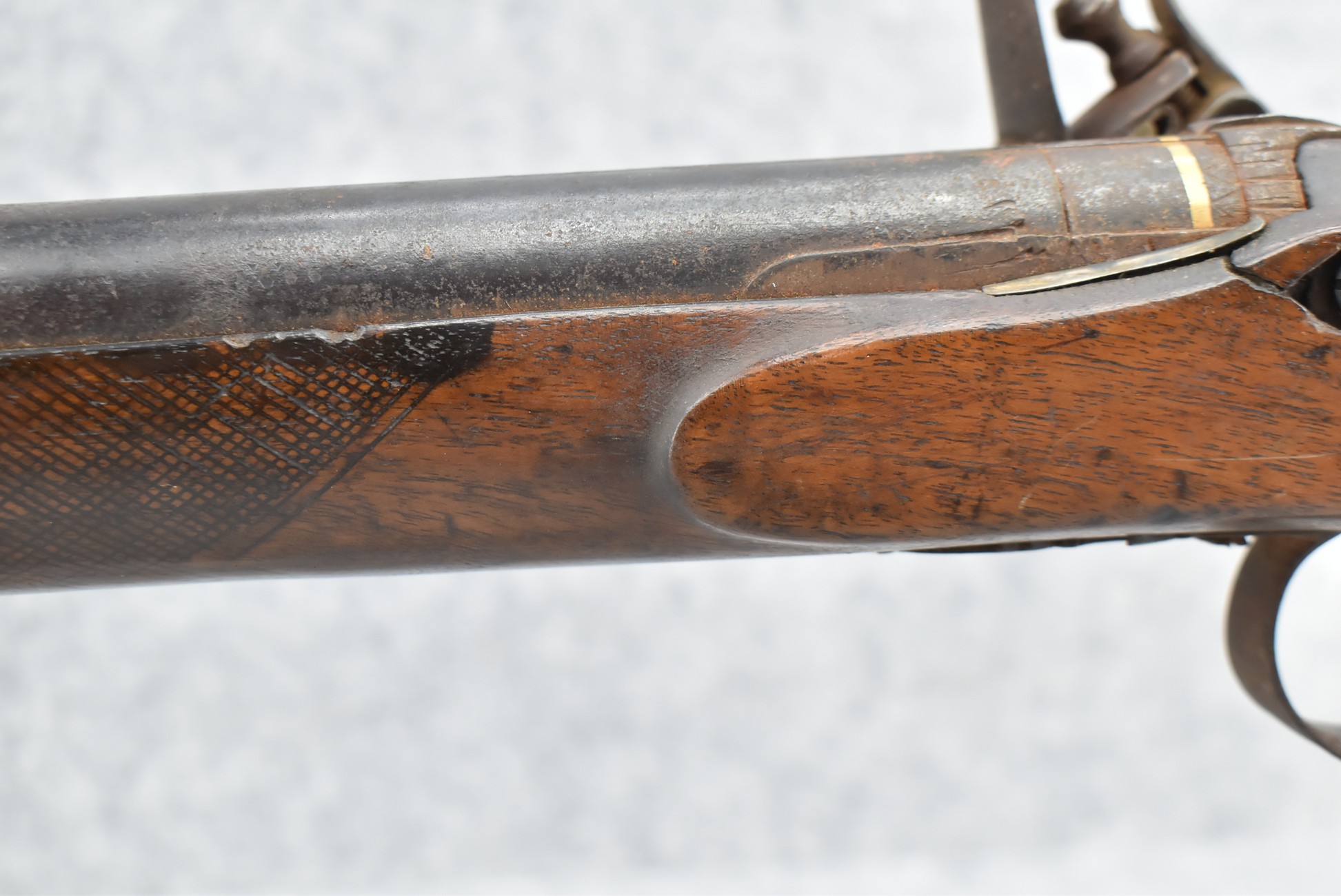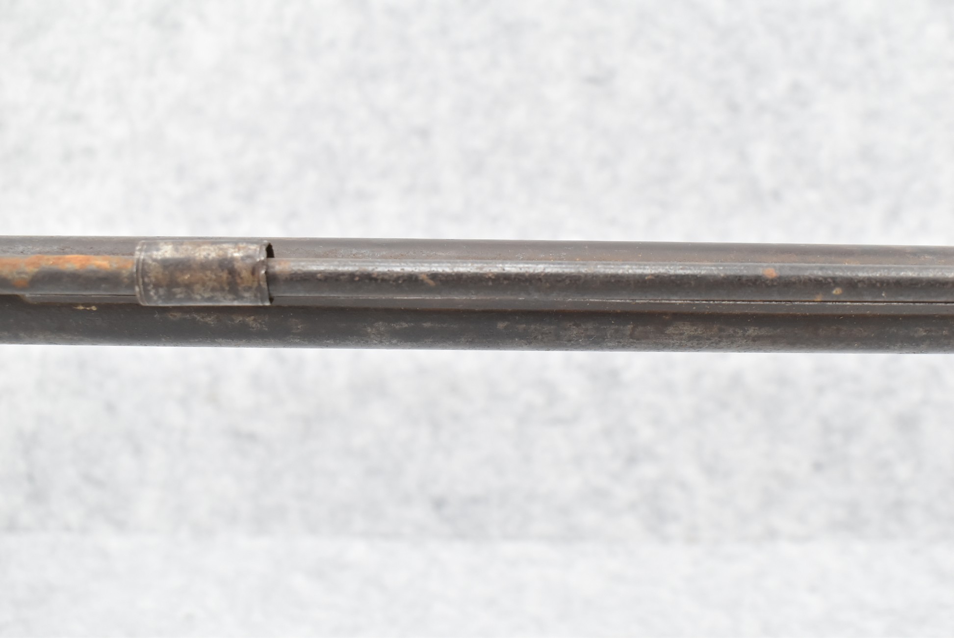 130. 10ga. Half Stock Fowler – w/34 ¼” Round Barrel – Flintlock Lock w/”Reynege” Stamped in Gold – Half Stock w/Checkered Wrist & Fore Stock w/Iron Furniture – w/Iron Ram Rod Pipes – Overall Length of 49”
