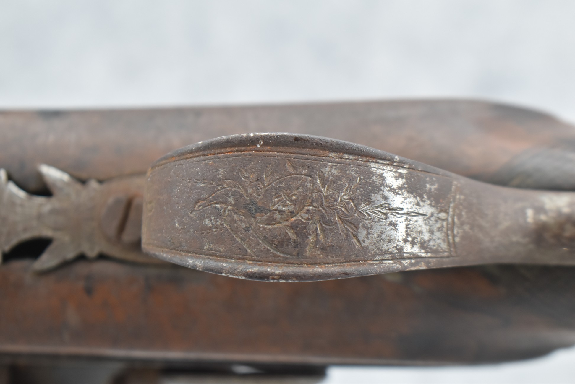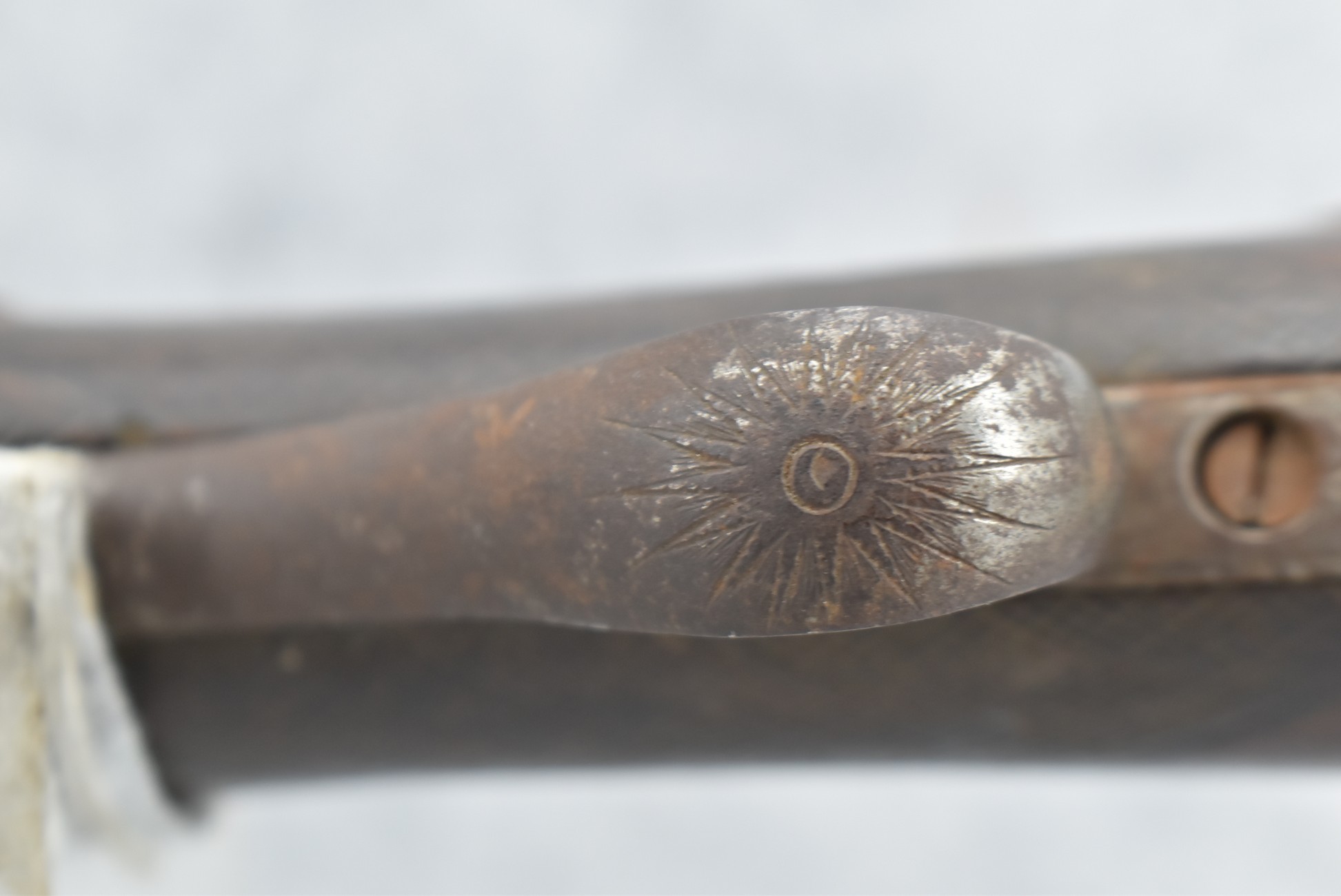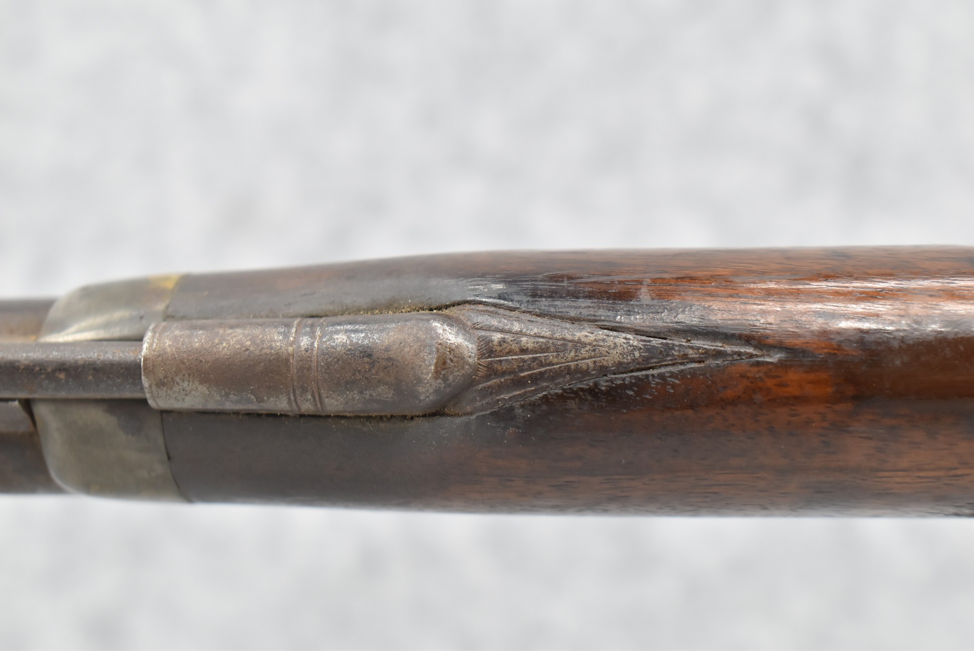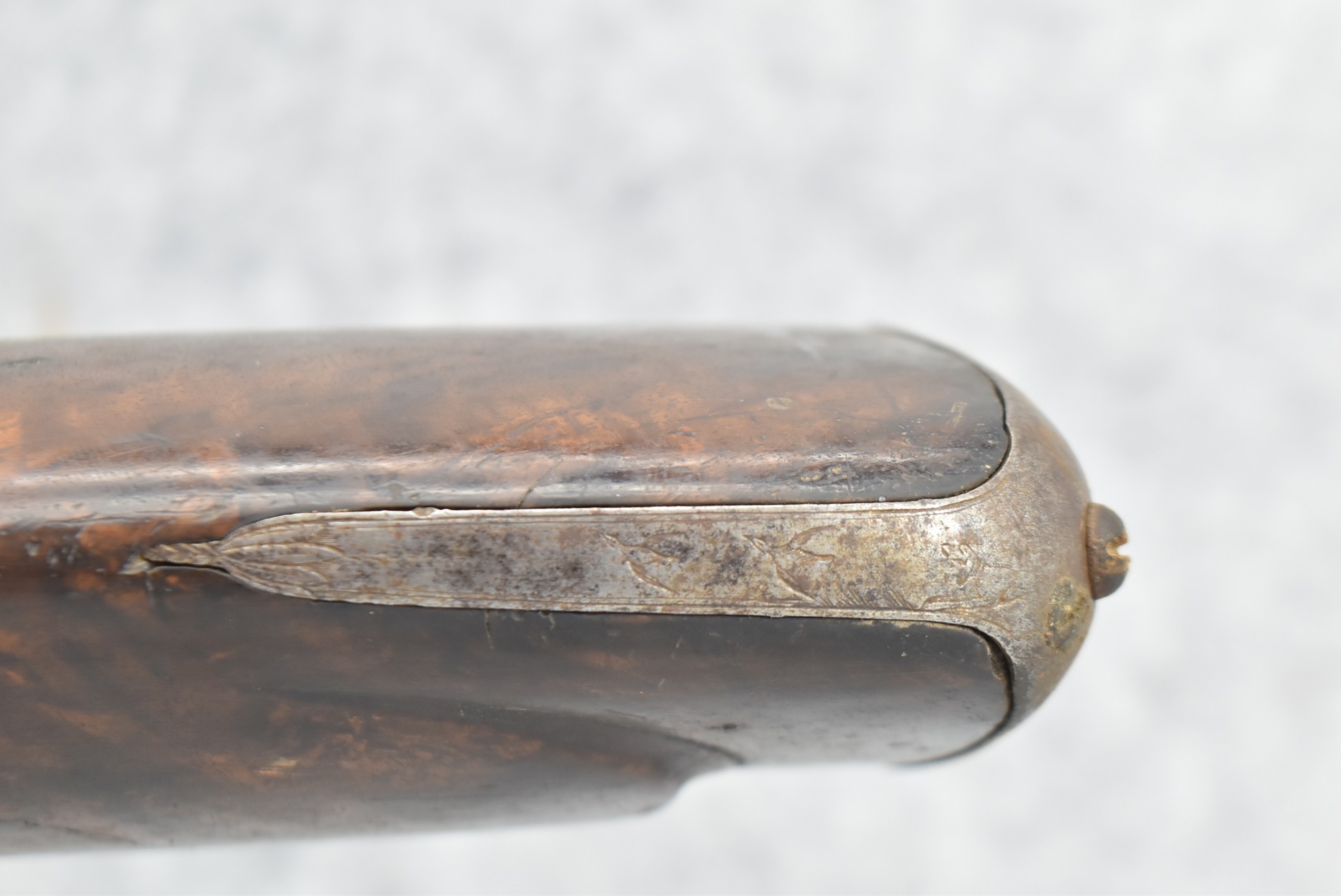 130. 10ga. Half Stock Fowler – w/34 ¼” Round Barrel – Flintlock Lock w/”Reynege” Stamped in Gold – Half Stock w/Checkered Wrist & Fore Stock w/Iron Furniture – w/Iron Ram Rod Pipes – Overall Length of 49”