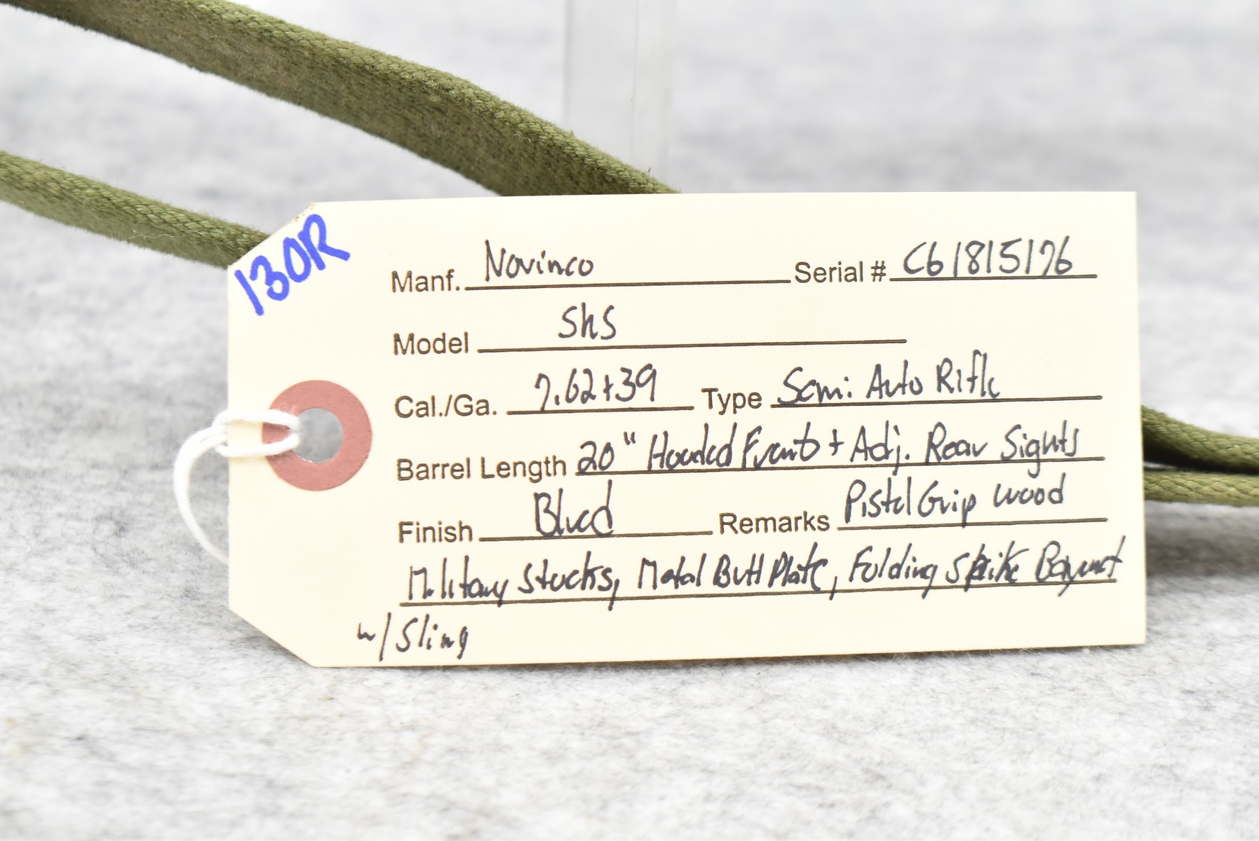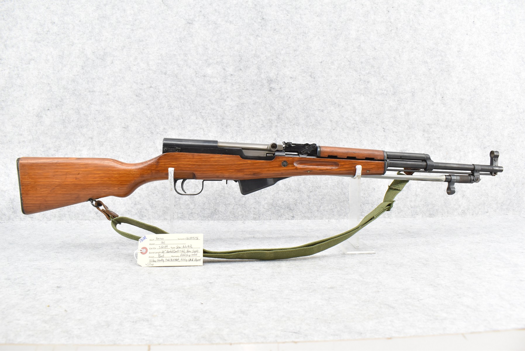 130R. Norinco – Mod. SKS – 762×39 Cal. Semi-Auto Rifle – w/20” Barrel w/Hooded Front & Adj. Rear Sights – Blued Finish – w/Pistol Grip Wood Military Stocks w/Metal Butt Plate – w/Sling – w/Folding Spike Bayonet