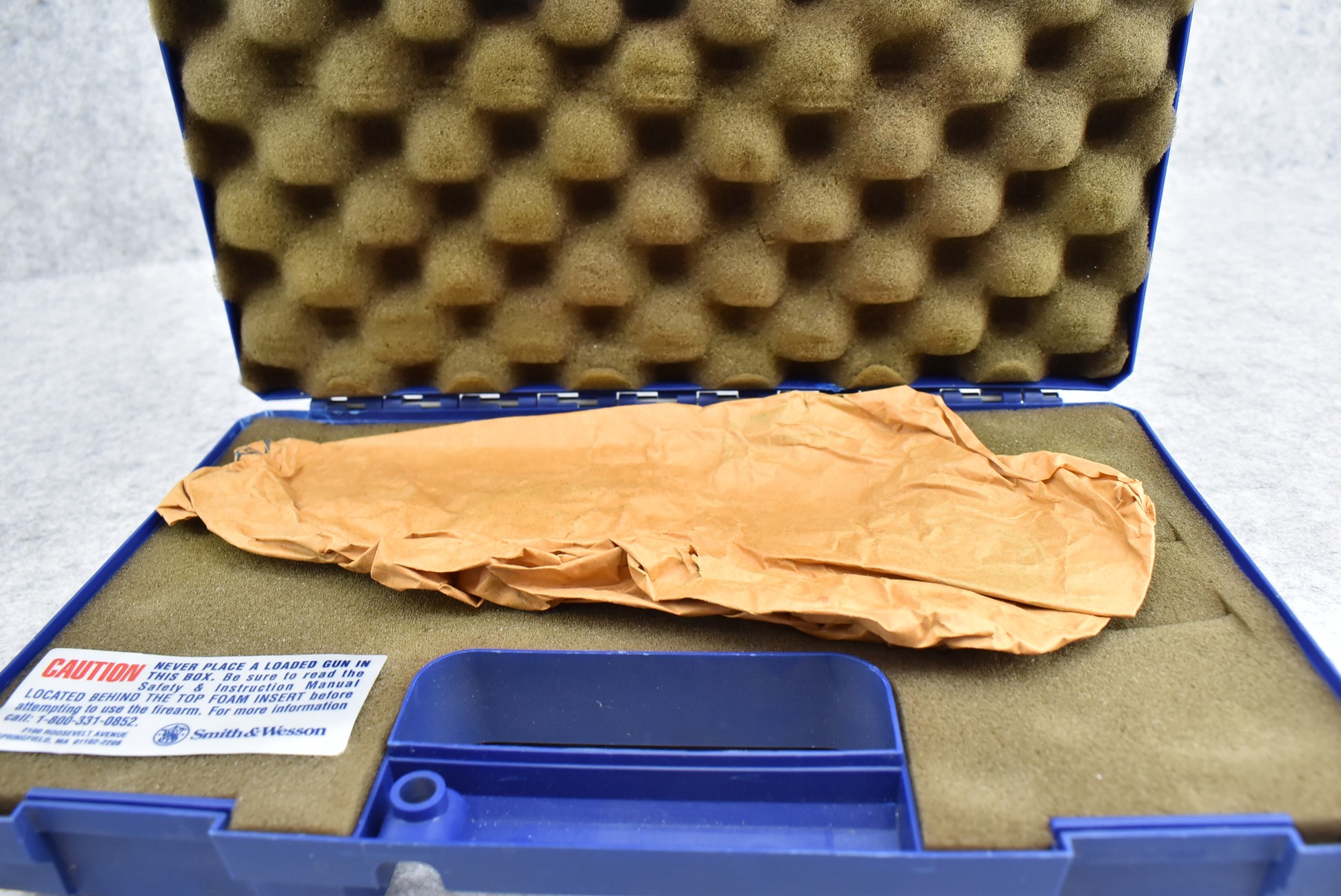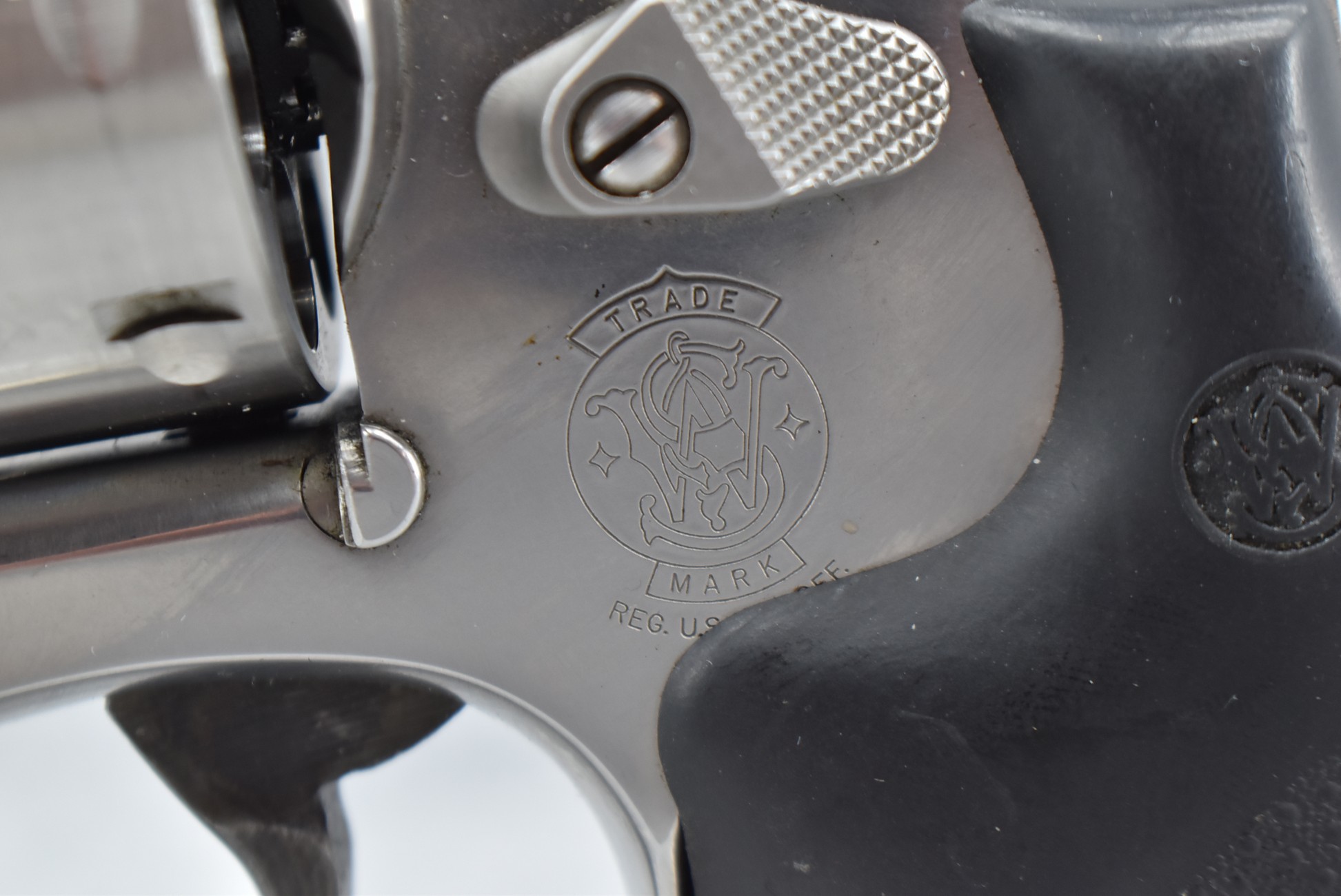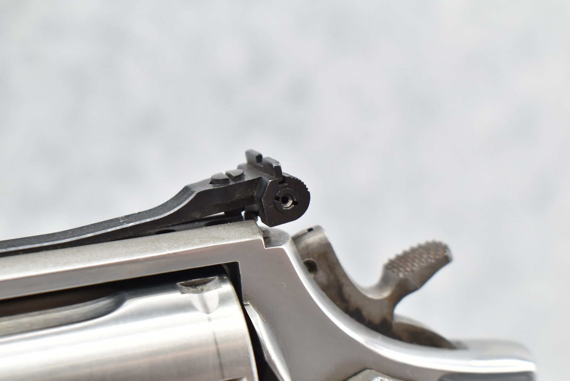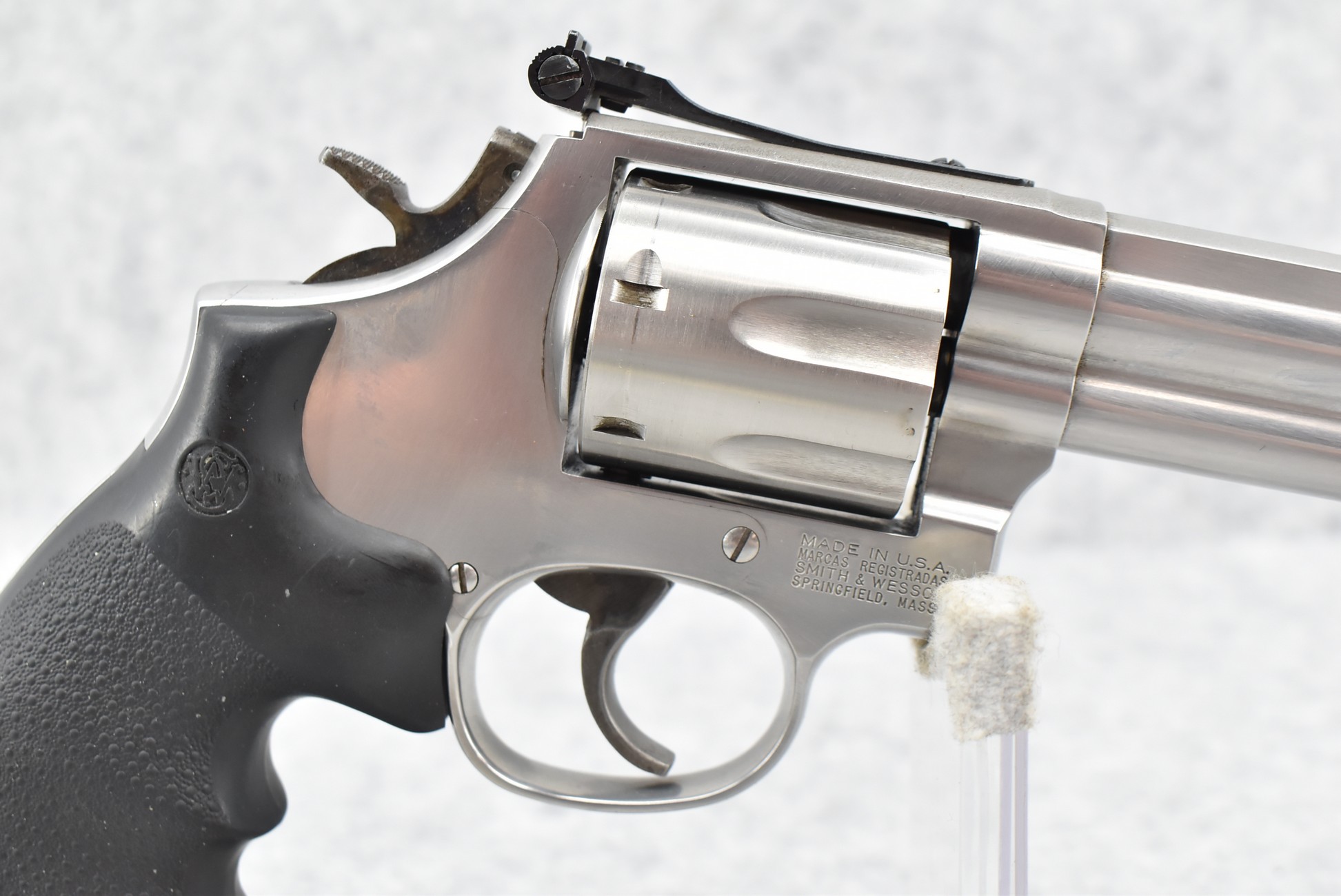 130R. Smith & Wesson – Mod. 686-4 – 357 Mag. Cal. Double Action Revolver – w/6” Barrel w/Red Blade Front & Rear Adj. Sights – Stainless Finish – w/Factory Grooved Rubber Grip – w/Smooth Trigger – w/Semi-Target Hammer – w/Factory Hard Case & Manual – Mfg. Between 1996-2001