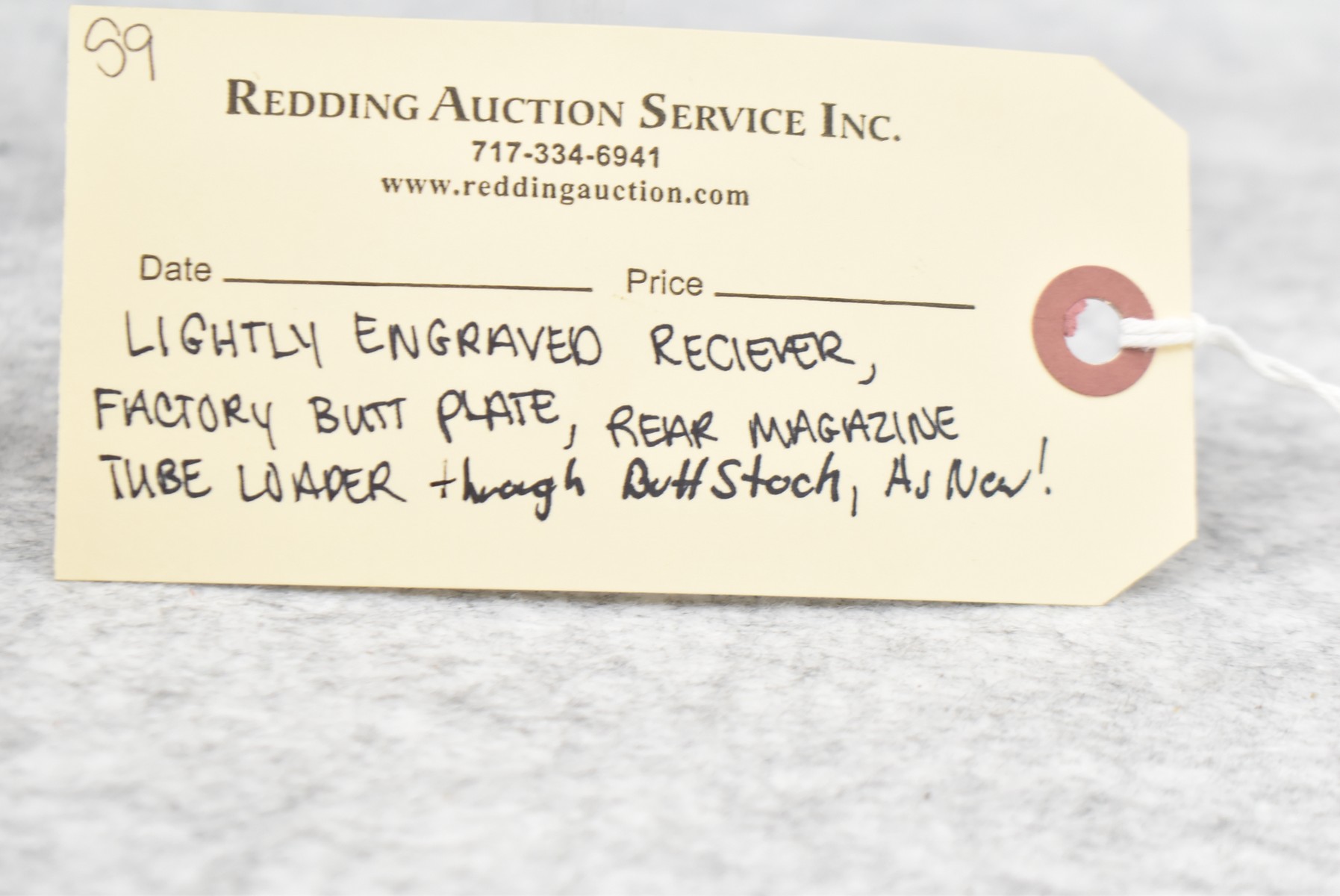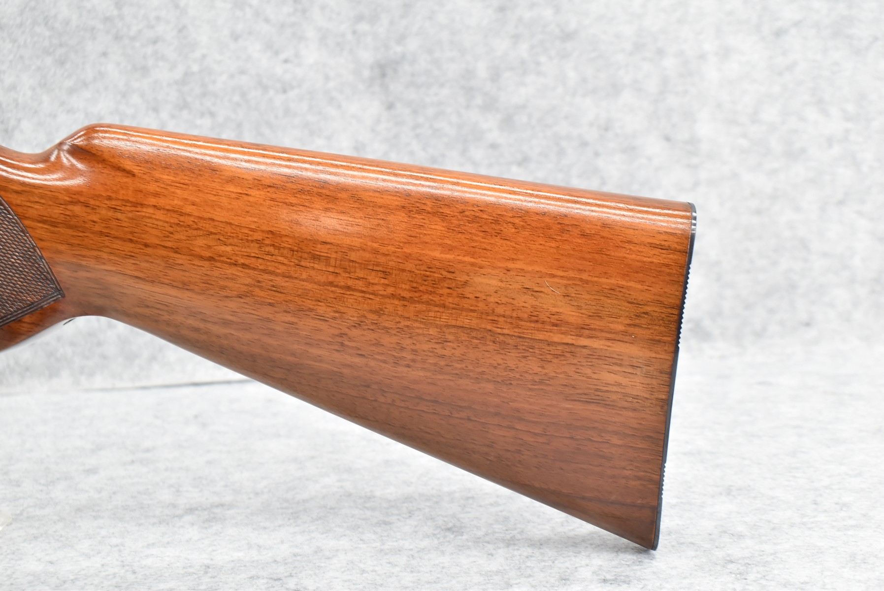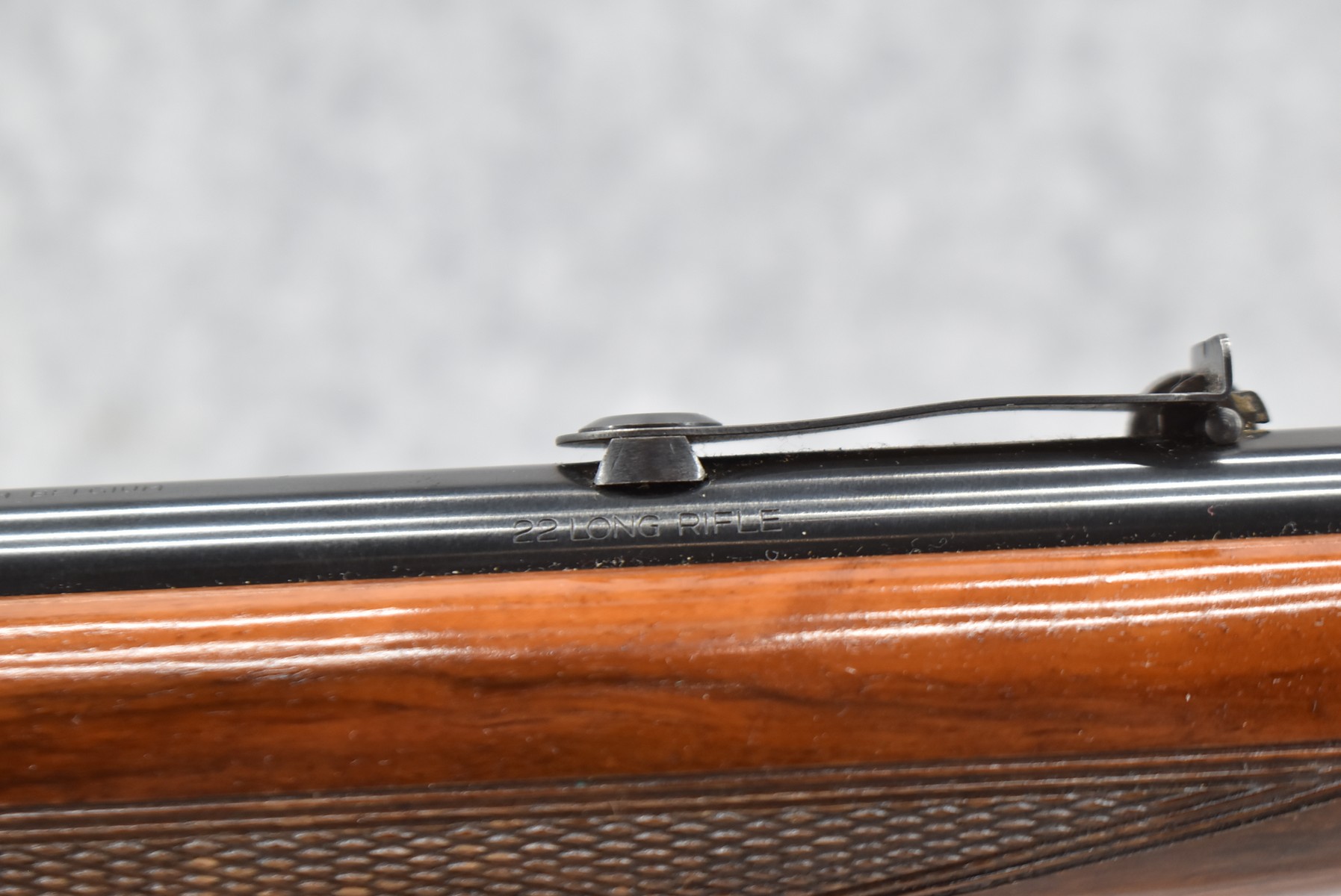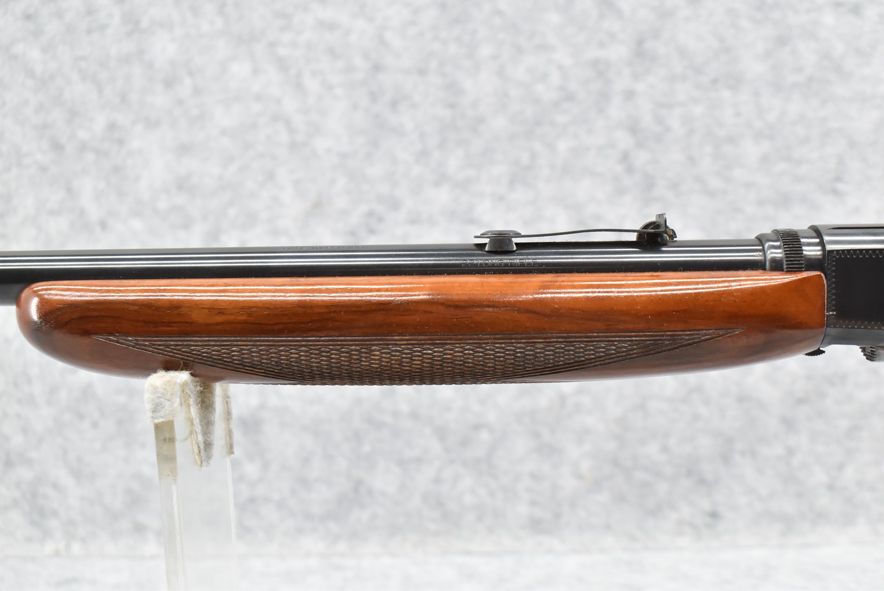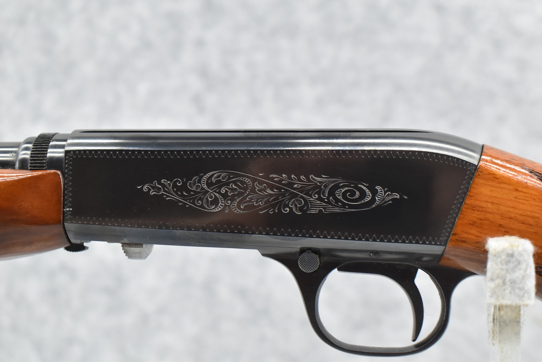131R. Belgian-Browning – Mod. Auto Rifle-SA22 TD – 22LR Cal. Semi-Auto Rifle – w/19 ¼” Barrel w/Front Blade & Scarce Adj. Wheel Rear Sights – Blued Finish – w/Lightly Engraved Receiver – w/Gloss Finish Checkered Wood Pistol Grip Stocks w/Factory Butt Plate & Semi-Beavertail Checkered Wood Forearm – w/Tubular Magazine Loaded Through Butt Stock – Mfg. 1956 – As New!