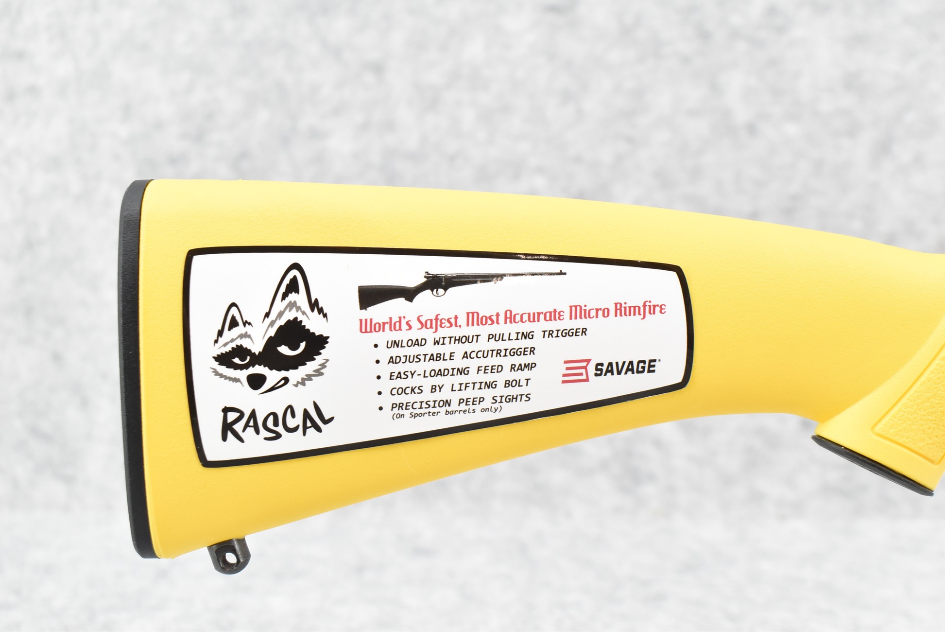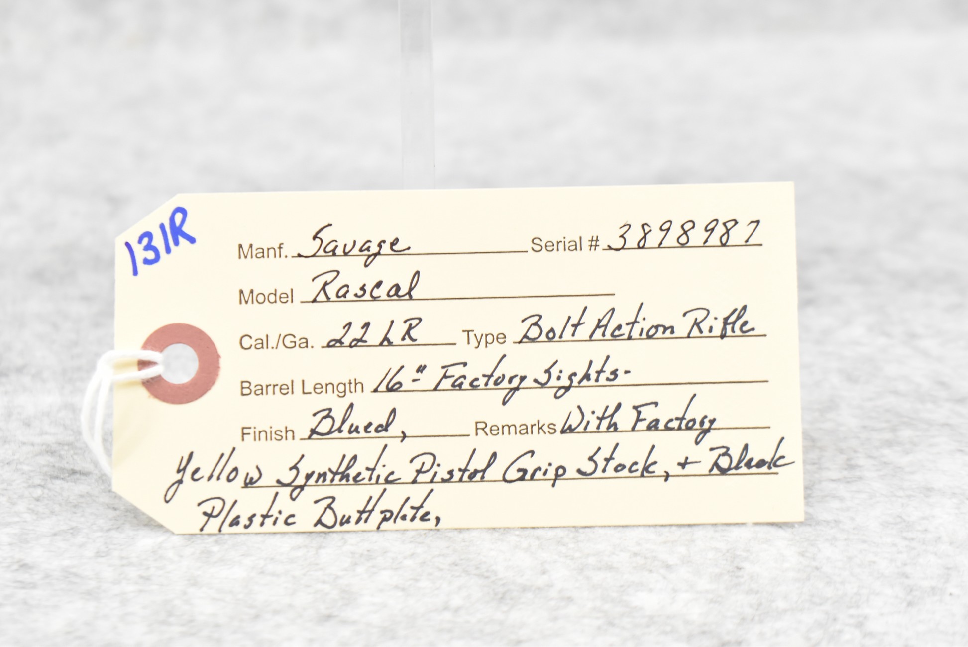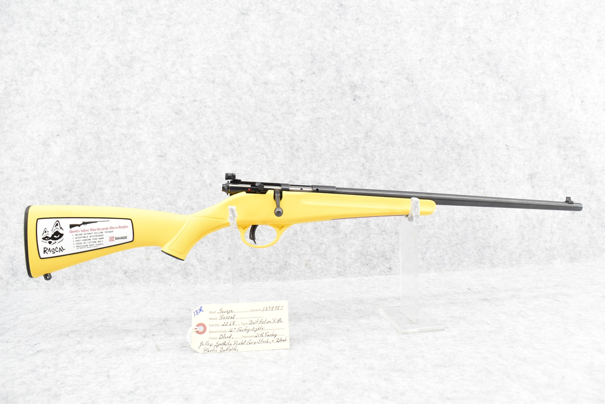 131R. Savage – Mod. Rascal – 22LR Cal. Bolt Action Rifle – w/16” Barrel w/Factory Sights – Blued Finish – w/Factory Yellow Synthetic Pistol Grip Stock w/Butt Plate