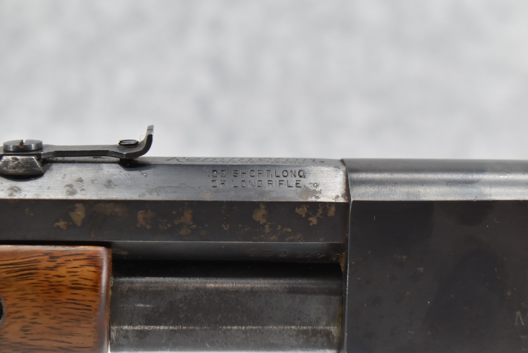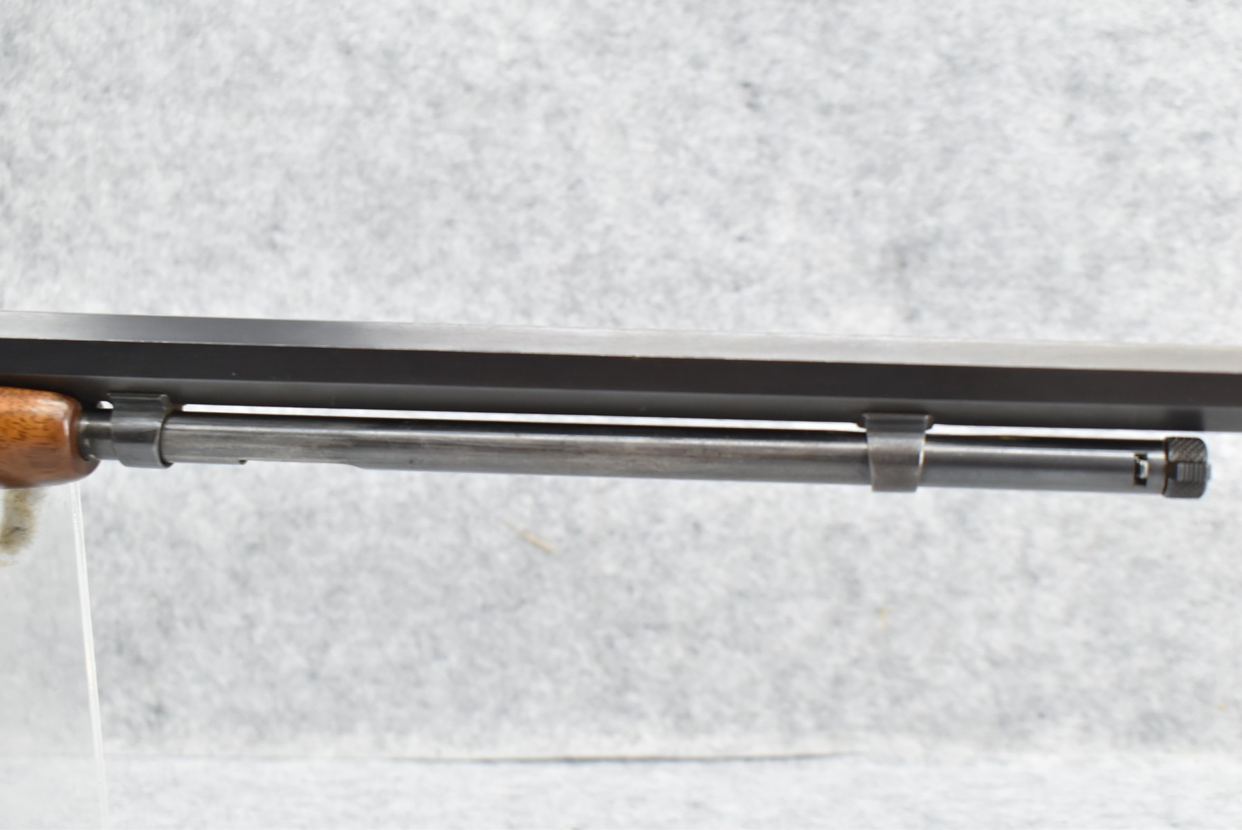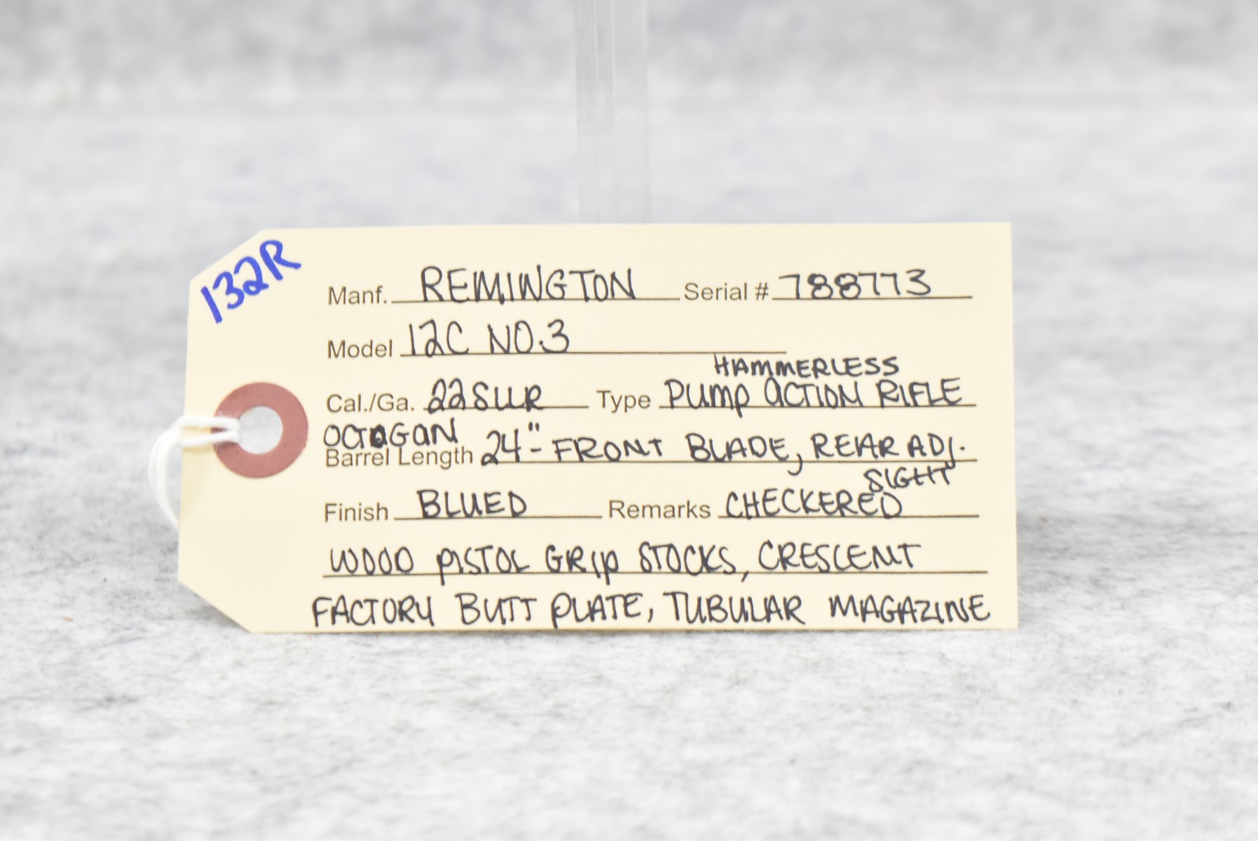 132R. Remington – Mod. 12C No3 – 22 Cal. Hammerless Pump Action Rifle – w/24” Octagon Barrel w/Front Blade & Rear Adj. Sights – Blued Finish – w/Checkered Straight Wood Pistol Grip Stocks w/Crescent Factory Butt Plate – w/Tubular Magazine