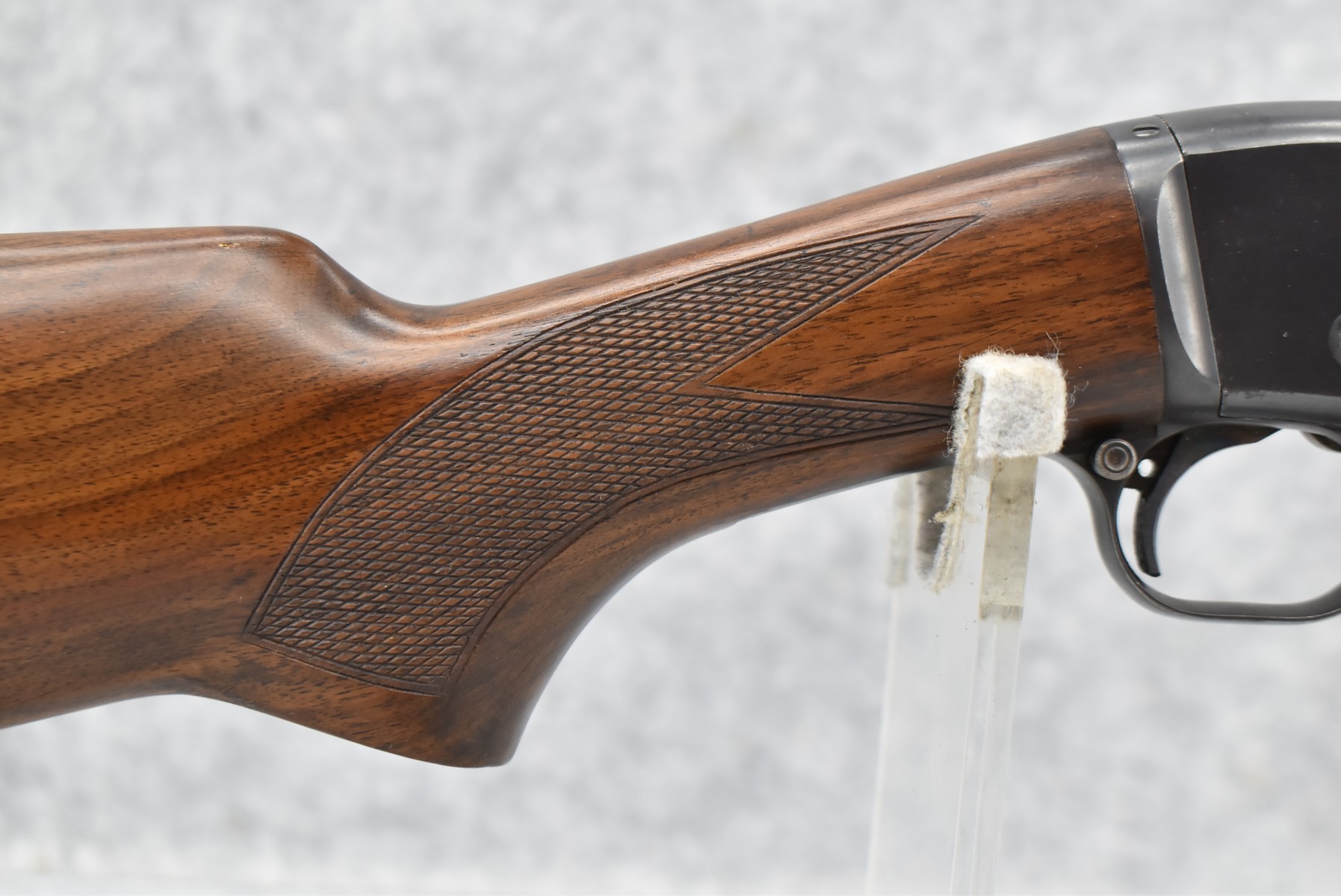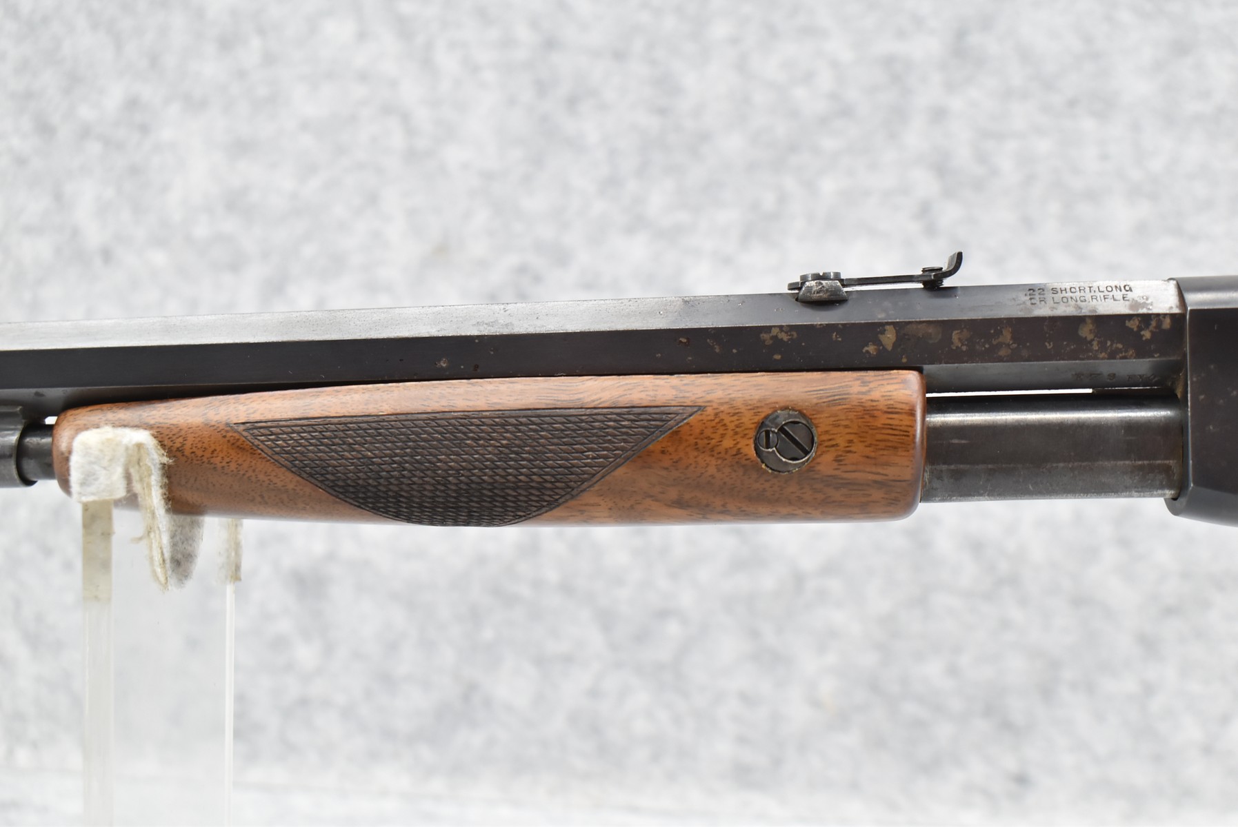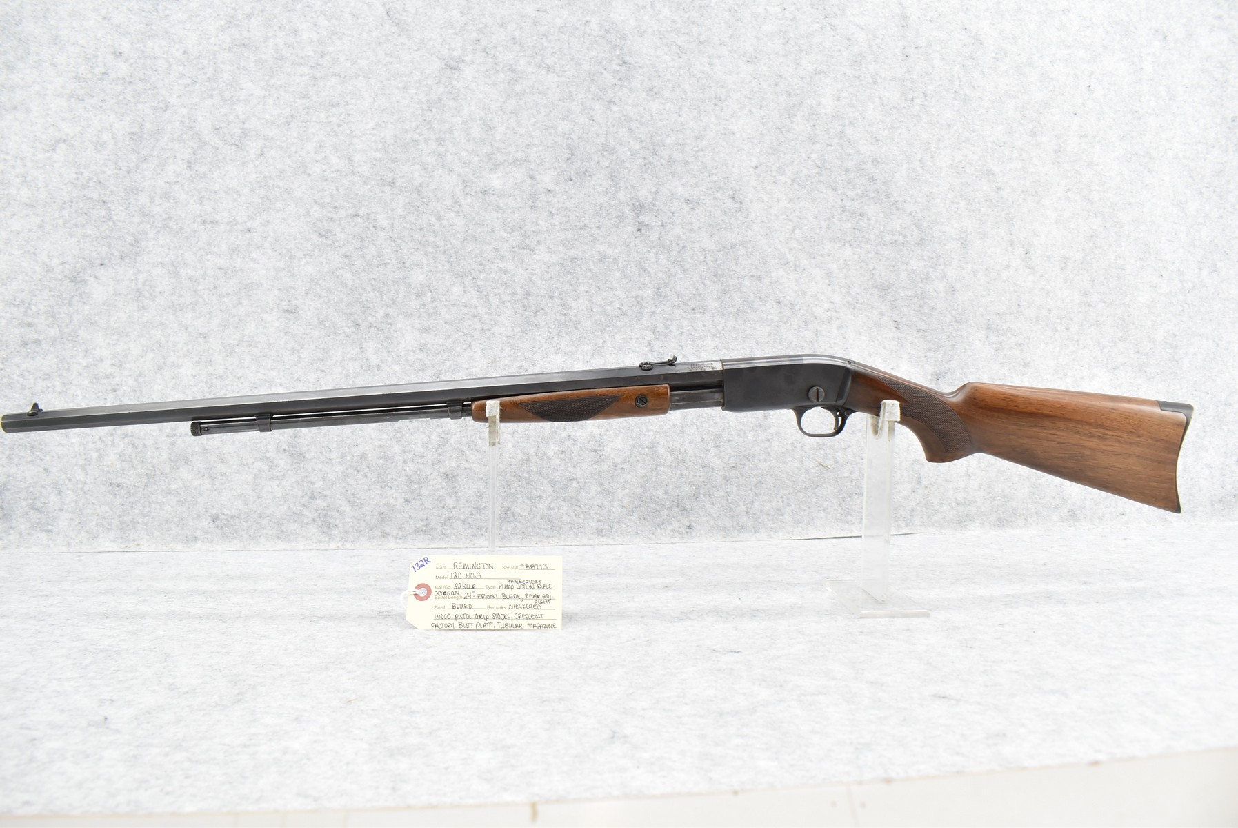 132R. Remington – Mod. 12C No3 – 22 Cal. Hammerless Pump Action Rifle – w/24” Octagon Barrel w/Front Blade & Rear Adj. Sights – Blued Finish – w/Checkered Straight Wood Pistol Grip Stocks w/Crescent Factory Butt Plate – w/Tubular Magazine