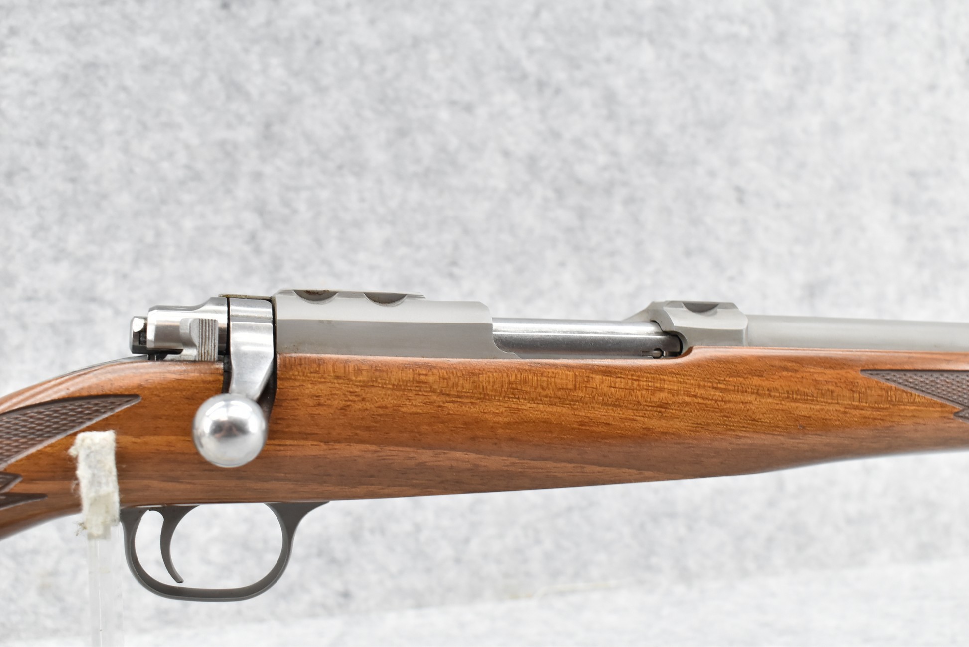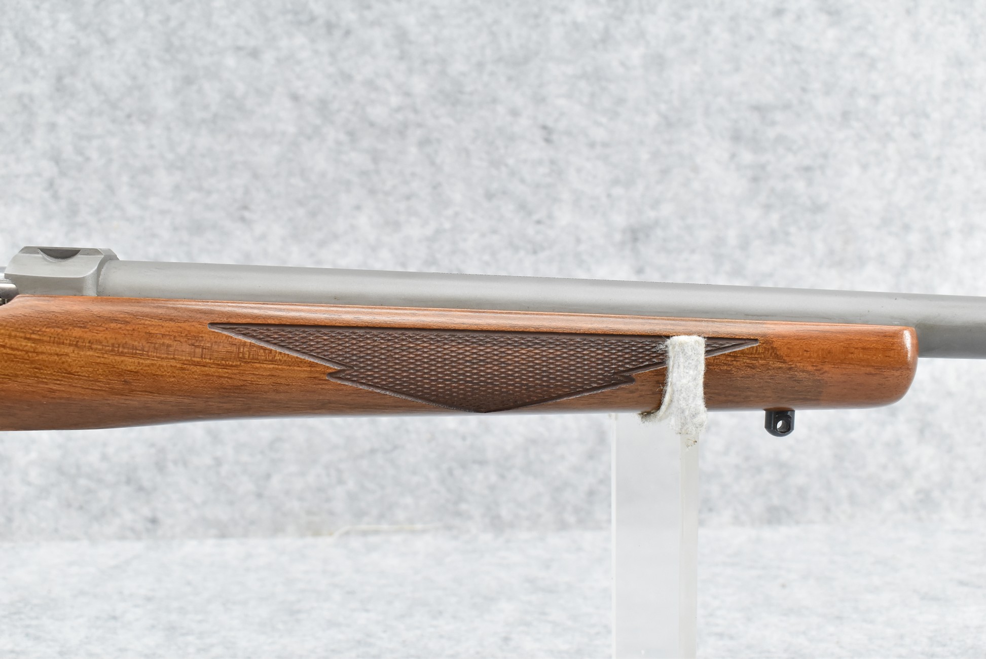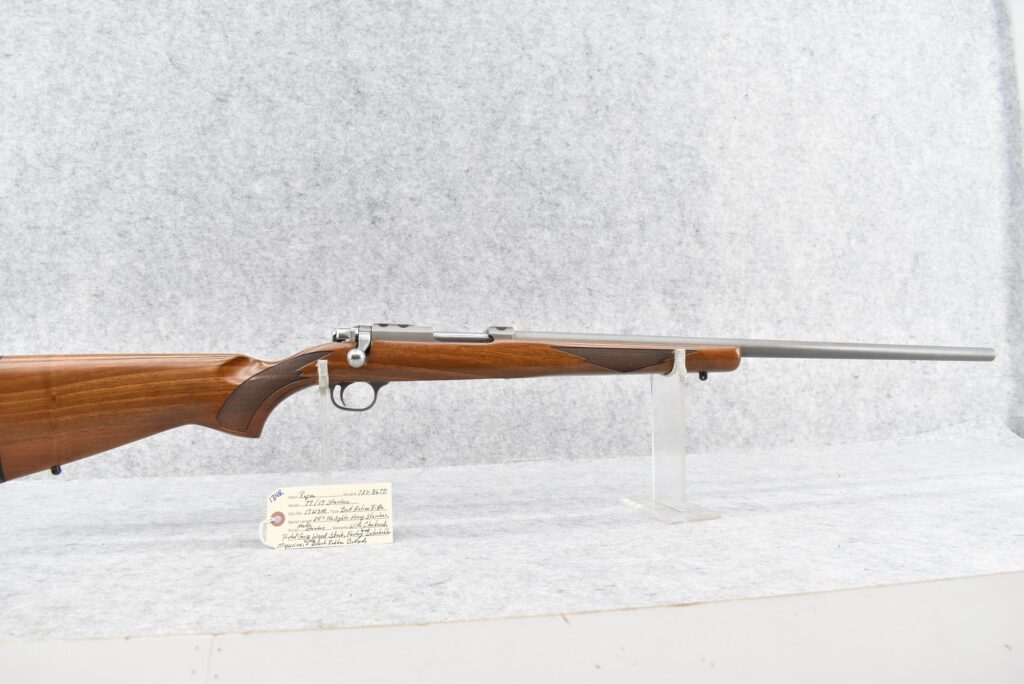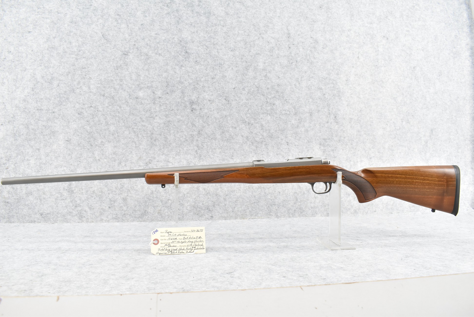 134R. Ruger – Mod. 77/17 – 17 WSM Cal. Bolt Action Rifle – w/24” Heavy Barrel – Matte Stainless Finish – w/Checkered Pistol Grip Wood Stock w/Factory Butt Pad – w/Factory 6Rd Detachable Magazine