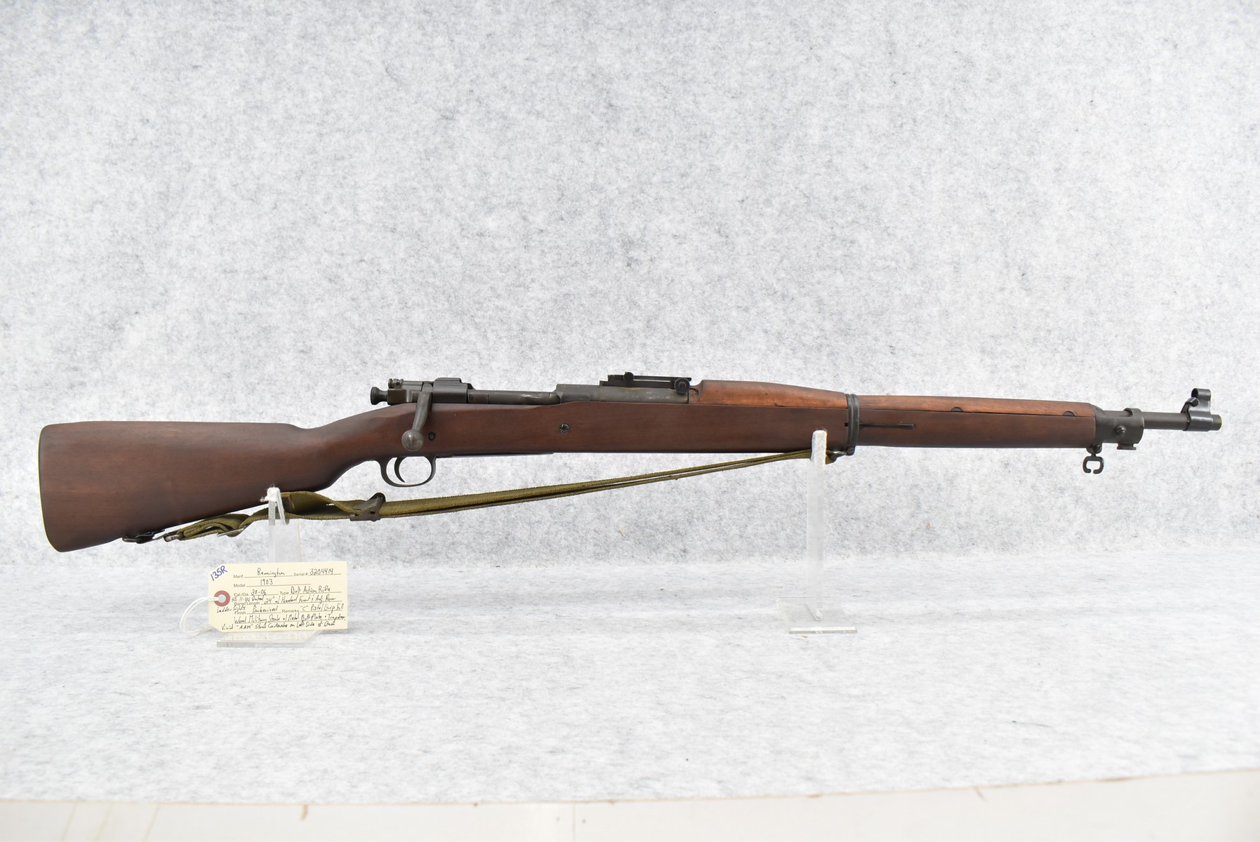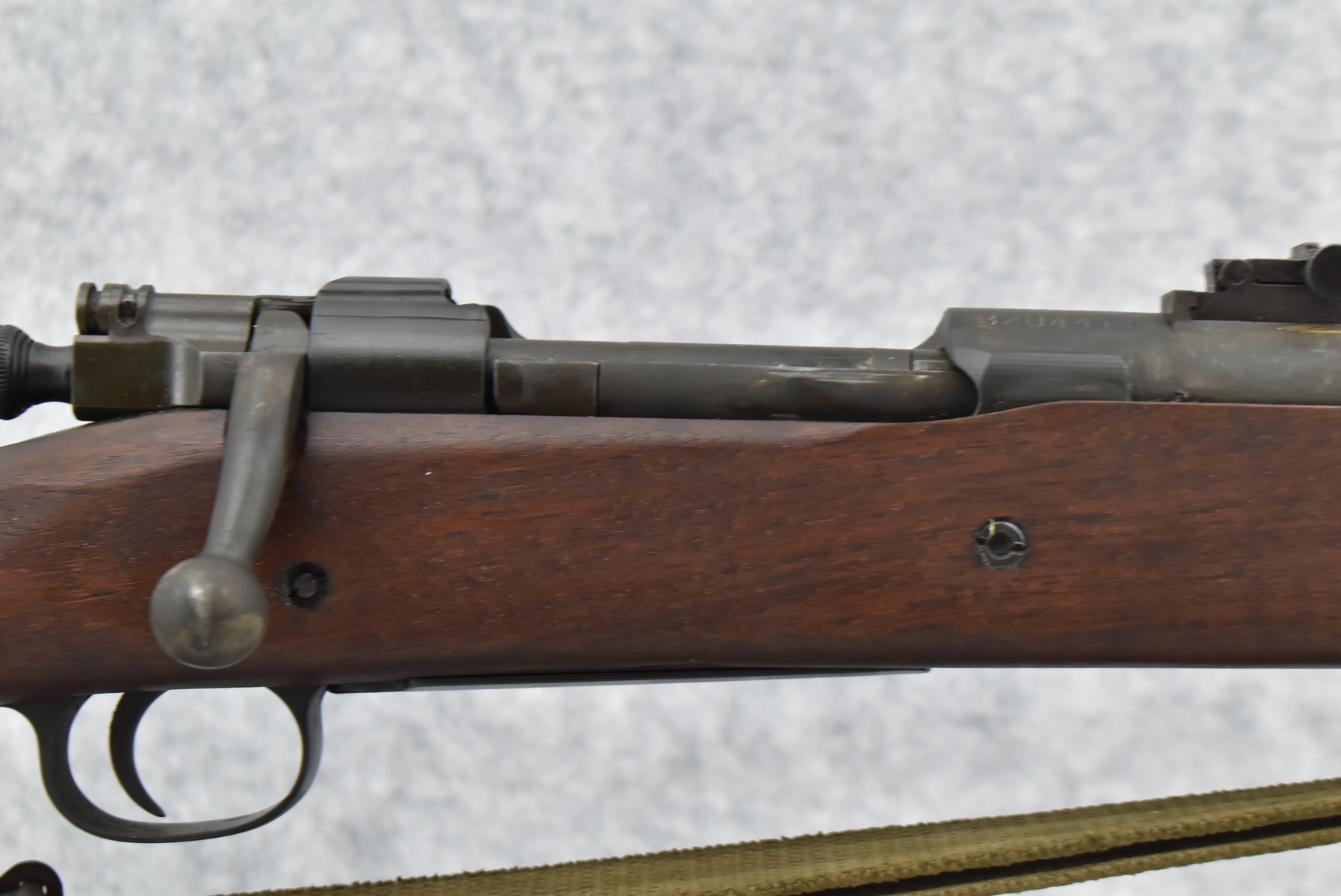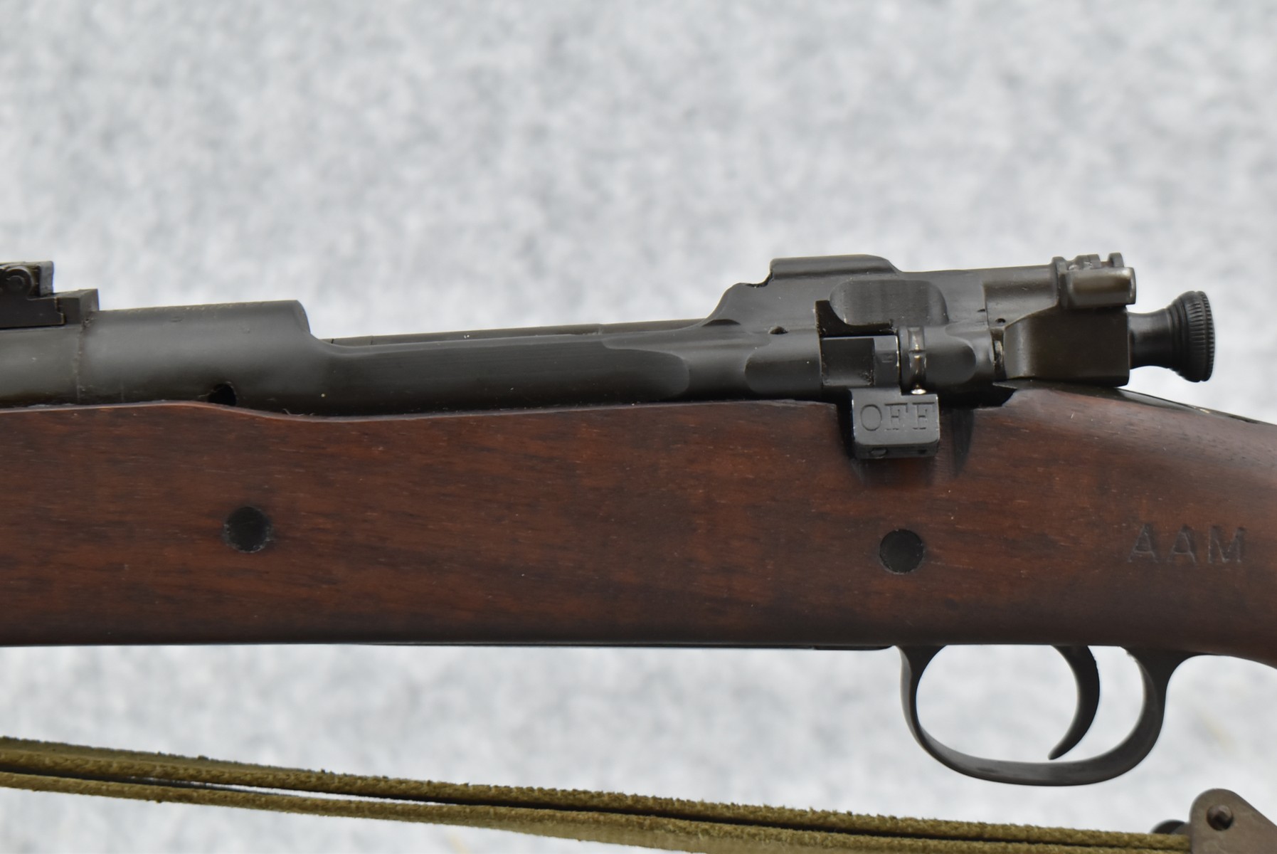 135R. Remington – Mod. 1903 – 30-06 Cal. Bolt Action Rifle – w/24” HS 11-44 Dated Barrel w/Hooded Front & Adj. Rear Ladder Sights – Parkerized Finish – w/“C” Pistol Grip Full Wood Military Stock w/Metal Butt Plate & Trapdoor – w/Vivid “AAM” Stock Cartouche on Left Side of Stock