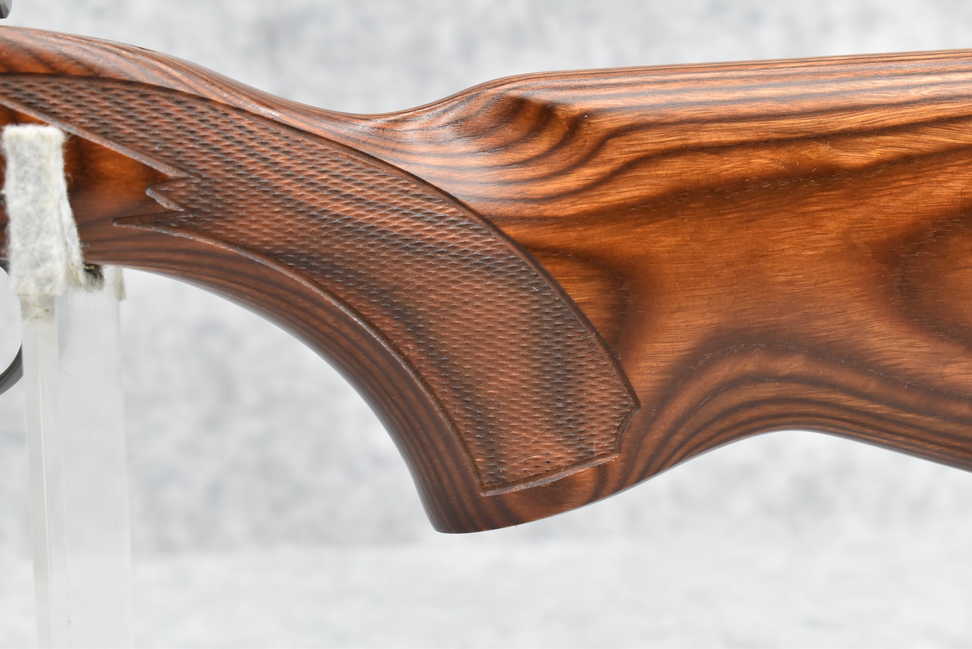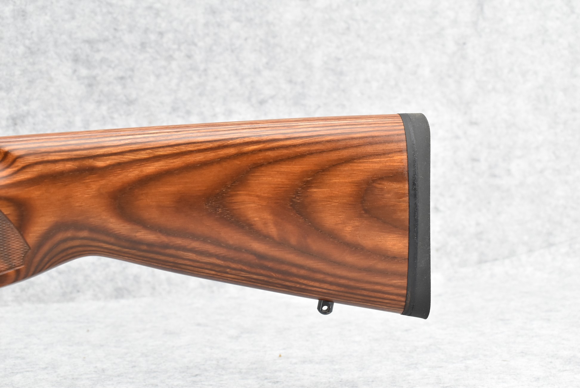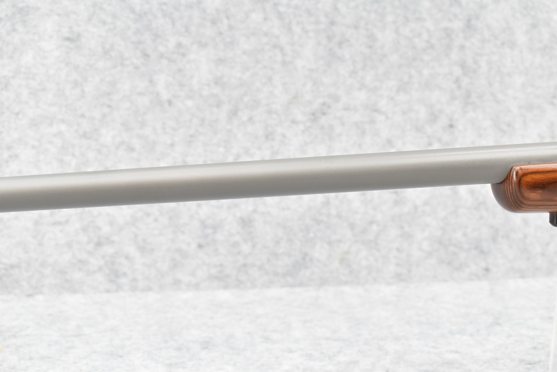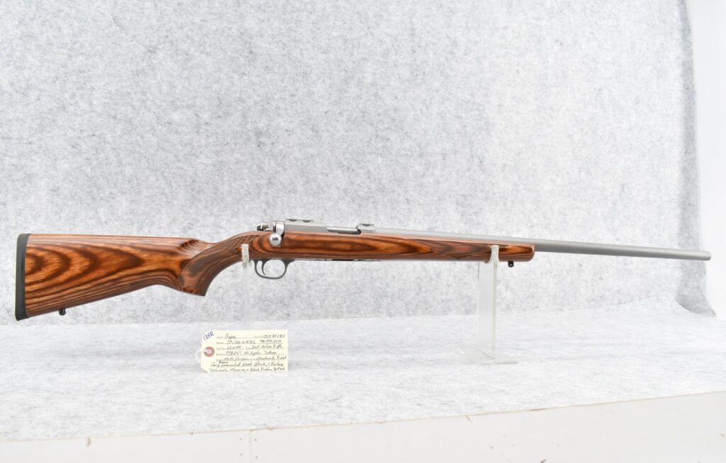135R. Ruger – Mod. 77/22-VMBZ – 22 WMR Cal. Bolt Action Rifle – w/24” Heavy Barrel – Matte Stainless Finish – w/Deluxe Checkered Pistol Grip Brown Laminated Wood Stock w/Factory Butt Pad – w/Factory Detachable Magazine