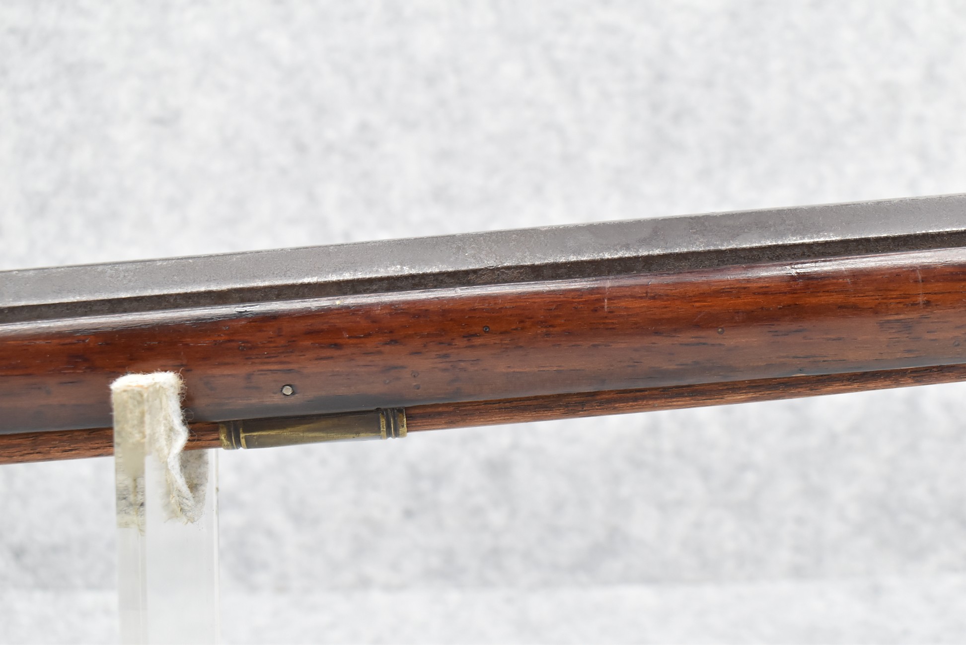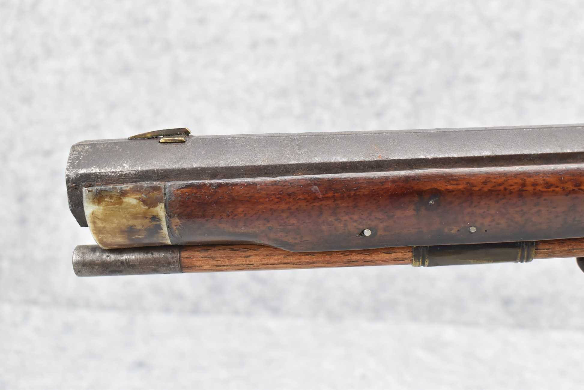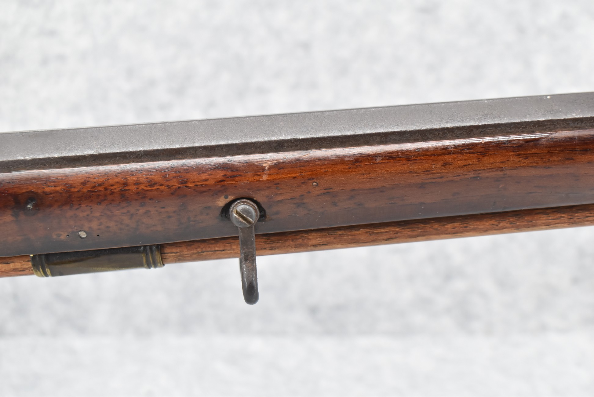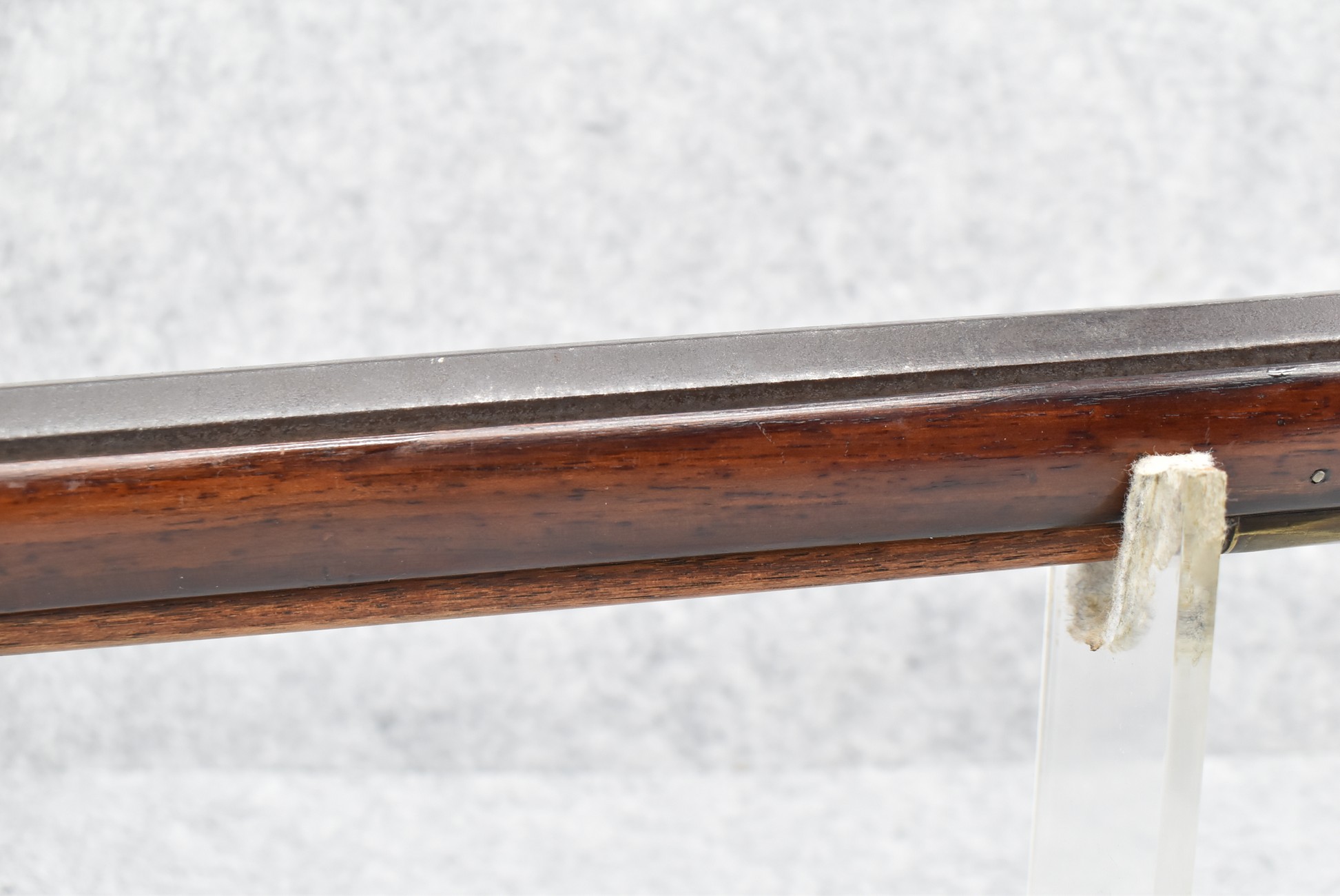 137. Antique 70 Cal. Flintlock Black Powder Rifle – w/34” Heavy Octagon Rifled Barrel w/Brass Front & Flip Rear Barrel Sights – Barrel is Gold Etched Marked “Ignatius Wilfing” – w/Full Stock w/Over Sized Butt Stock w/Cheek Piece w/Unique Slide Wood Door Patch Box w/Brass Furniture – w/Sling Swivels – w/Double Set Triggers – w/Wooden Ram Rod