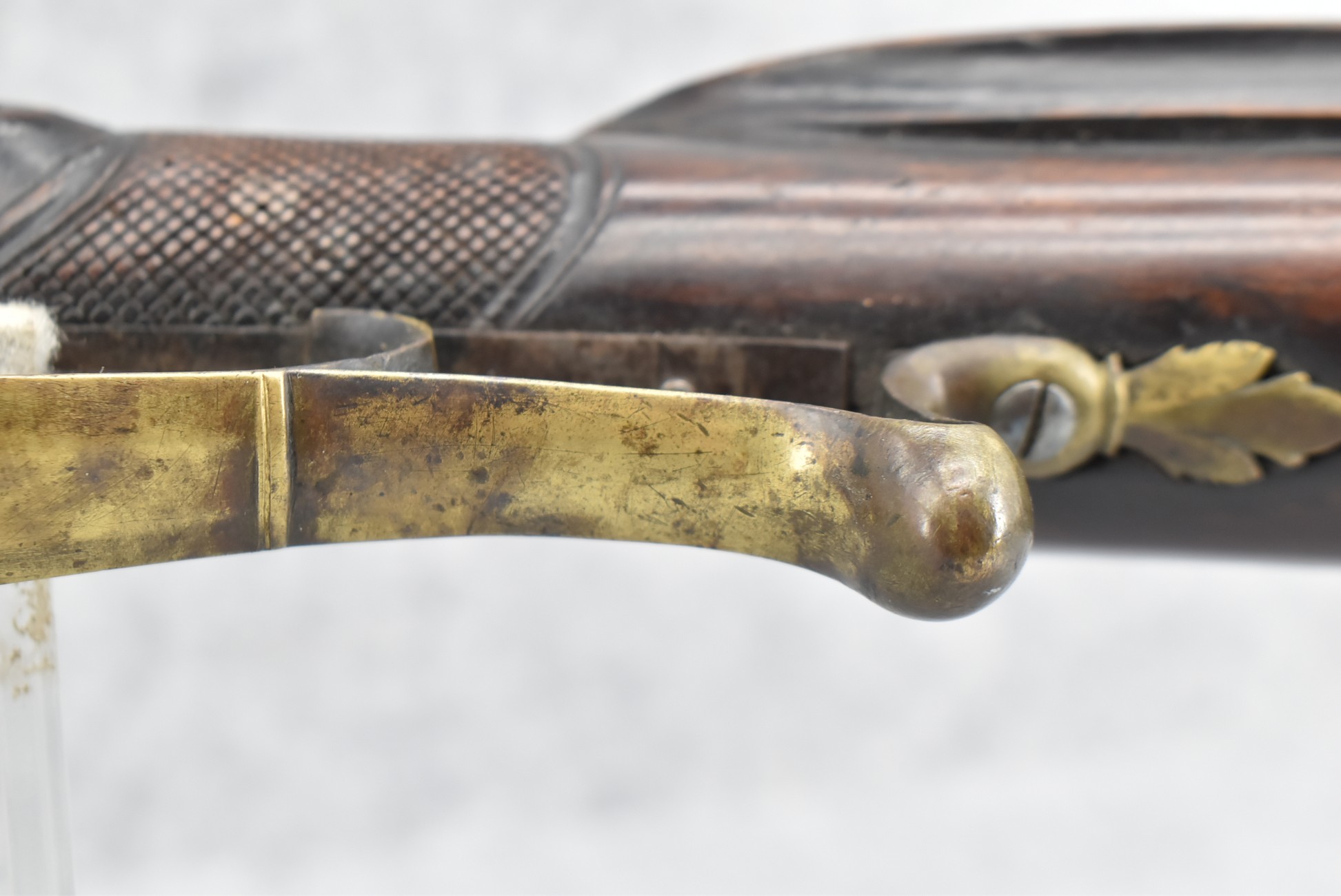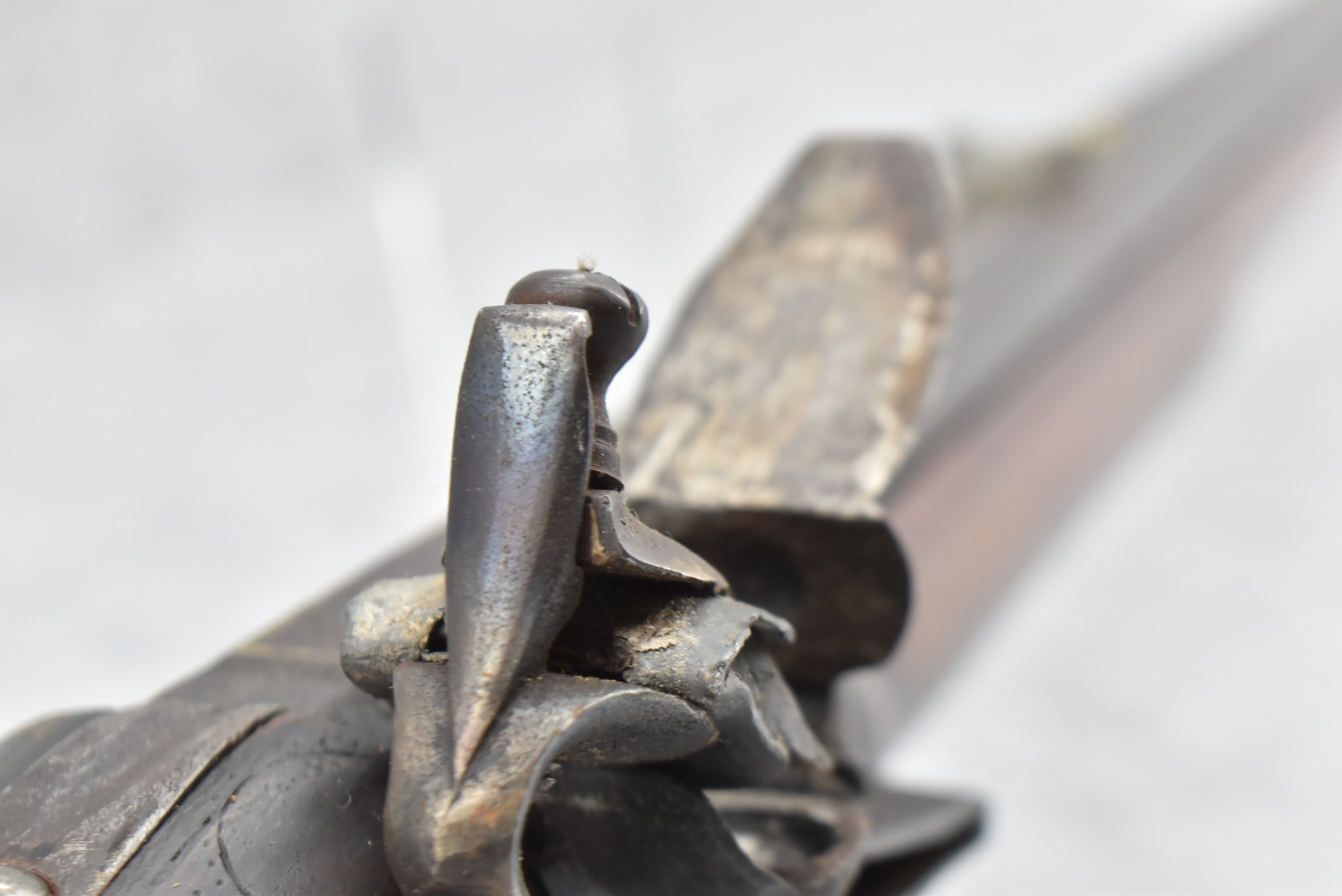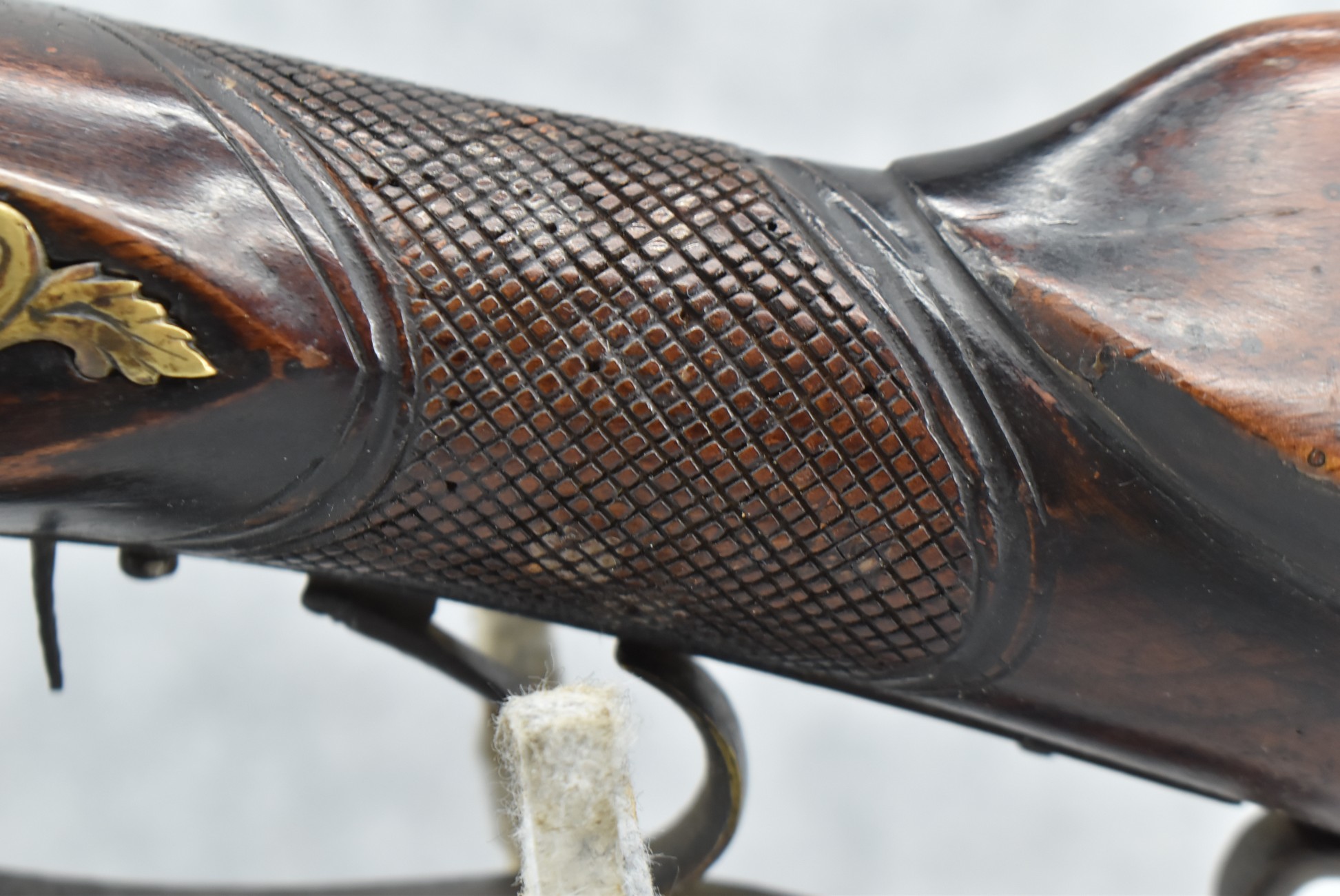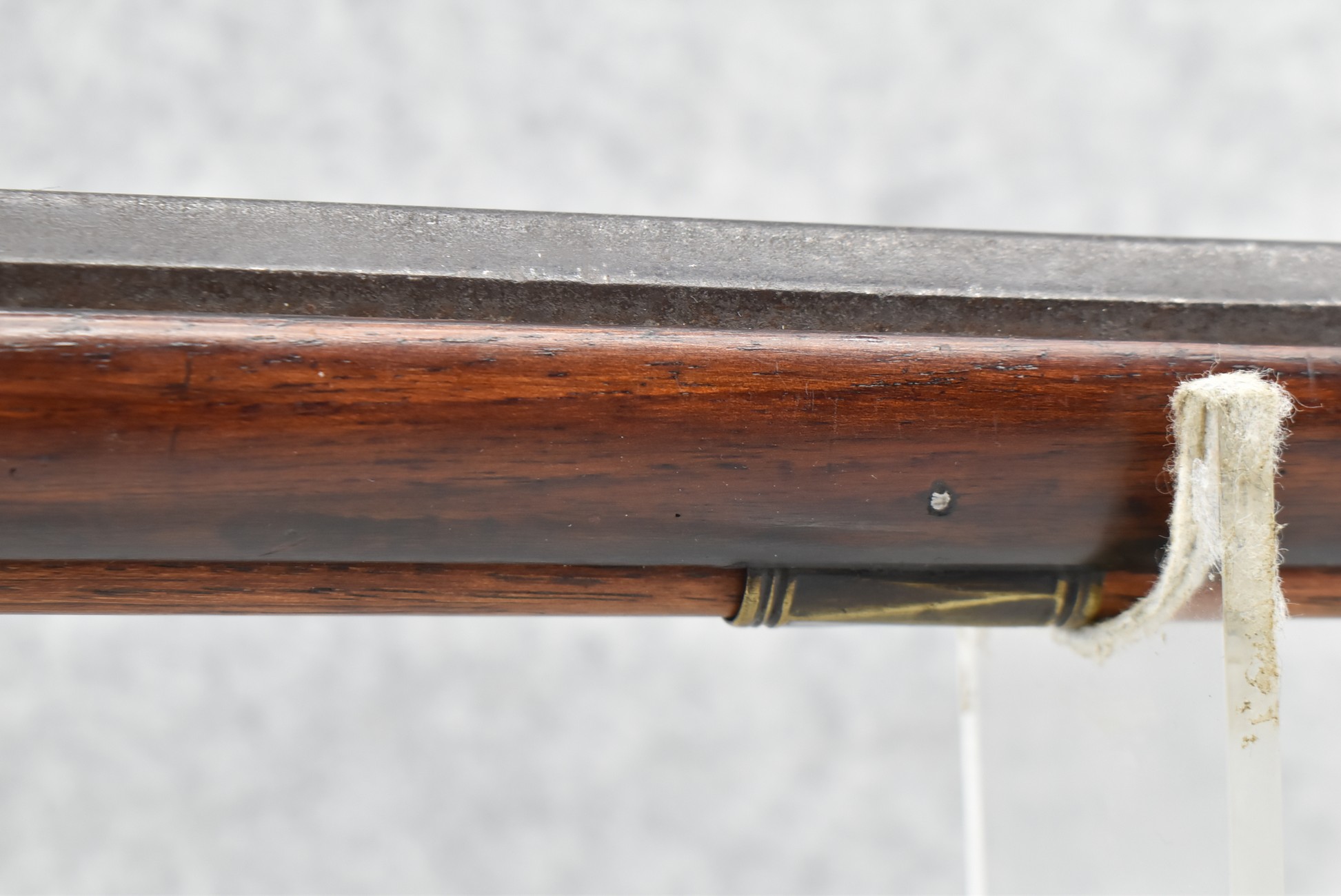 137. Antique 70 Cal. Flintlock Black Powder Rifle – w/34” Heavy Octagon Rifled Barrel w/Brass Front & Flip Rear Barrel Sights – Barrel is Gold Etched Marked “Ignatius Wilfing” – w/Full Stock w/Over Sized Butt Stock w/Cheek Piece w/Unique Slide Wood Door Patch Box w/Brass Furniture – w/Sling Swivels – w/Double Set Triggers – w/Wooden Ram Rod