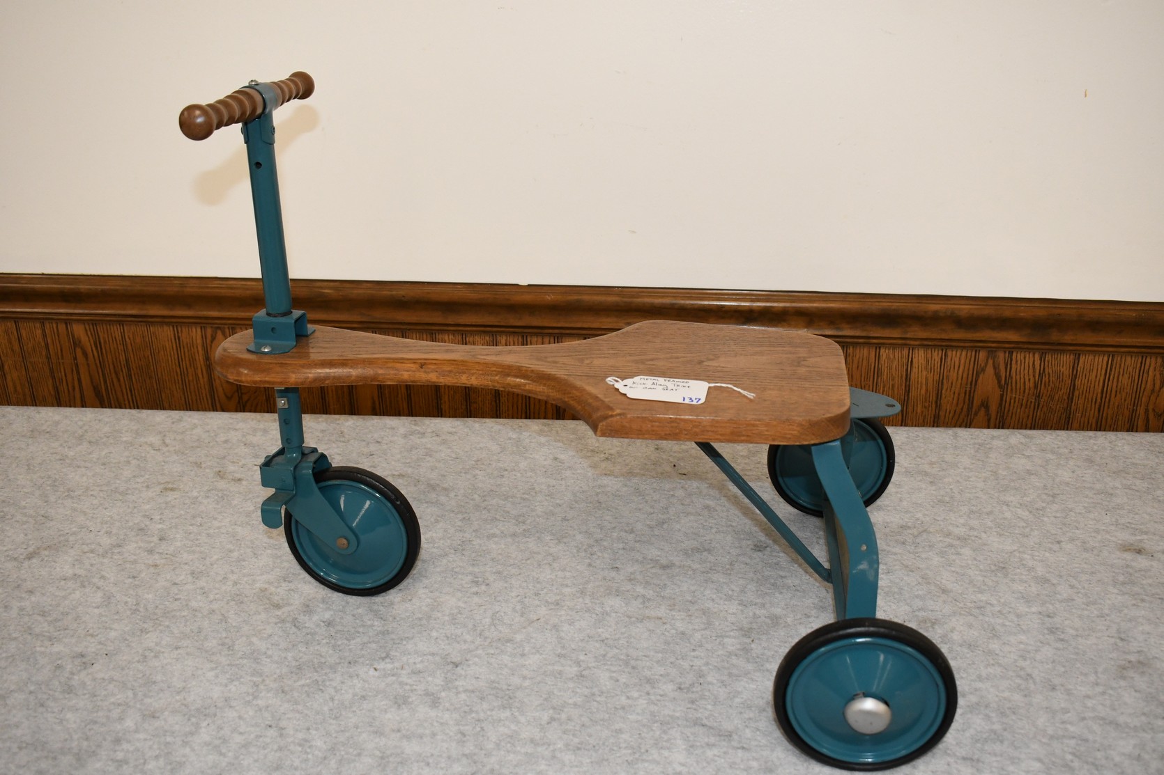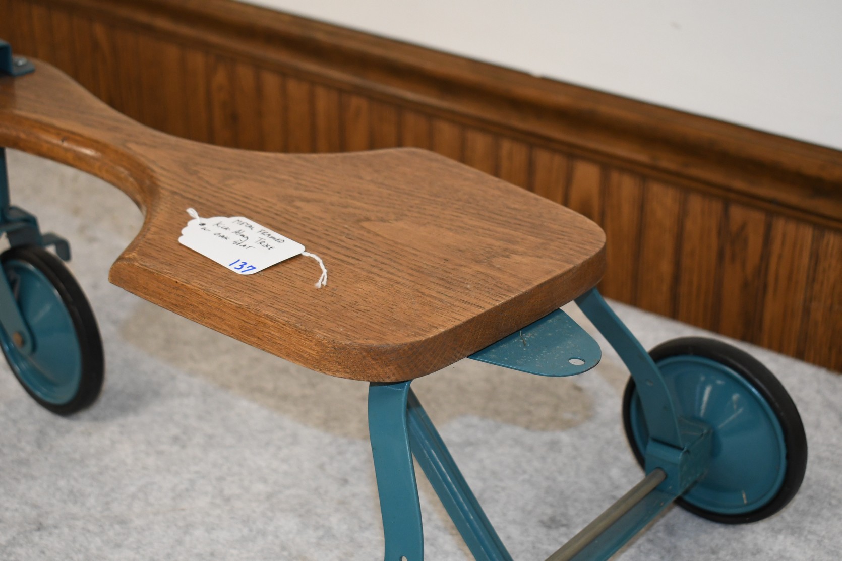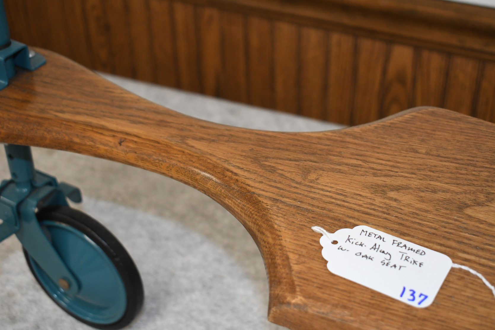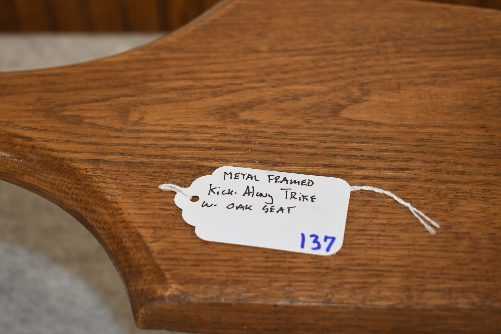 137. Metal Framed Kick-Along Trike w/Oak Seat – Will Not Ship, Pickup Only or You Must Arrange Your Own Shipping!