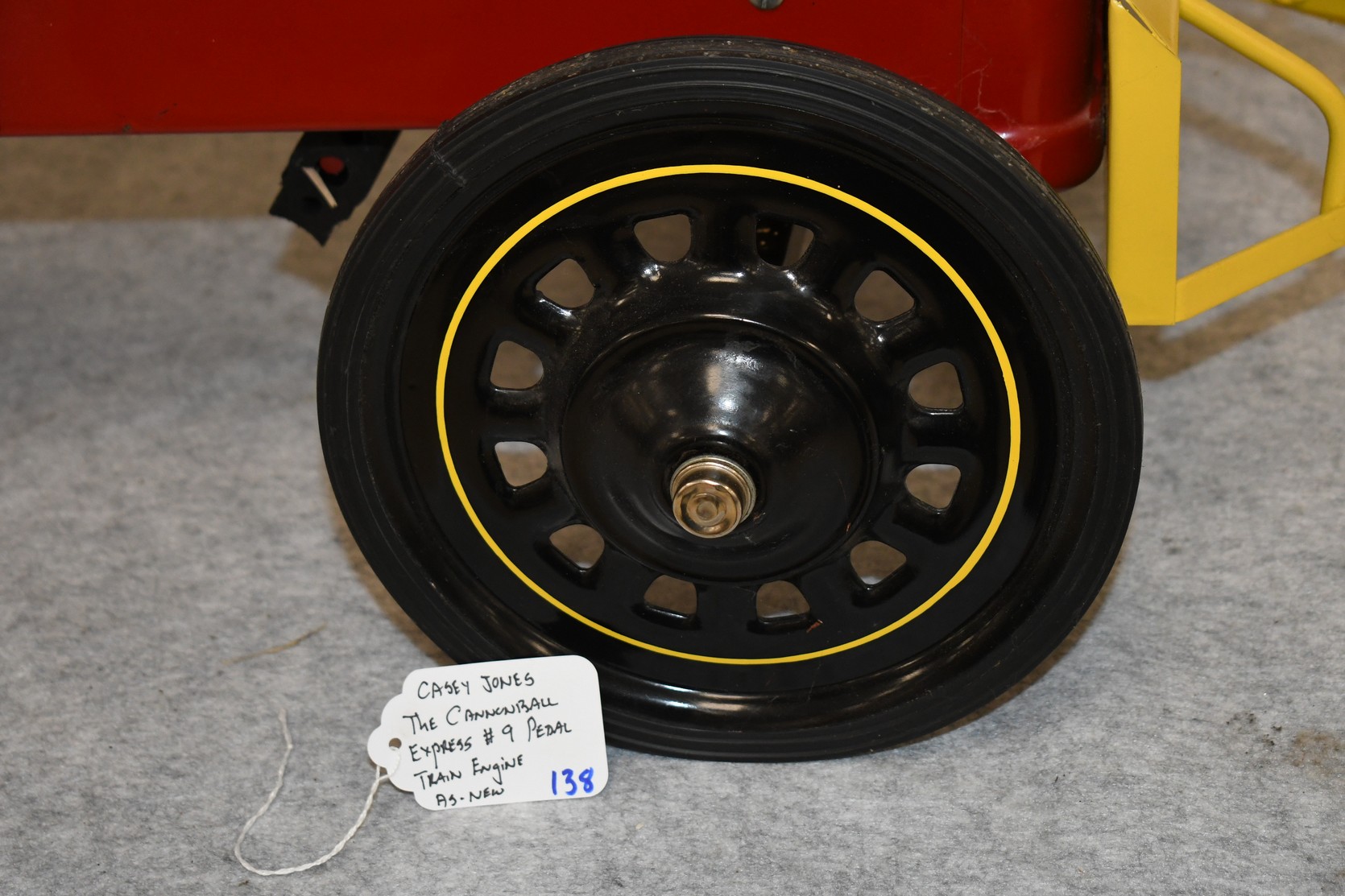 138. Casey Jones – The Cannonball Express No. 9 Train Engine Pedal Car –Black, Red, and Yellow in Color – In As-New Condition