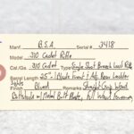 138R. B.S.A. – Mod. .310 Cadet Rifle – .310 Cadet Cal. Single Shot Breech Load Rifle – w/25” Barrel w/Blade Front & Adj. Rear Ladder Sights – Blued Finish – w/Straight Grip Wood Butt Stock w/Metal Butt Plate & Full Wood Forearm