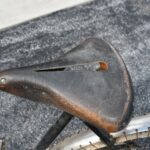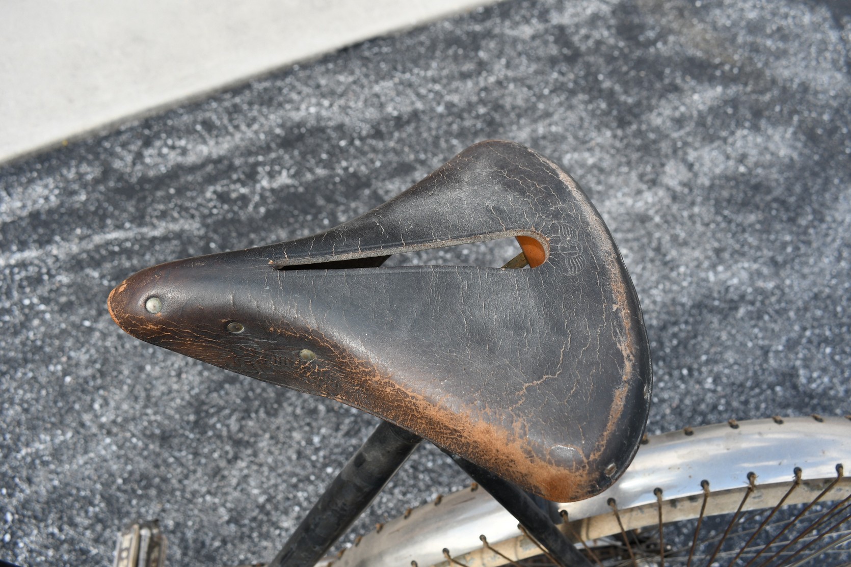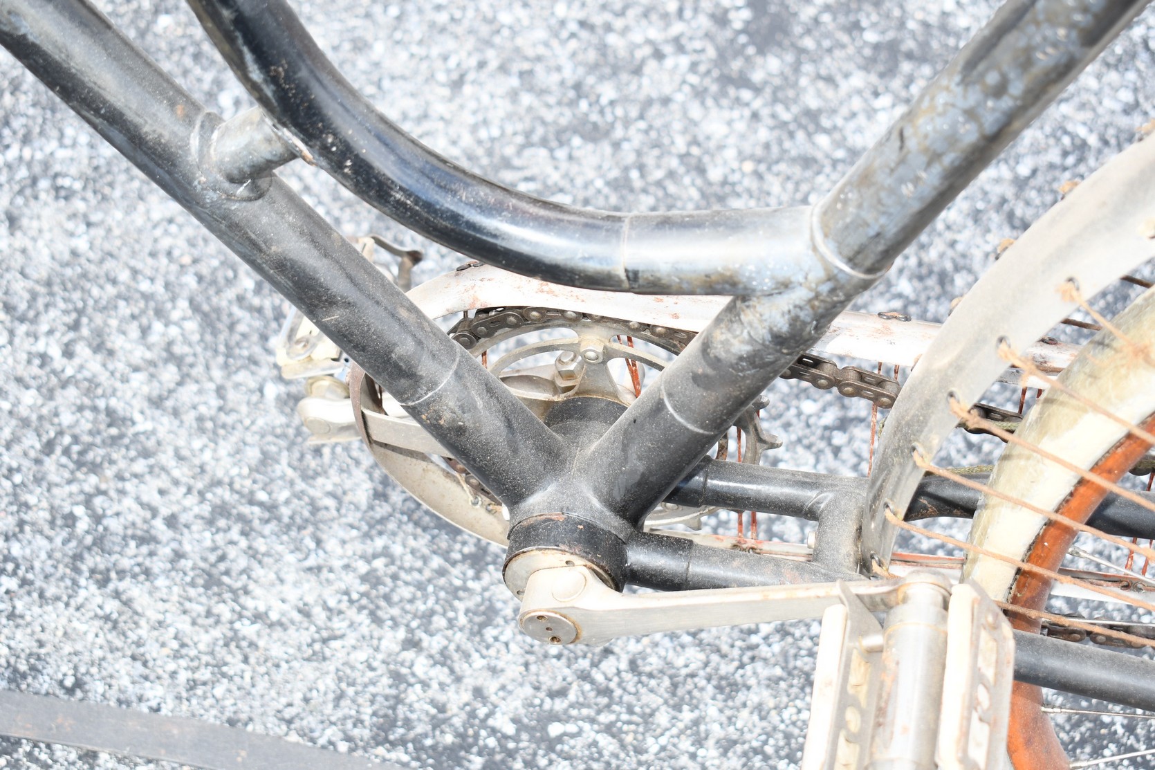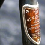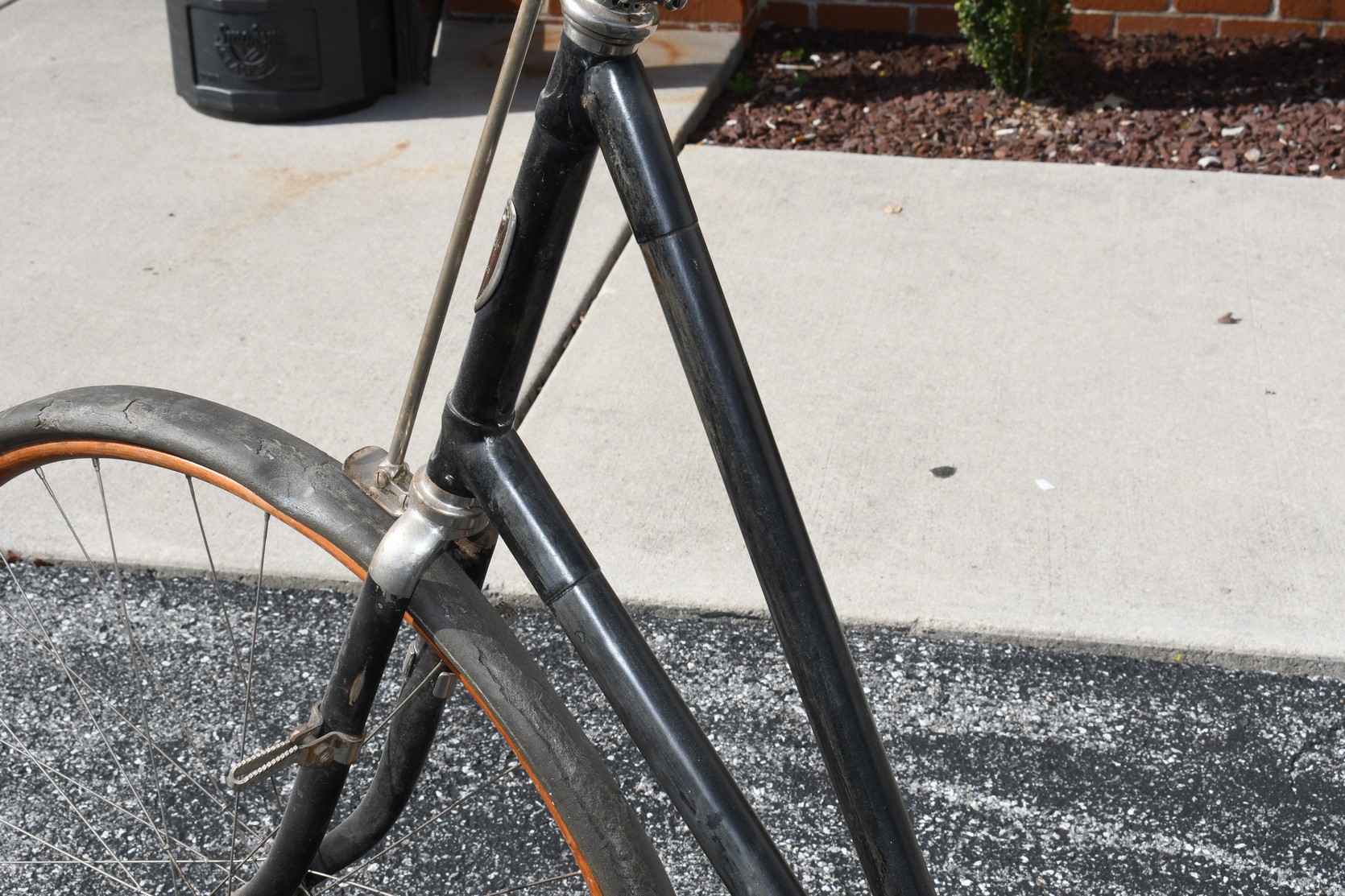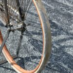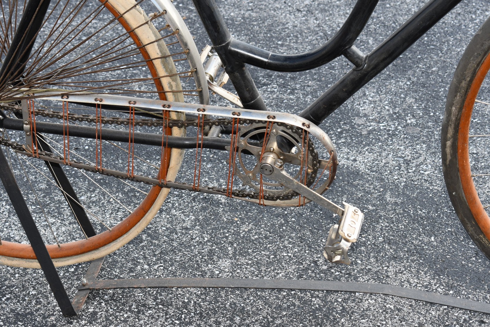 140. Exceptionally Rare Remington Ladies Bicycle – Serial No. 41627 – Manufactured by the Remington Arms Co. Llion NY – The Bicycle is Complete on a Metal Display Stand – w/Leather Seat and Wood Rimmed Tires – Label is Exceptional – Will Not Ship, Pickup Only or You Must Arrange Your Own Shipping!